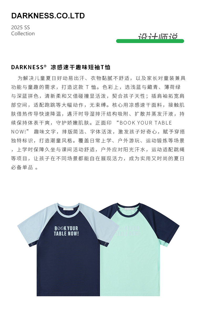 DK 아동복 25 여름 야외 소녀 및 소년 시원하고 속건성 스포츠 반팔 티셔츠 아동 캐주얼상의