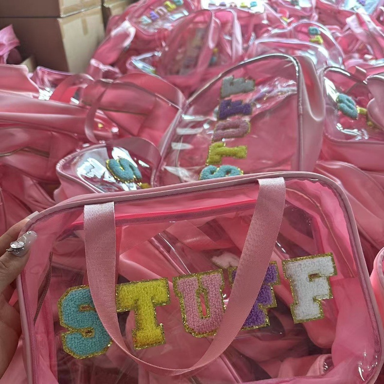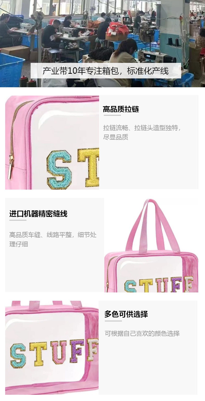 국경을 넘는 새로운 대용량 투명 화장품 수건 자수 편지 휴대용 화장품 가방 다기능 세면 용품 여행