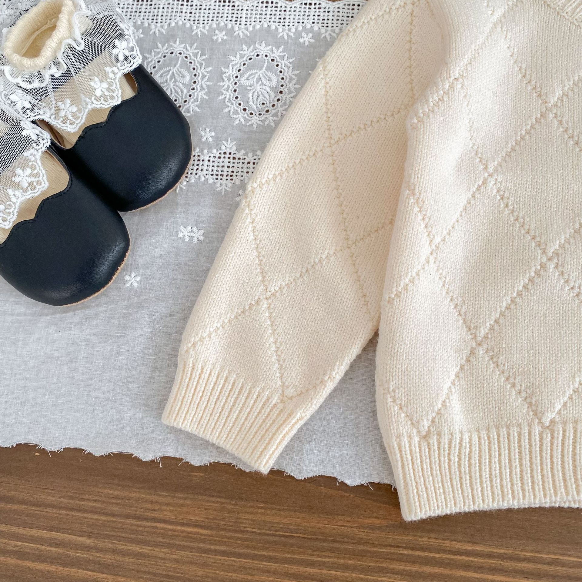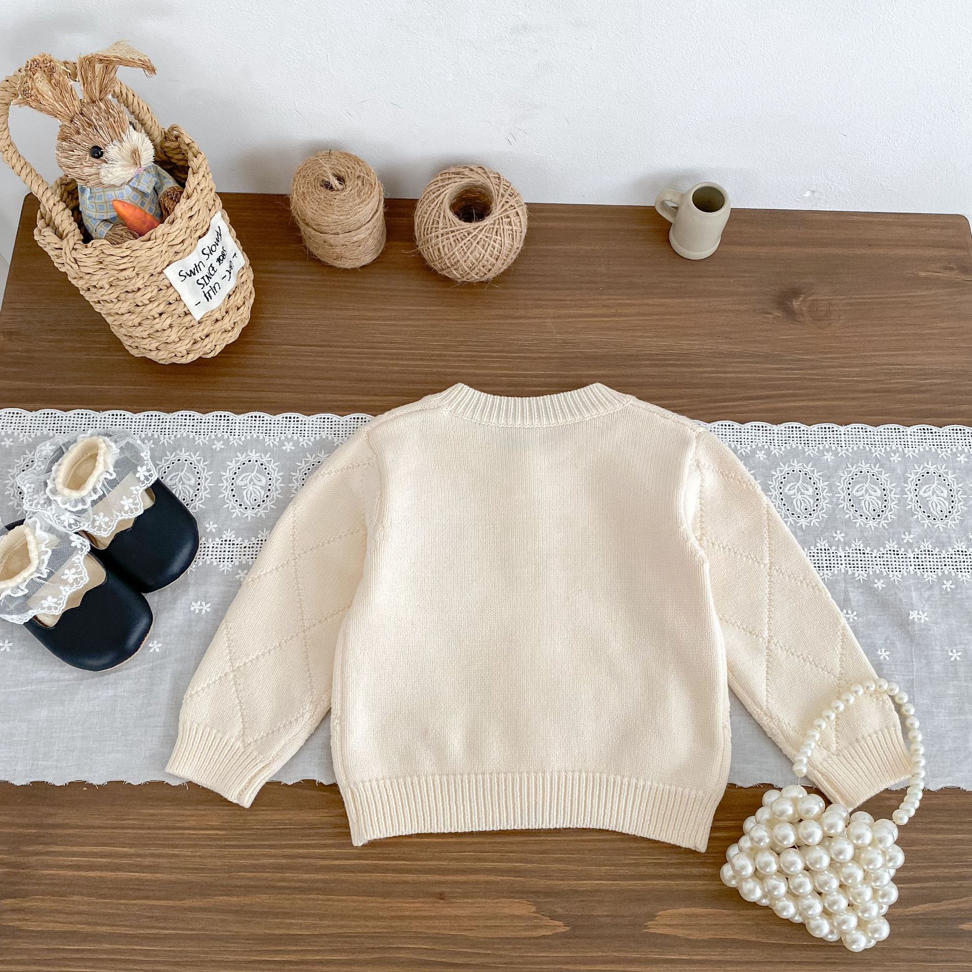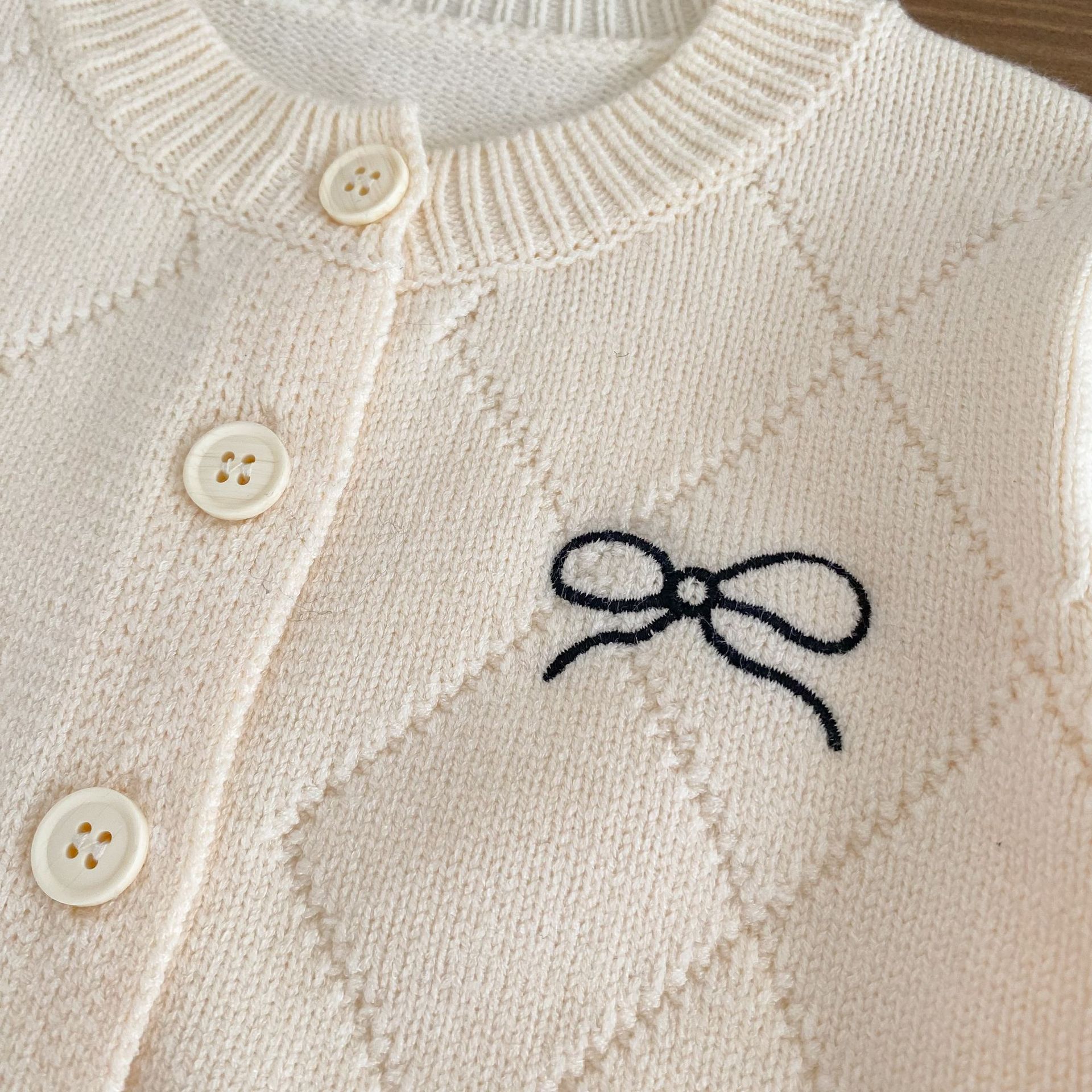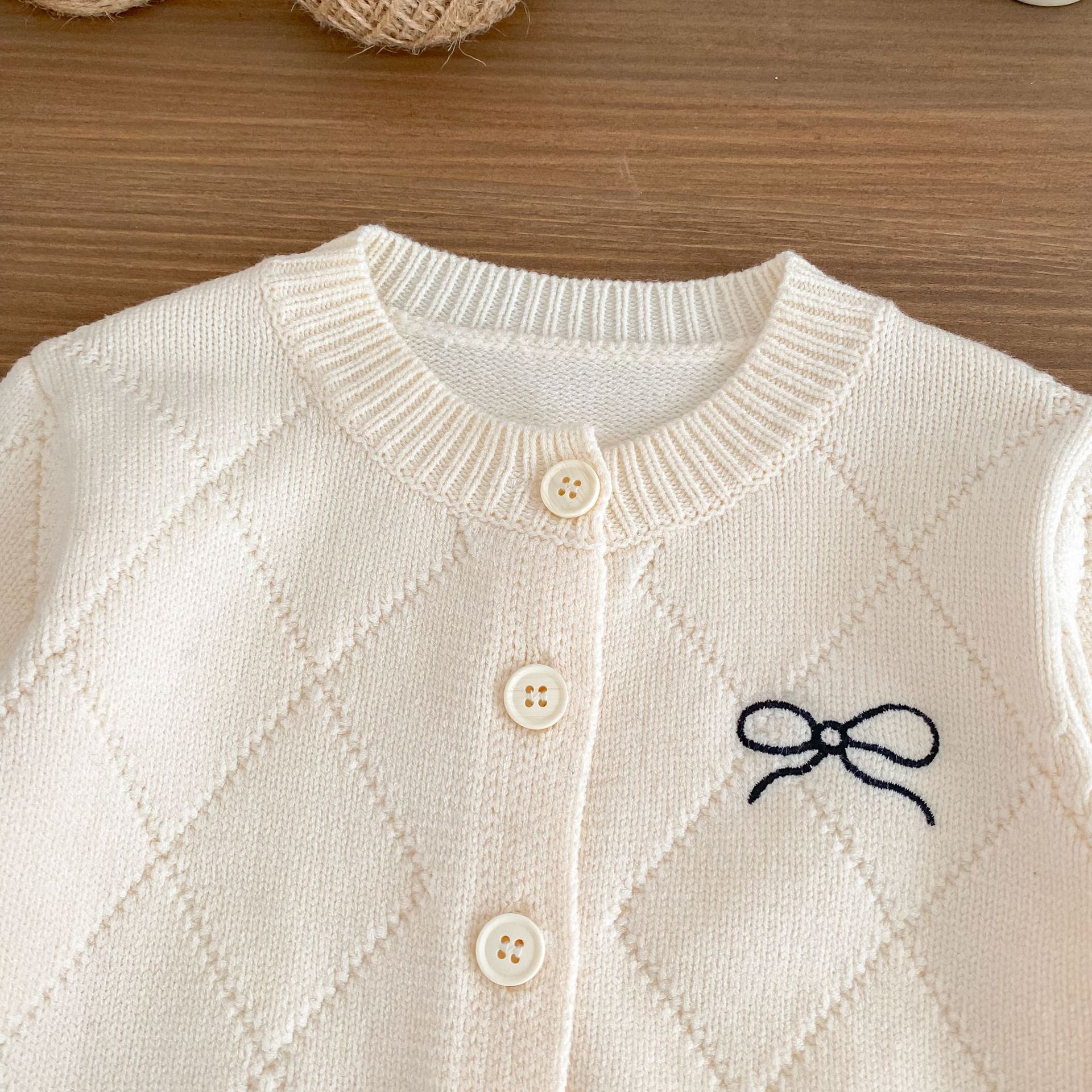 2026 봄 신상 아기 니트 코트, 여아용 세련된 리본 스웨터 가디건과 플레어 팬츠 투피스 세트스토어 가기