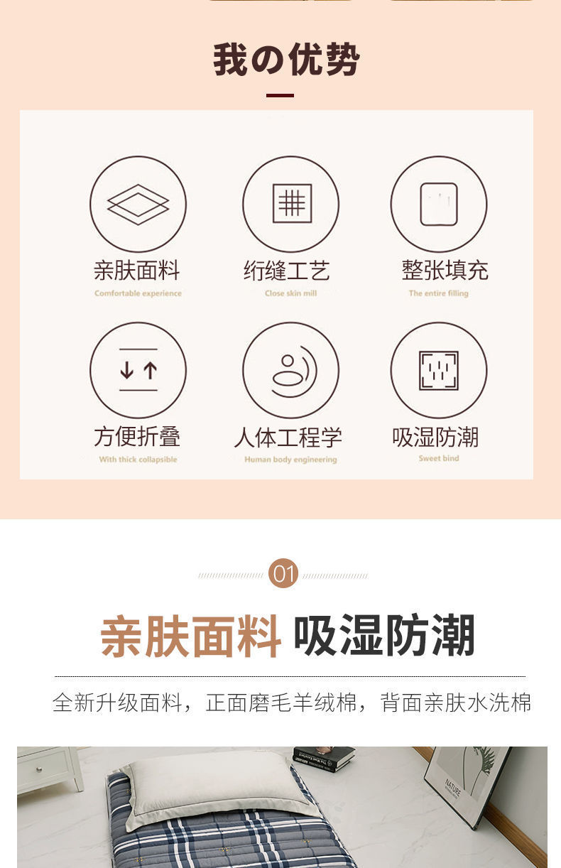 두꺼운 학생 기숙사 매트리스, 1인용 방습 접이식 다다미 매트리스, 이층 침대, 더블 기숙사 필수품스토어 가기