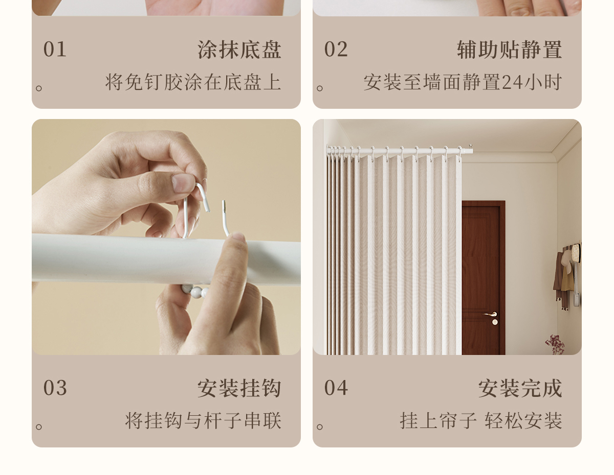 • 오통 살구 커튼 + 텔레스코픽 막대 + 볼 후크