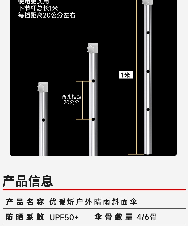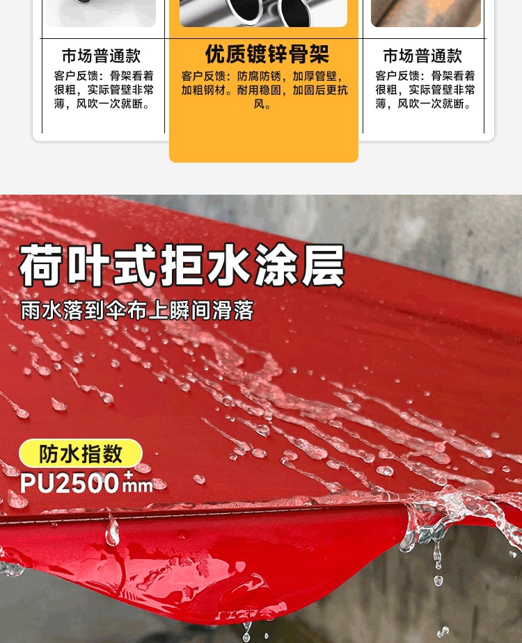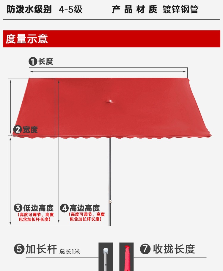 • [레드] 경사우산 2.5X 2m 두꺼운 6갈비 + 베이스