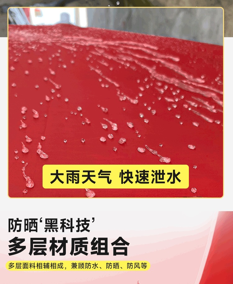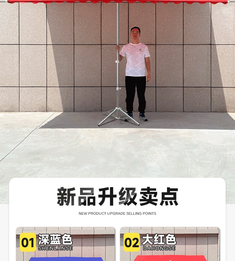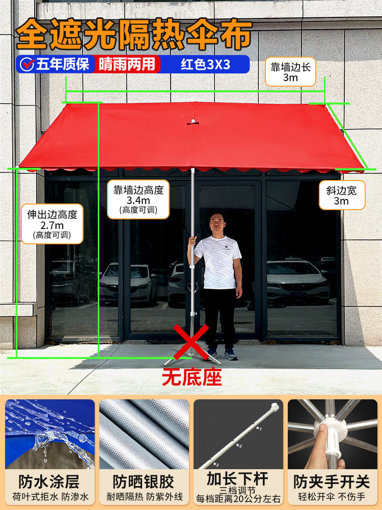 • [레드] 경사우산 3.4X 3m 두꺼운 6갈비 + 베이스