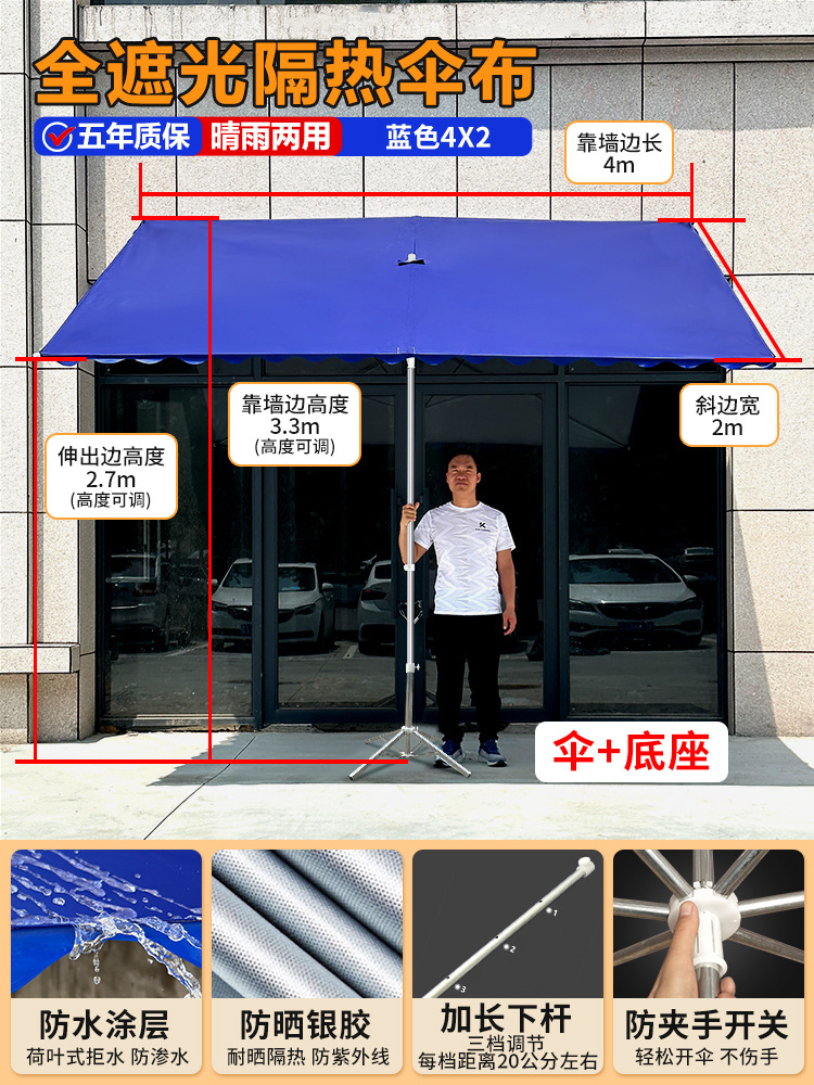 태양 우산 대형 야외 스톨 경사 우산 외관 파라솔 상점 상업용 대형 우산 강화 및 두꺼운 태양 보호