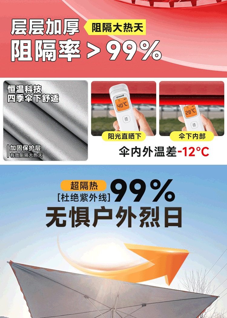 • [레드] 경사우산 4X 2m 두꺼운 6갈비 + 베이스