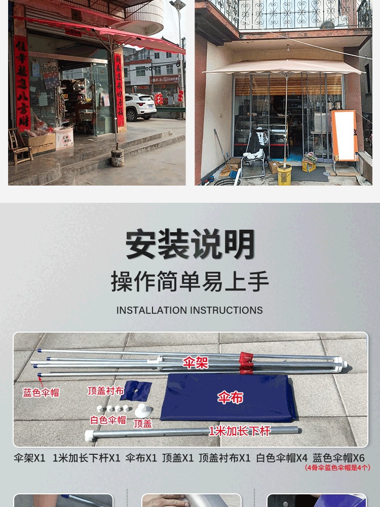 • [블루] 경사우산 3.4X 3m 두꺼운 6갈비 + 베이스