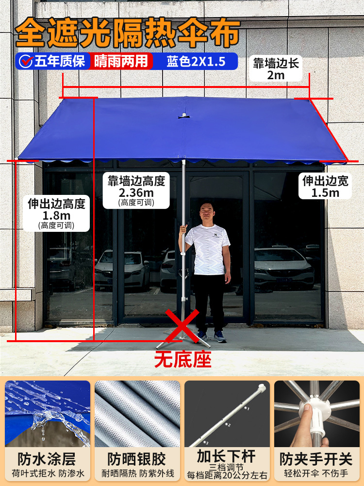 • [블루] 경사우산 2X 1.5m 두꺼운 4갈비 + 베이스