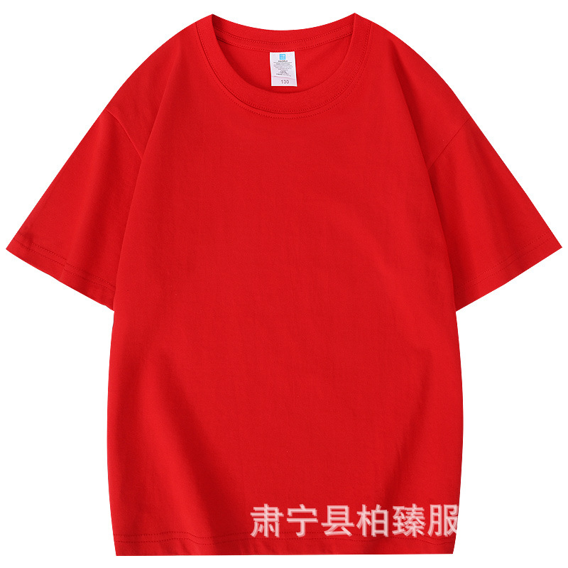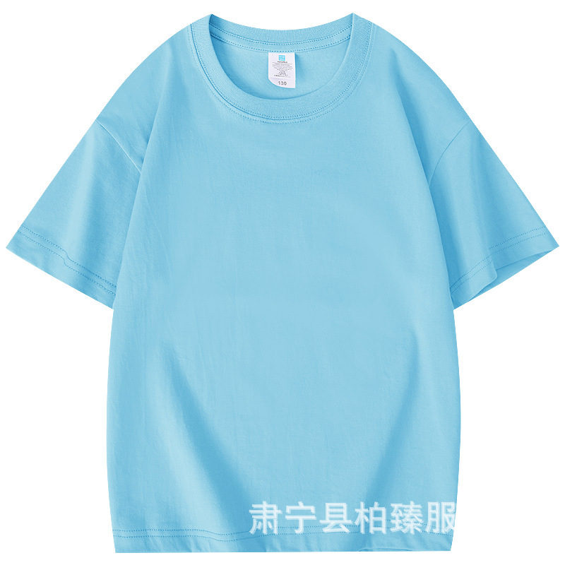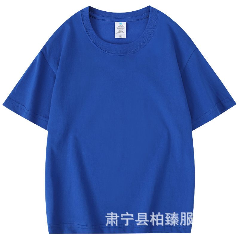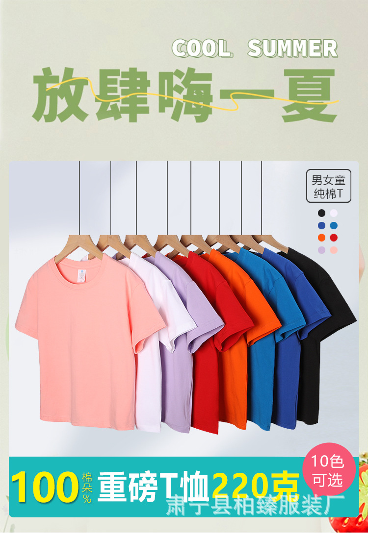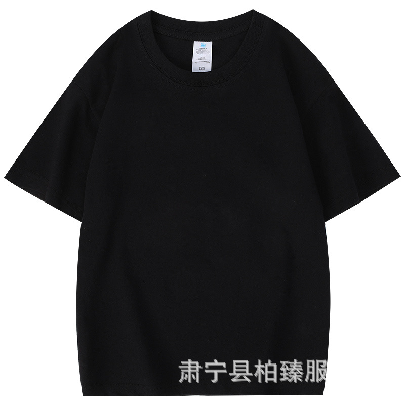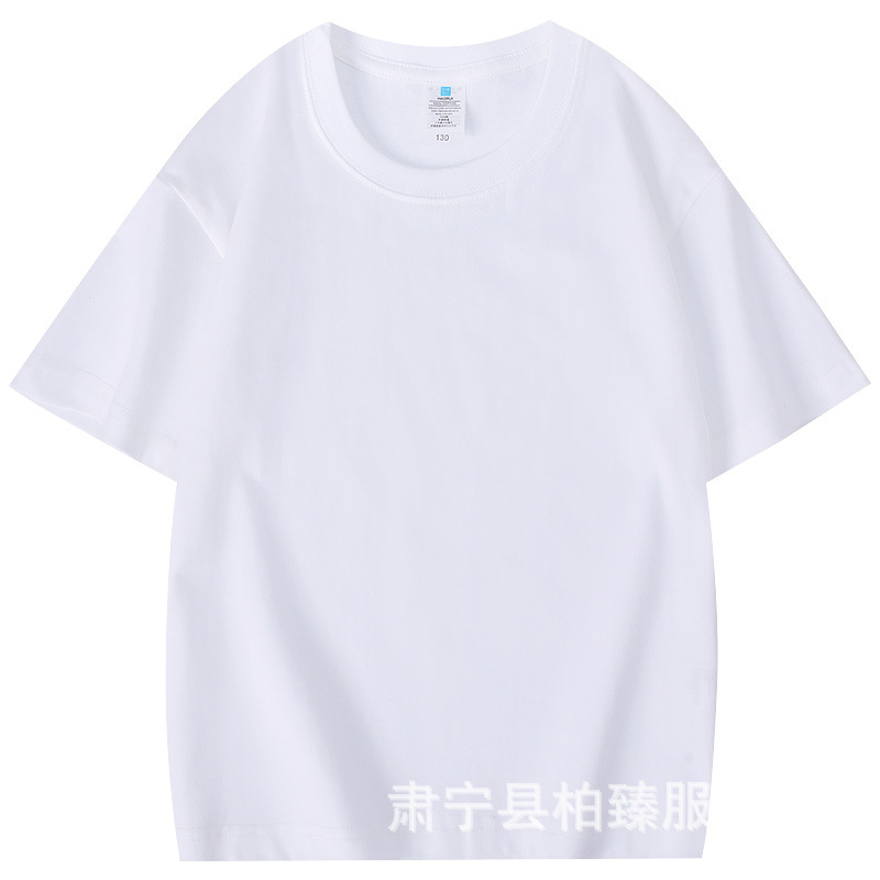 순면 티셔츠 아동용 반팔 220g 콤비네이션 코튼 로고 클래스 유니폼 부모-자식 그룹 유니폼 티셔츠 청소년 반팔 순면스토어 가기