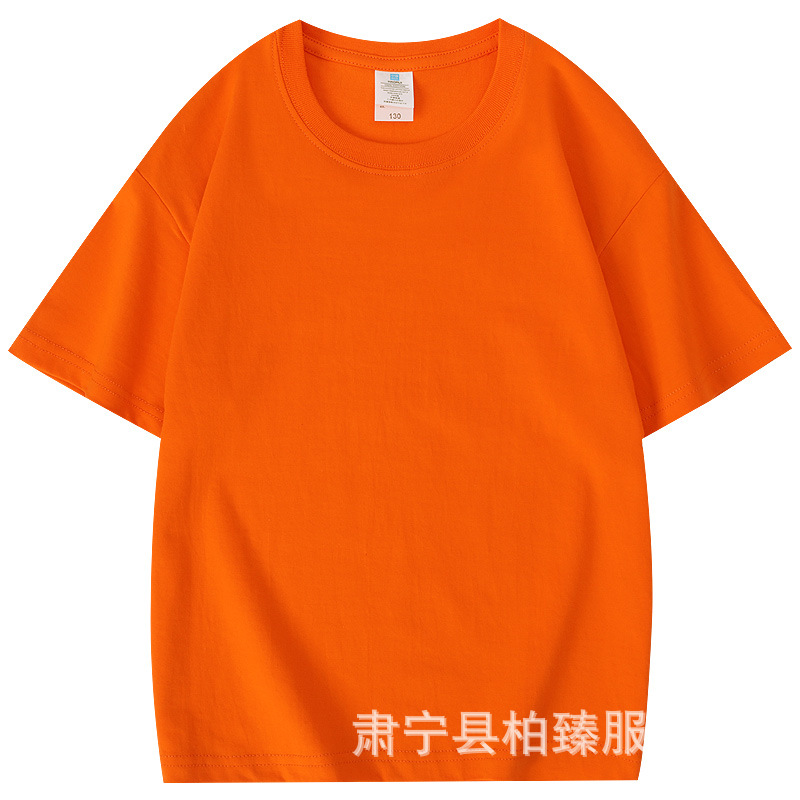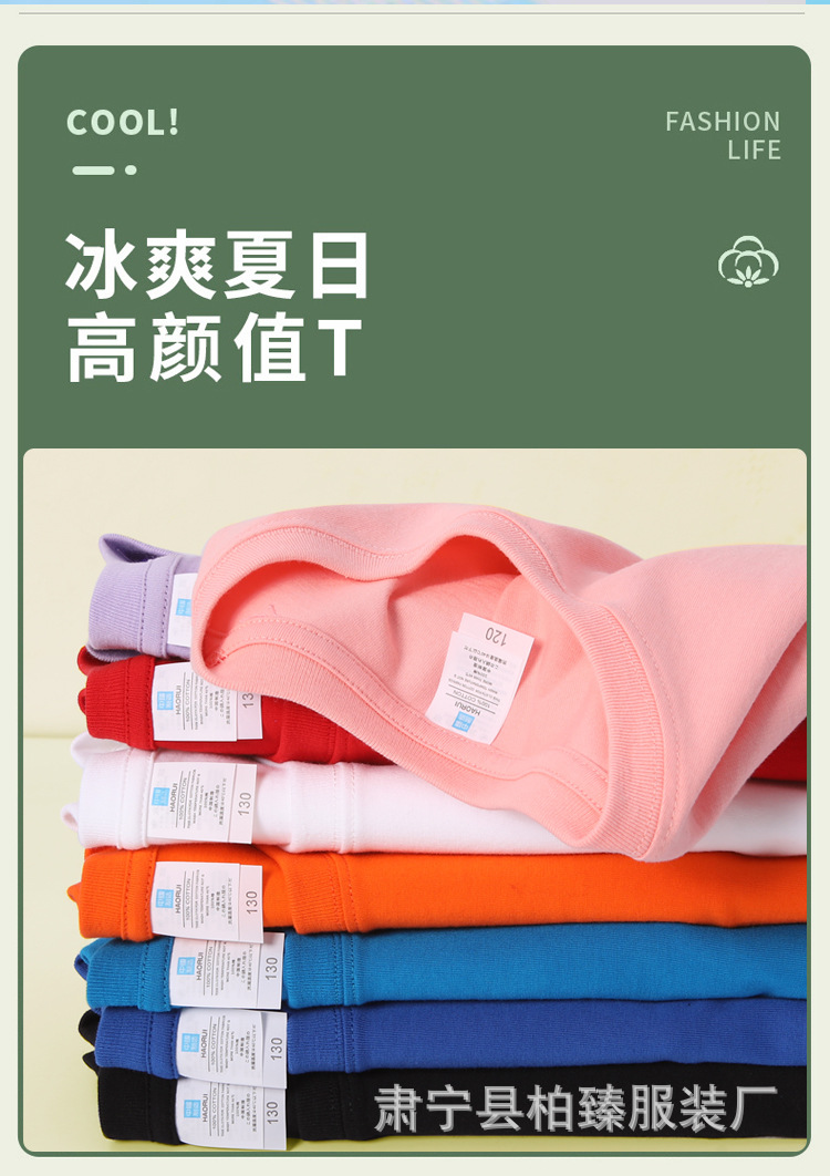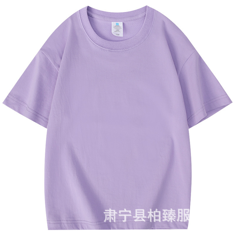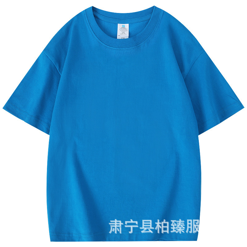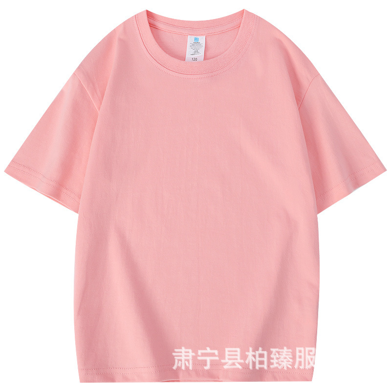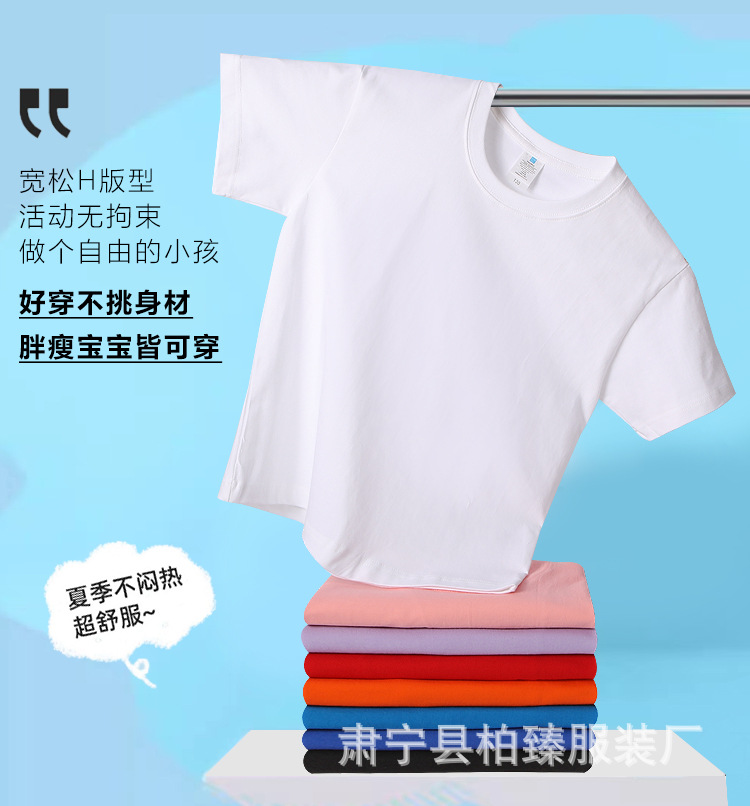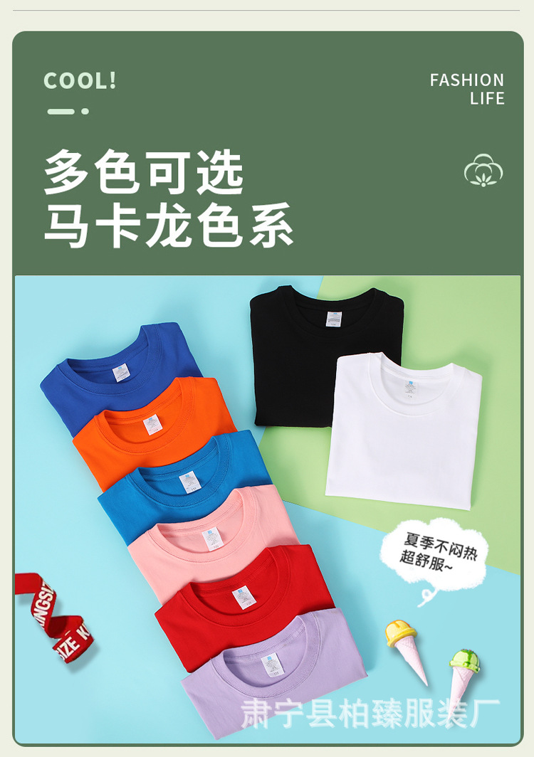 순면 티셔츠 아동용 반팔 220g 콤비네이션 코튼 로고 클래스 유니폼 부모-자식 그룹 유니폼 티셔츠 청소년 반팔 순면스토어 가기