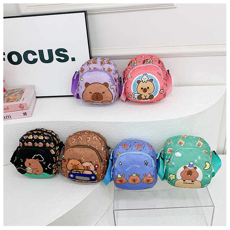 Kapibala 어린이 가방 어깨 가방 귀여운 소녀 크로스 바디 가방 야외 스타일 만화 소년 동전 가방