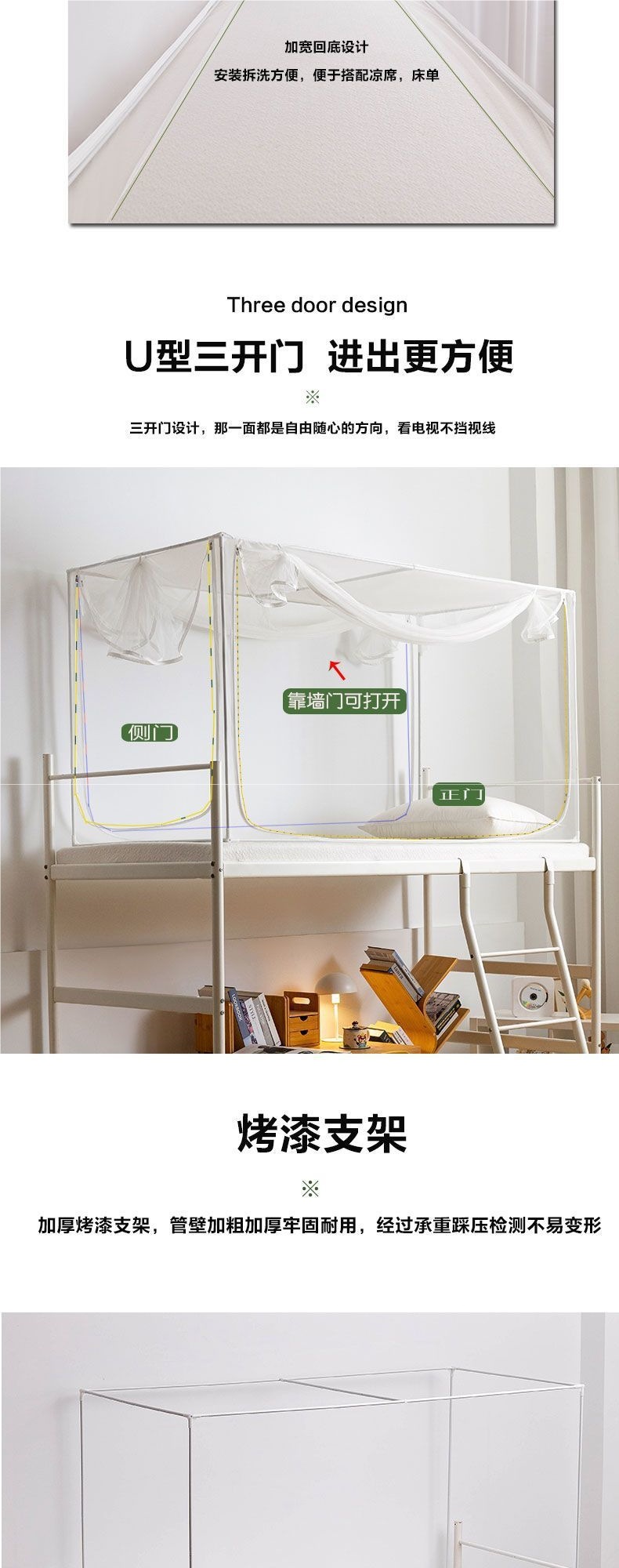 학생 기숙사 이층 침대 범용 0.9m 차광 모기장 침대 커튼 상단 레벨 브래킷 확장 가능한 철제 침대 커튼 3 도어스토어 가기