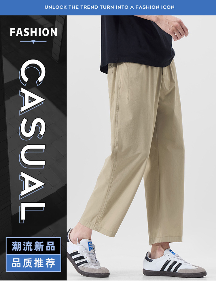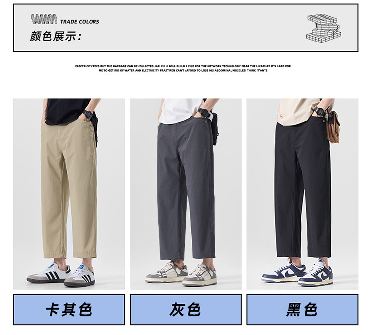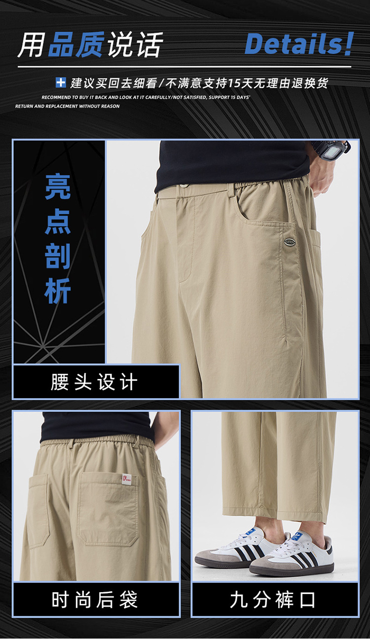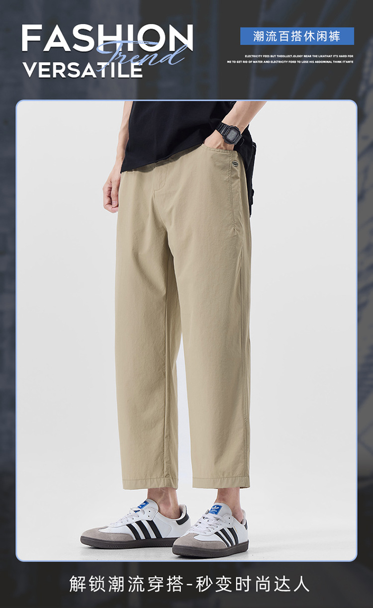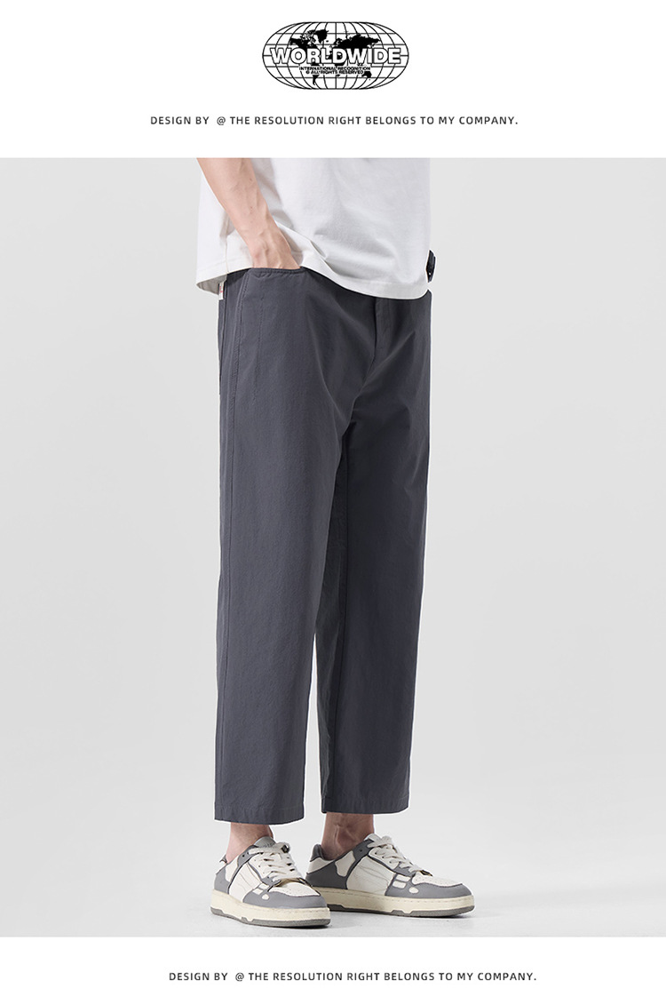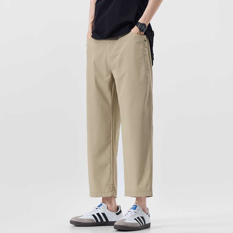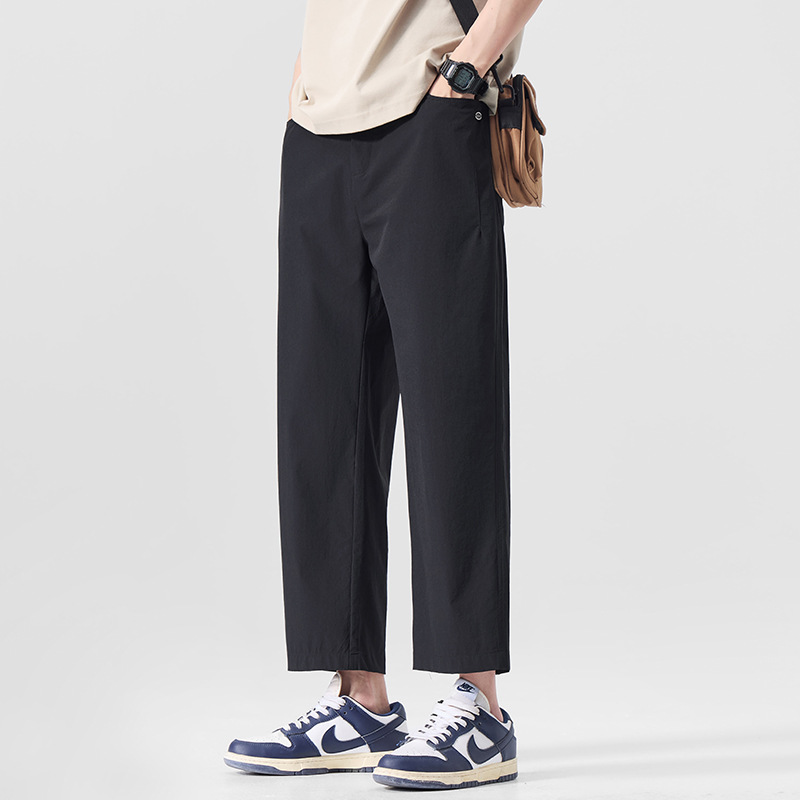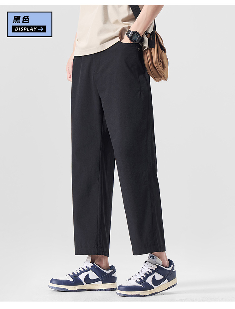 明格|夏季薄款冰丝凉感九分休闲裤男纯色简约百搭宽松垂感直筒裤