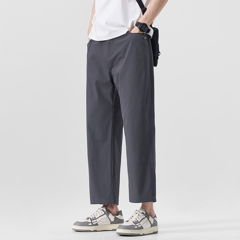 밍거 | 여름 얇은 얼음 실크 시원한 느낌의 남성용 9부 캐주얼 팬츠, 단색, 심플하고 다재다능한 루즈한 드레이프 스트레이트 팬츠