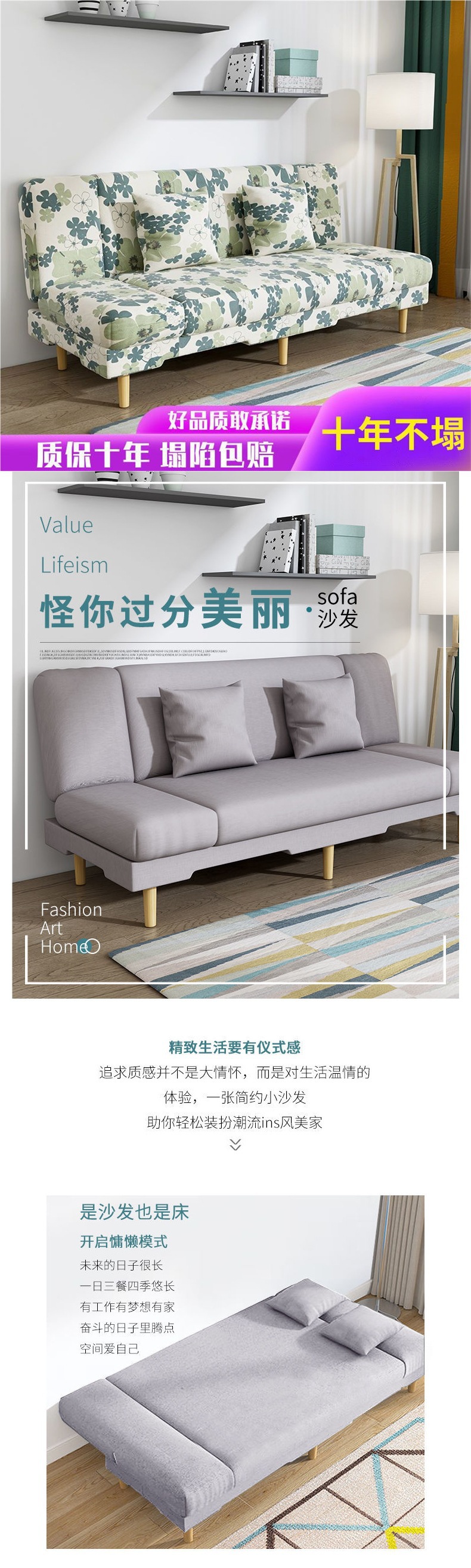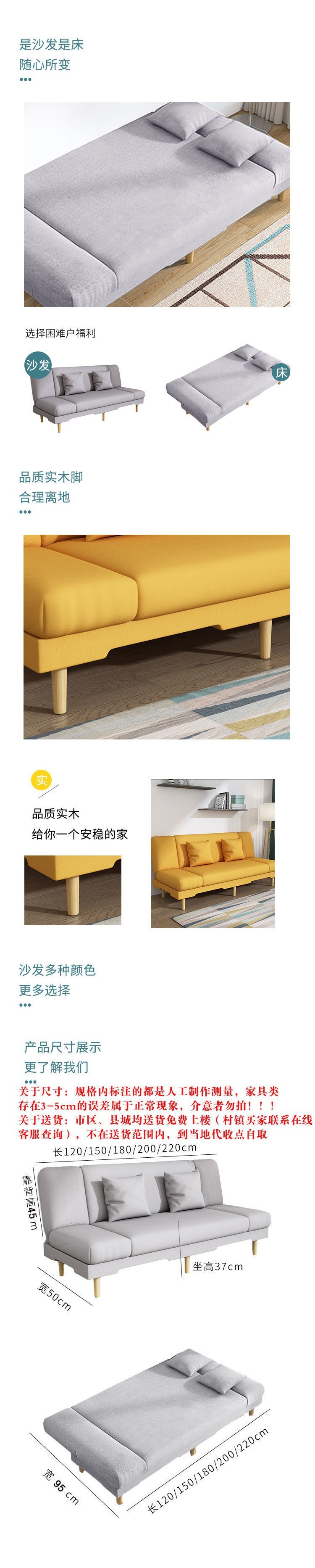 소형 아파트용 2인용 다기능 접이식 거실 패브릭 소파베드, 간편한 라운지 소파베드스토어 가기