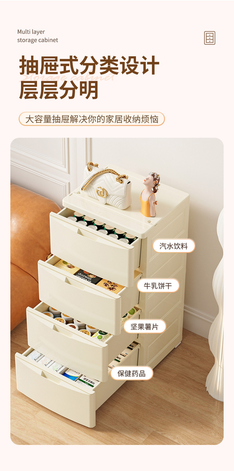 45cm 서랍형 수납장, 가정용 대형 수납장, 두꺼운 어린이 옷장, 아기 장난감, 간식 및 잡화 수납장스토어 가기