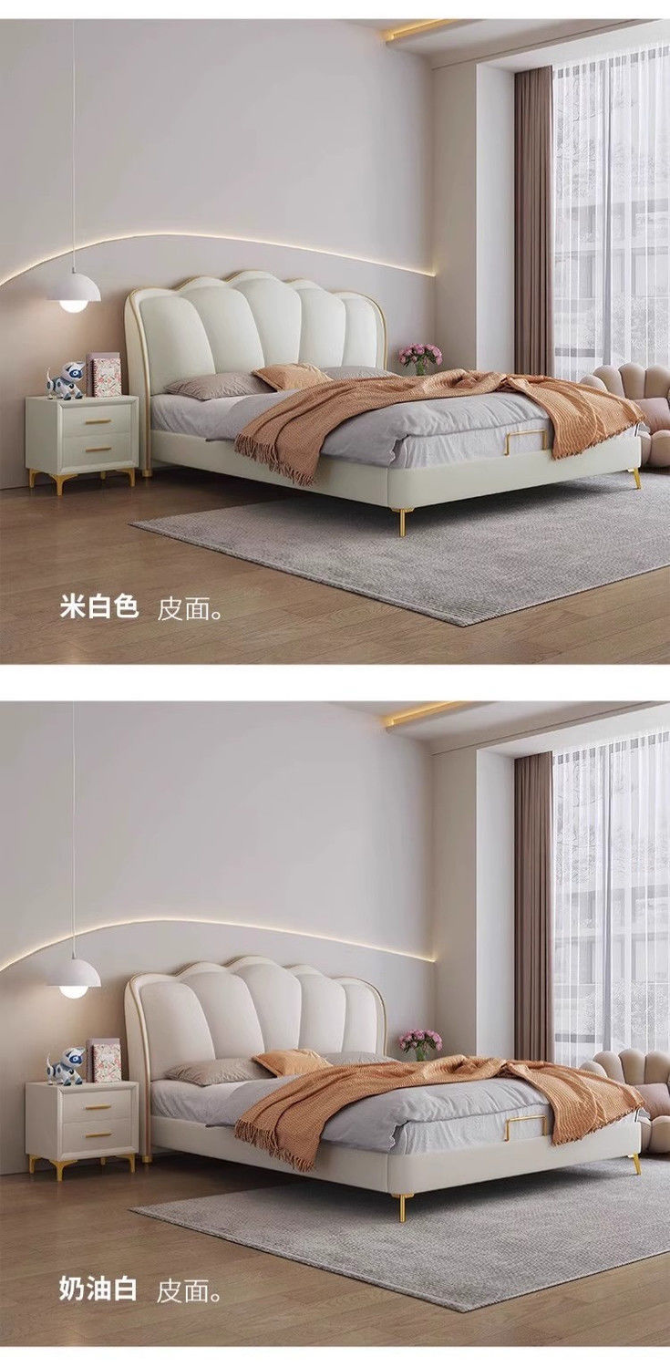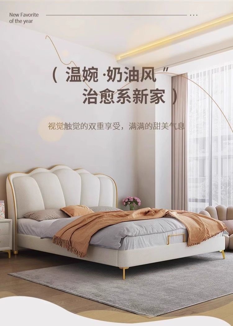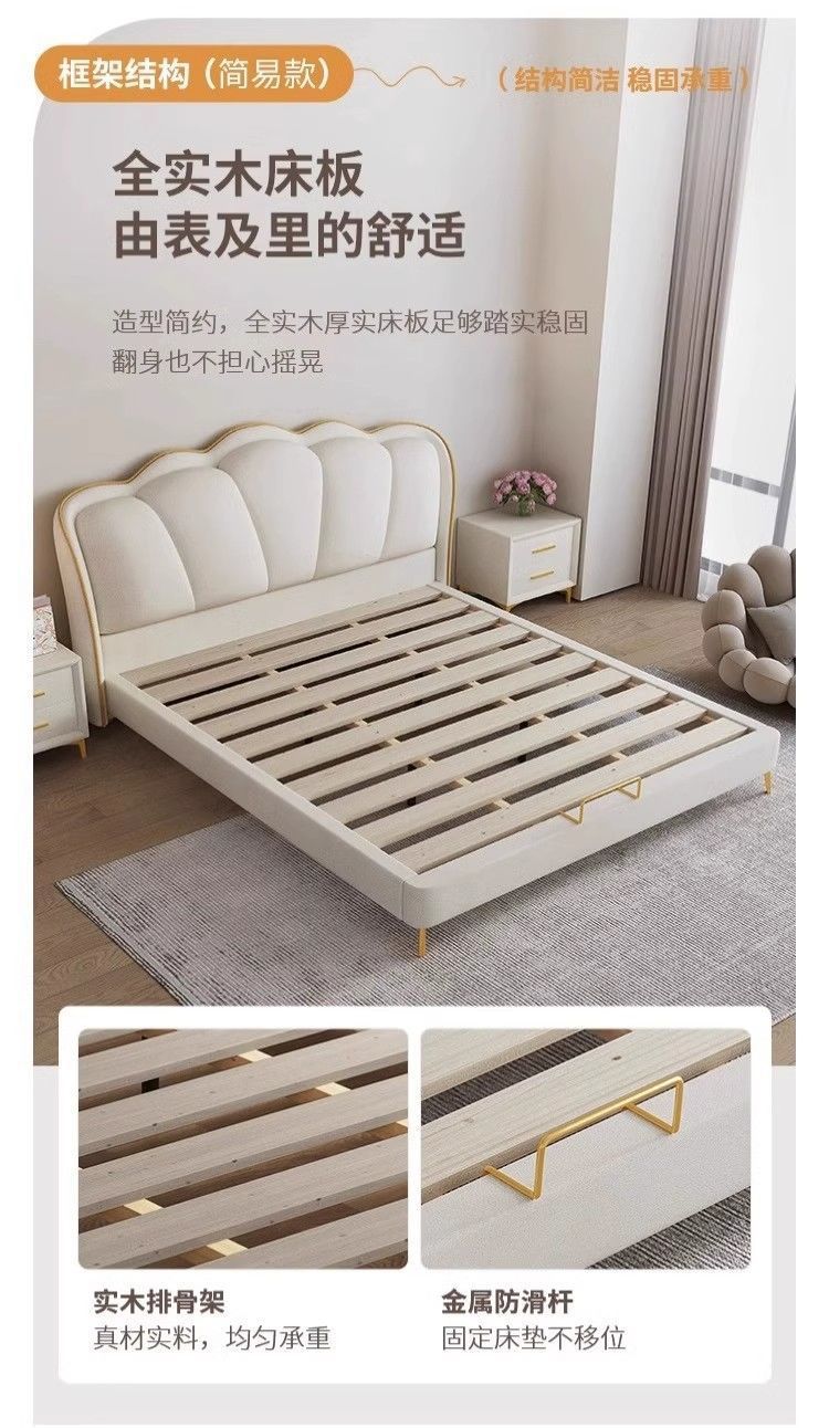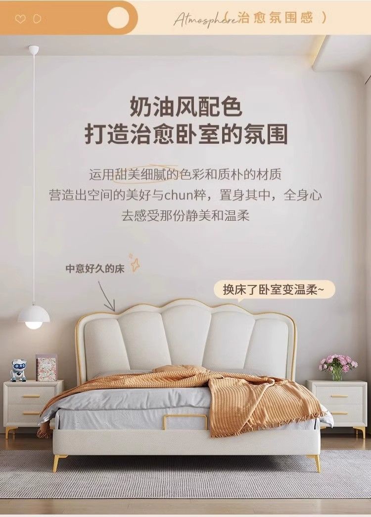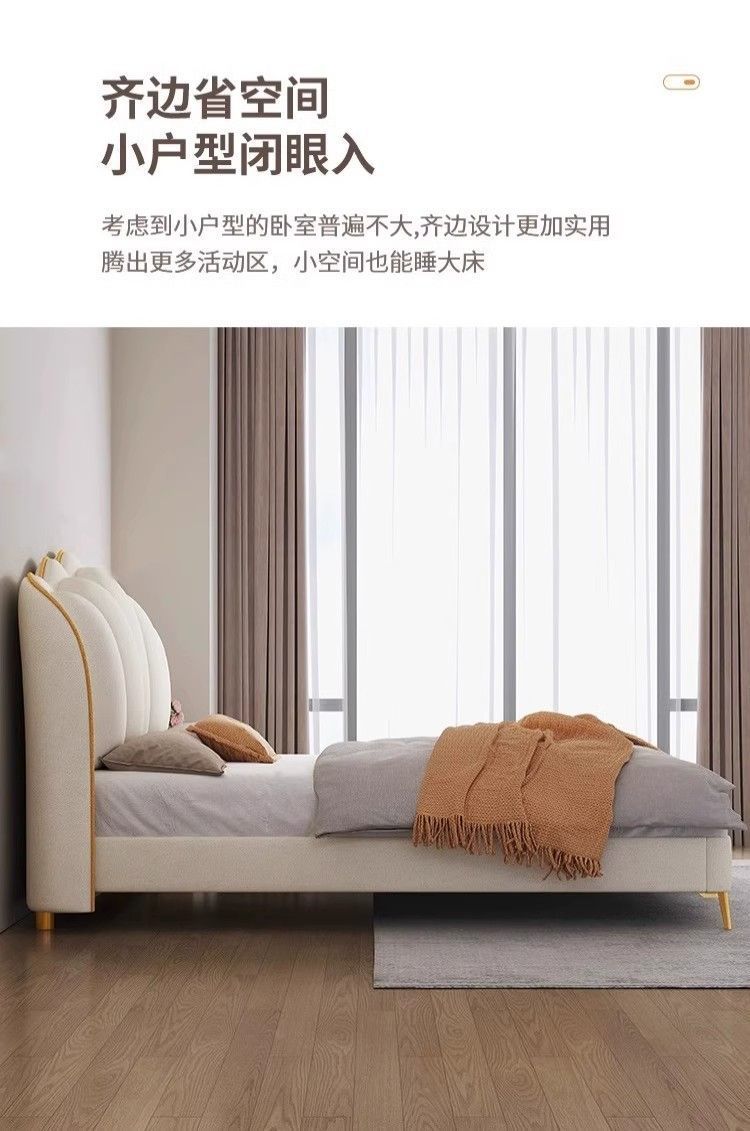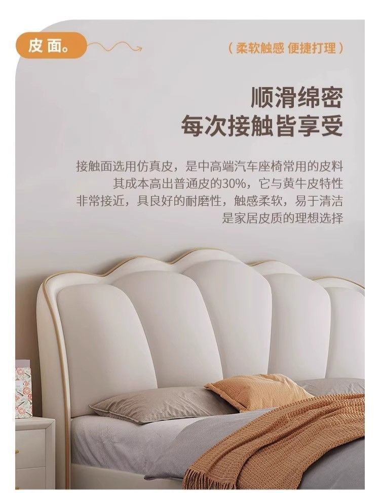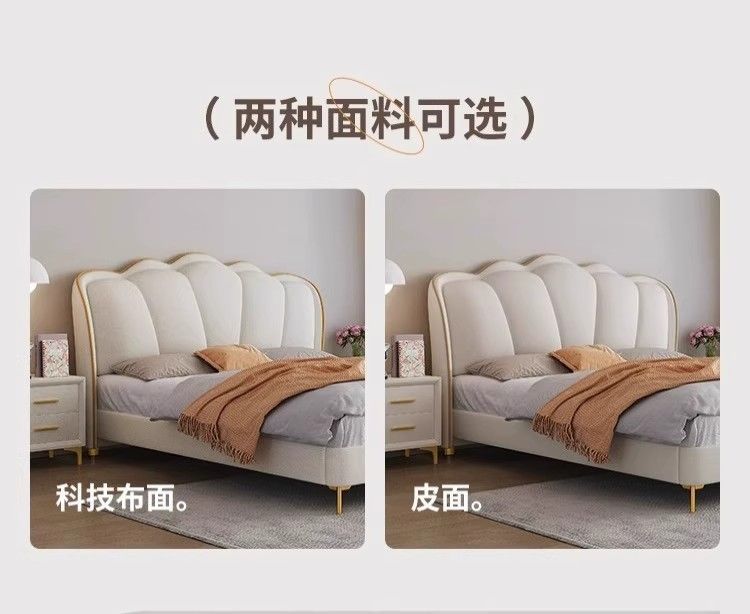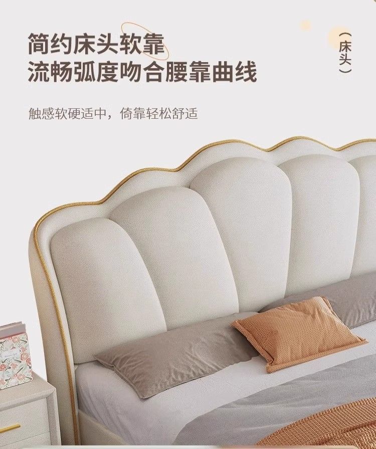 프렌치 크림 꽃잎 공주 침대 어린이 침대 소녀 가죽 침대 쉘 침대 현대 간단한 빛 럭셔리 기술 천 침대스토어 가기