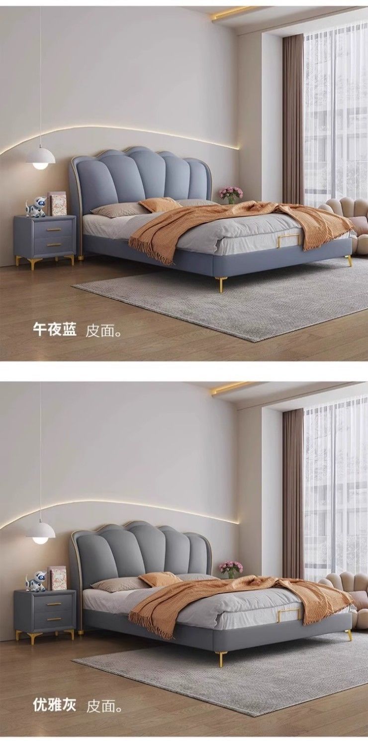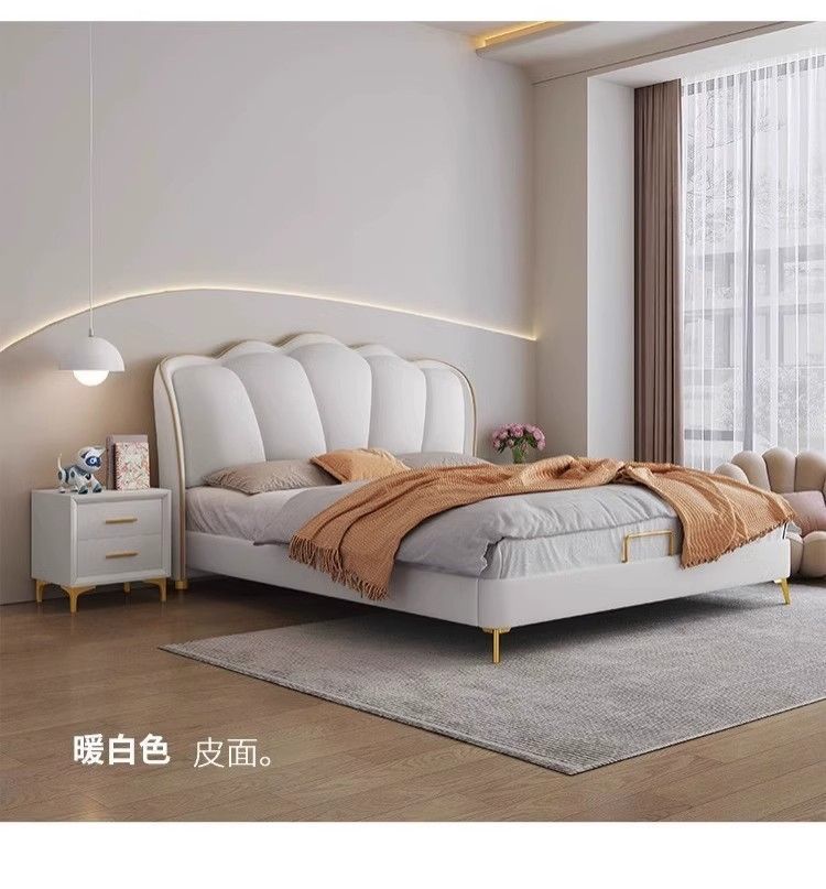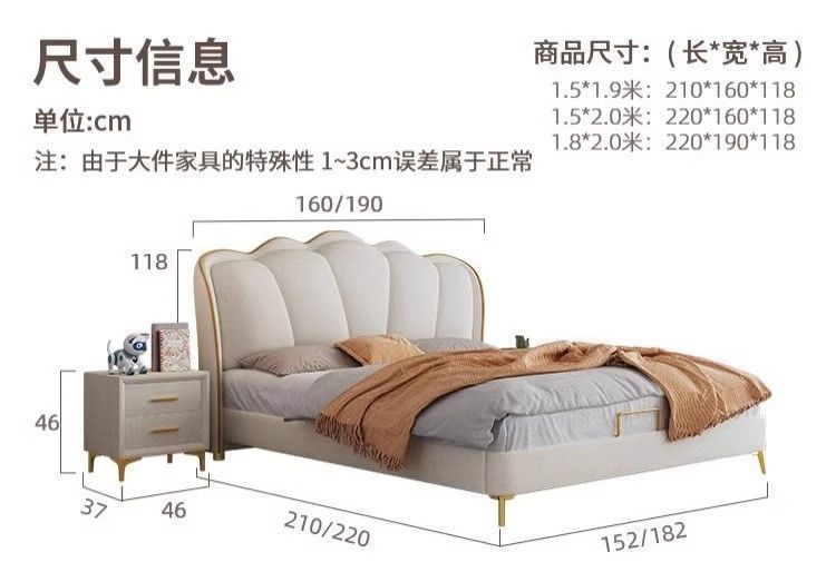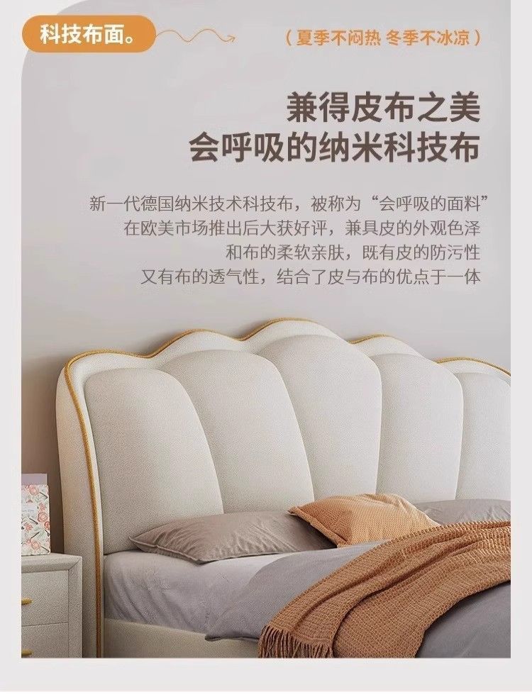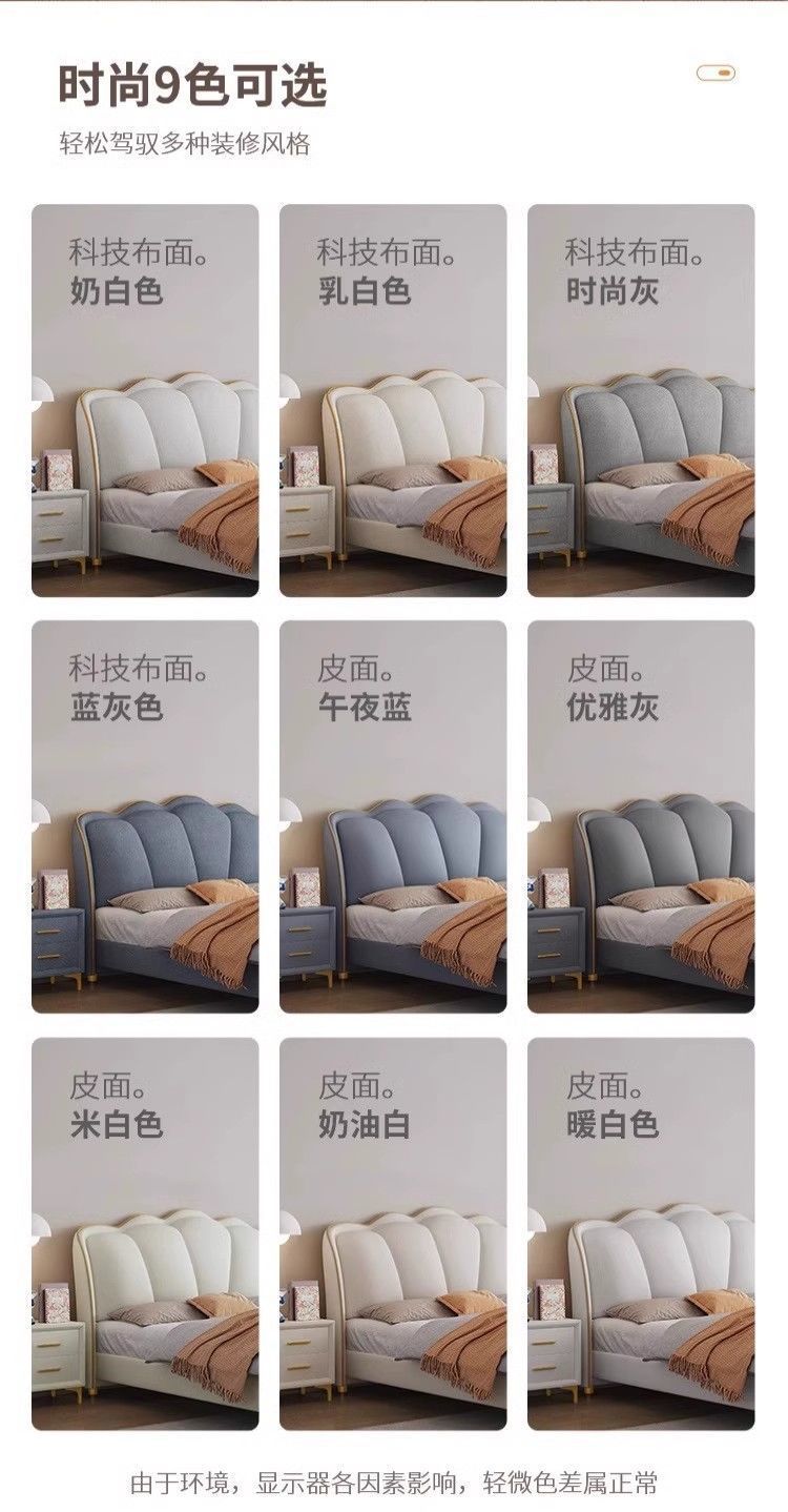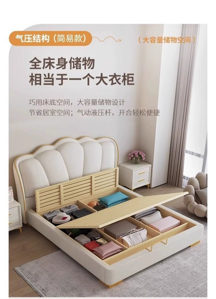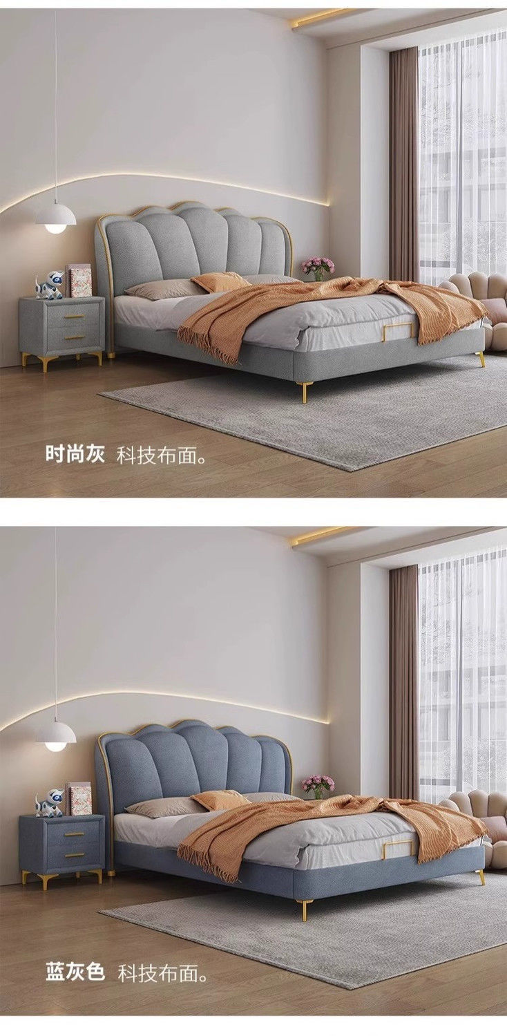 프렌치 크림 꽃잎 공주 침대 어린이 침대 소녀 가죽 침대 쉘 침대 현대 간단한 빛 럭셔리 기술 천 침대스토어 가기