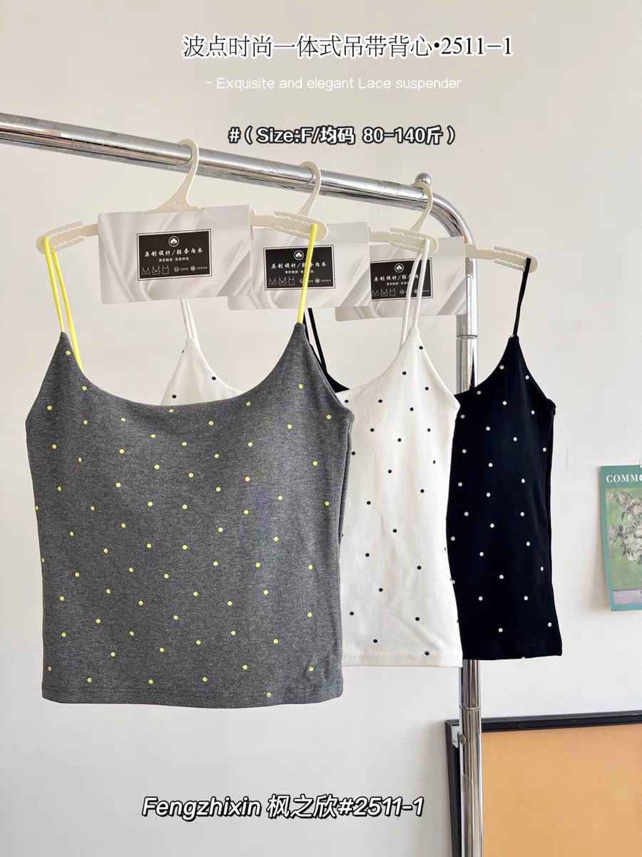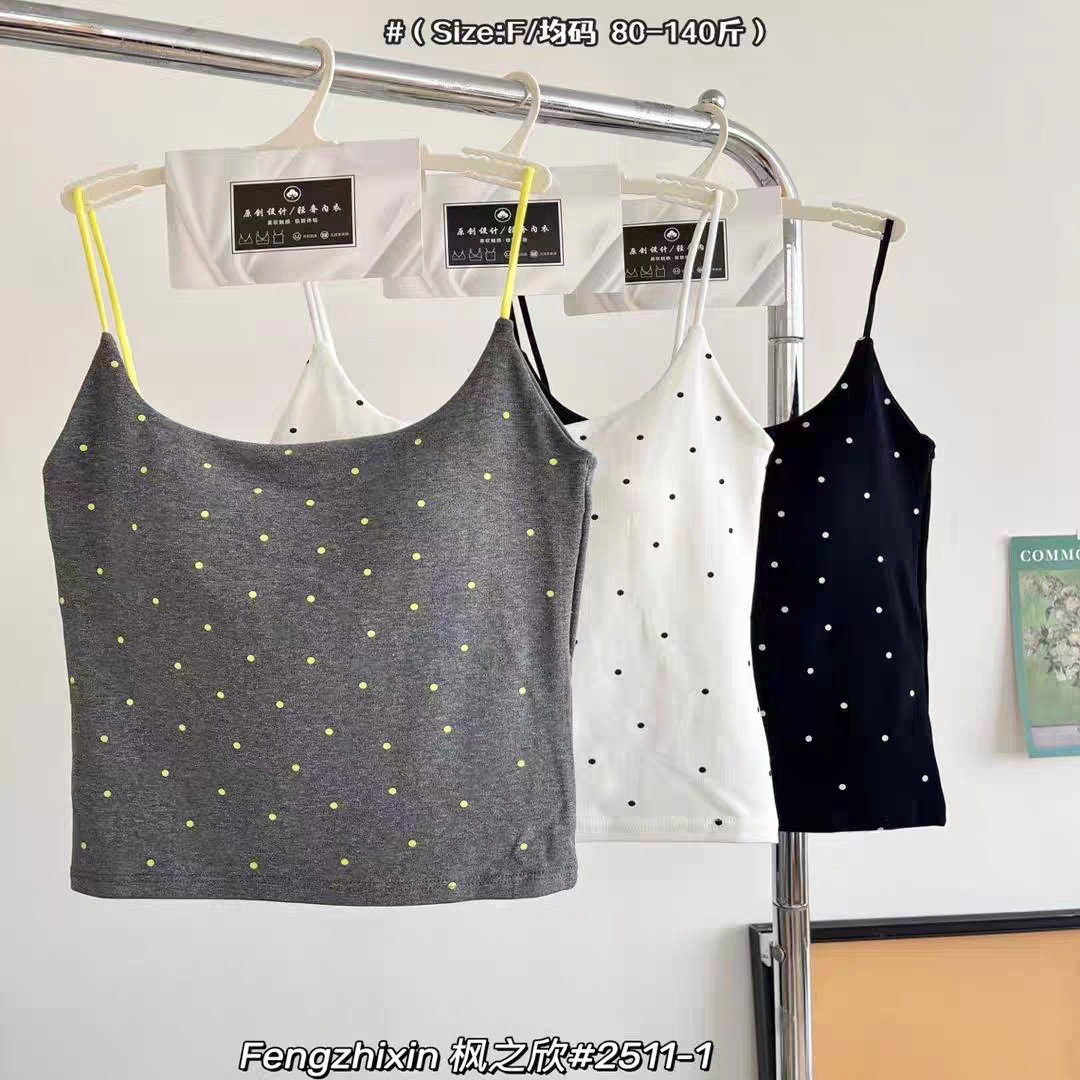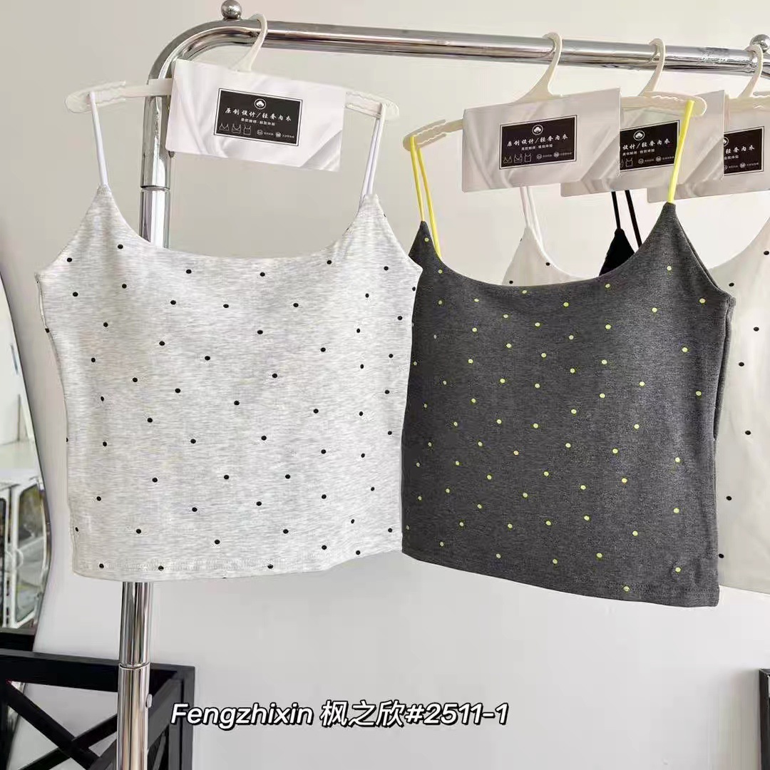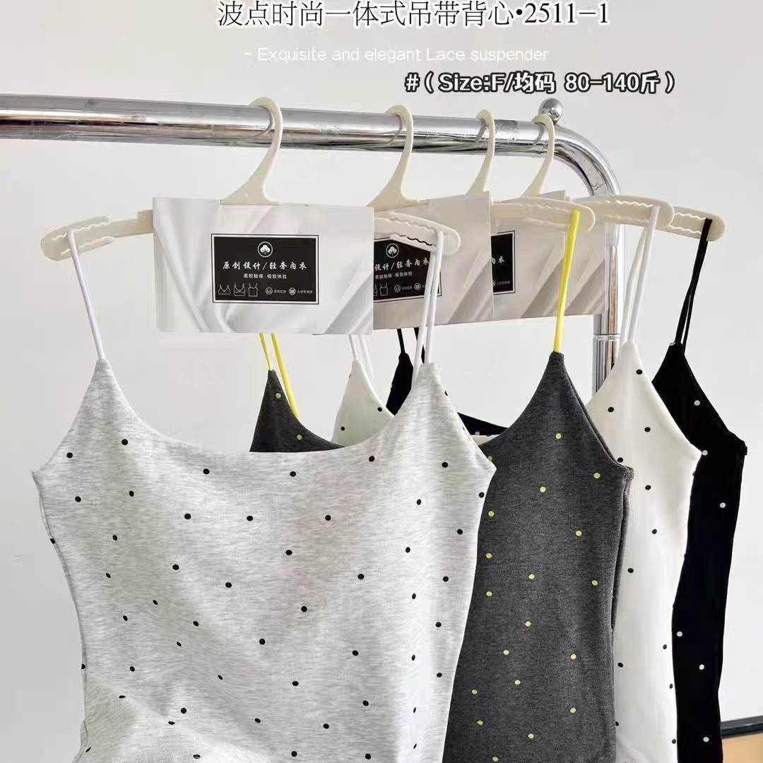 2511-1 # 한국 패션 폴카 도트 일체형 컵받침 스퀘어 넥 캐미솔은 편안하고 섹시하며 달콤한 스타일입니다