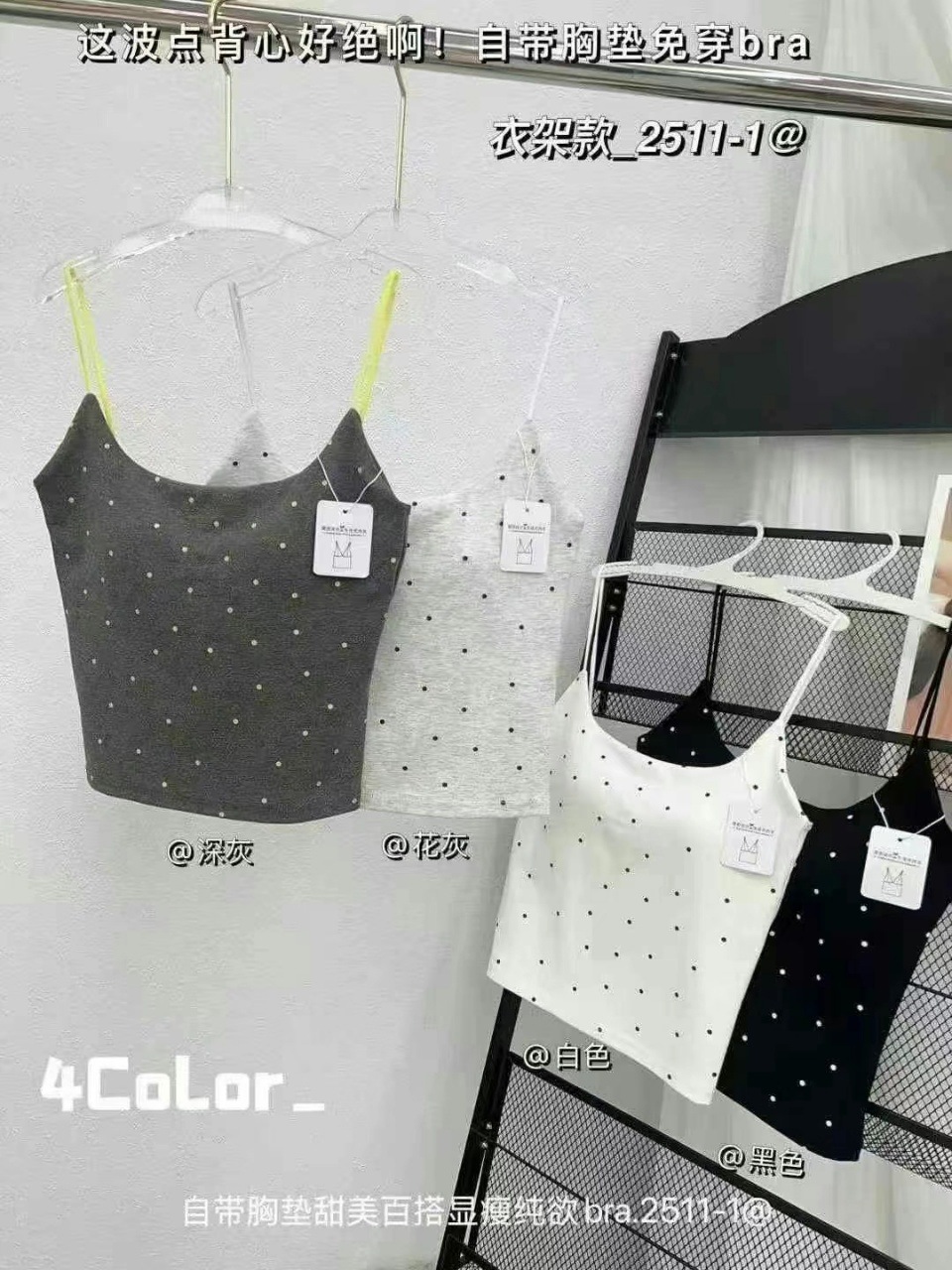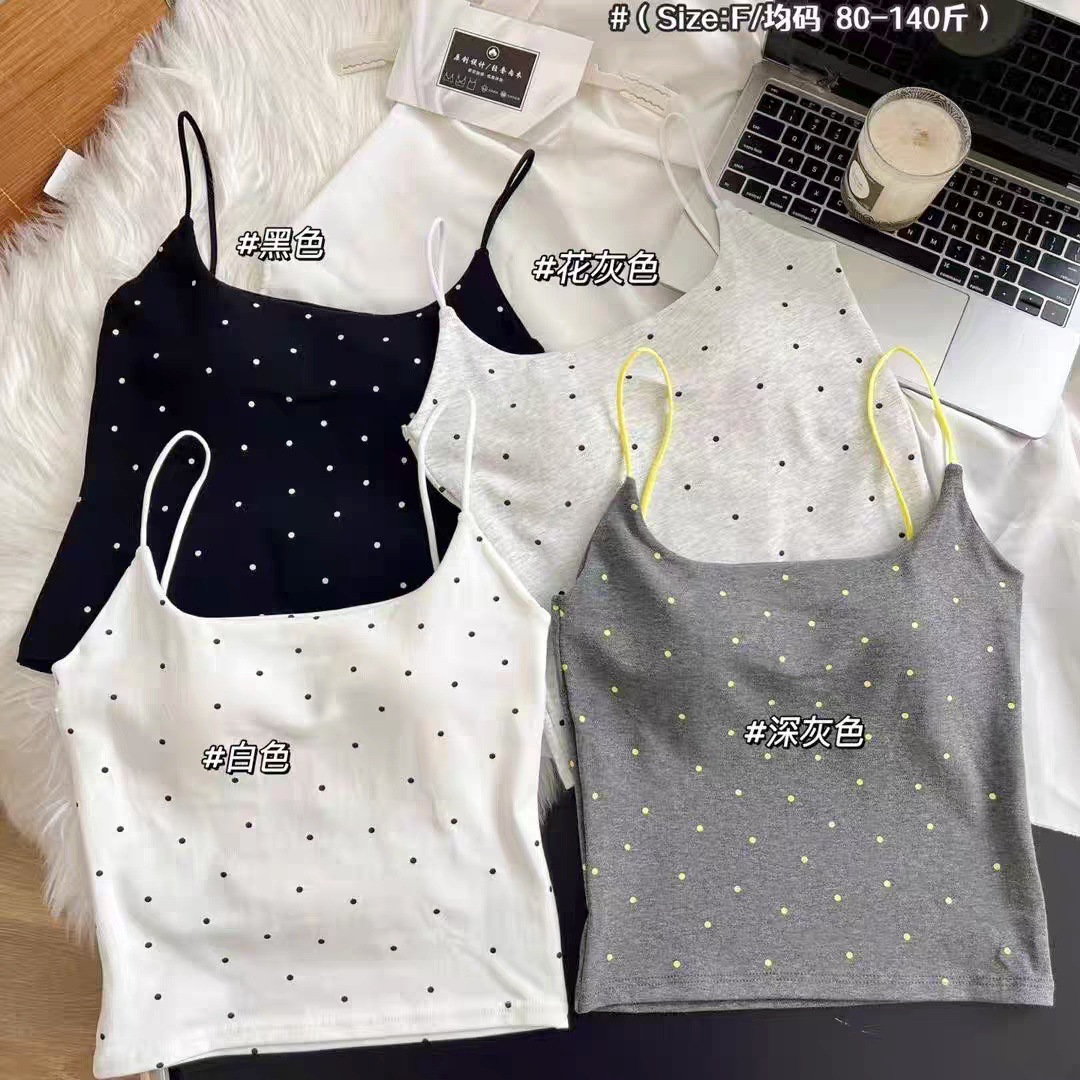 2511-1 # 한국 패션 폴카 도트 일체형 컵받침 스퀘어 넥 캐미솔은 편안하고 섹시하며 달콤한 스타일입니다스토어 가기
