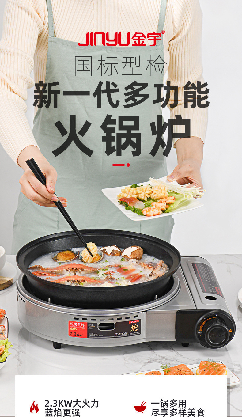 Jinyu K3000 카세트 스토브 야외 휴대용 가스 스토브 피크닉 바베큐 가정용 다기능 냄비 프라이팬
