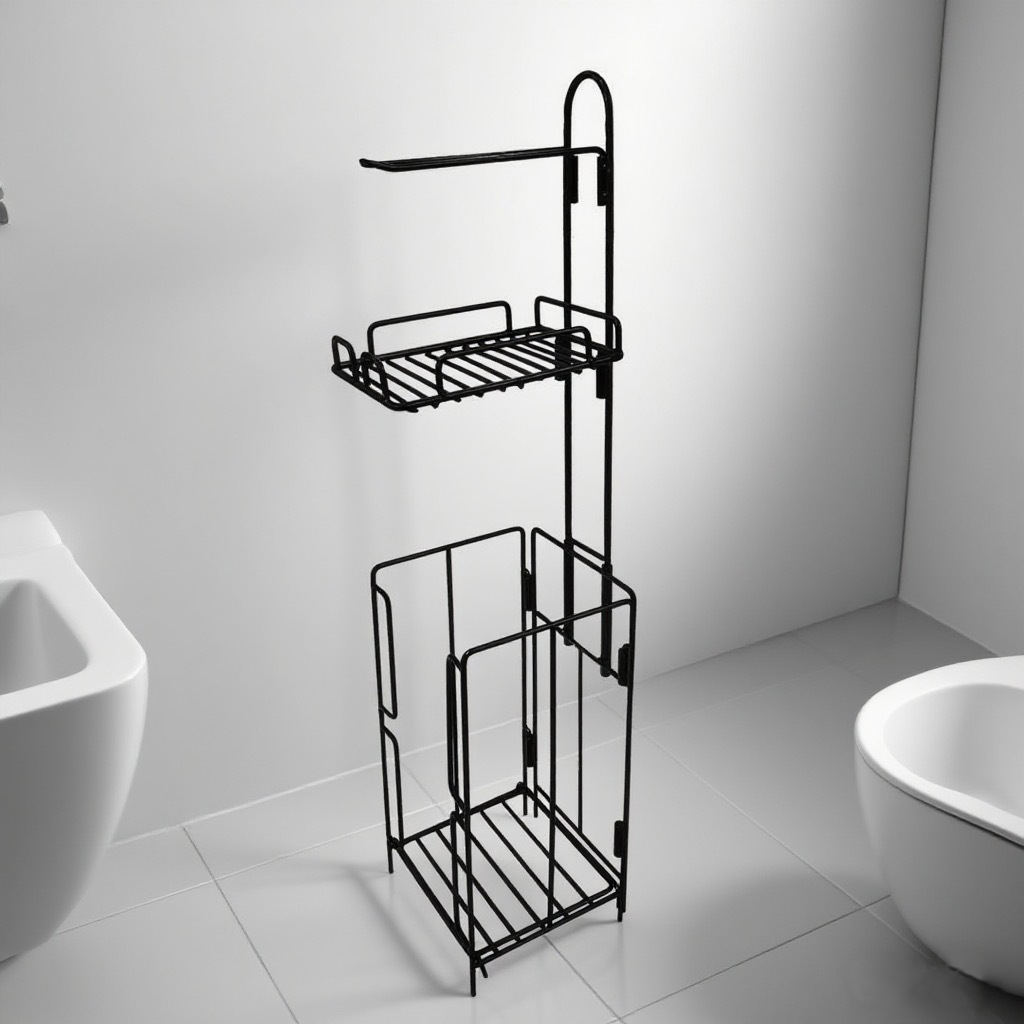 욕실 바닥에 서 있는 욕실 화장실 보관함 유럽식 철제 화장실 정리함 종이 타월 홀더 휴대폰 홀더