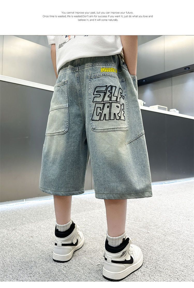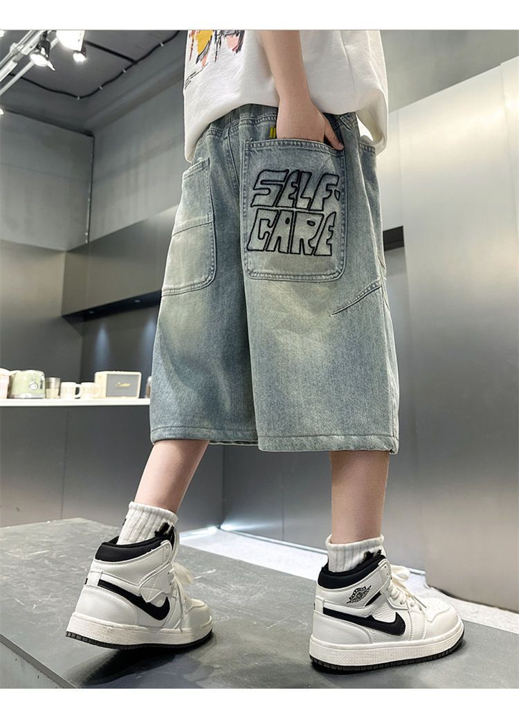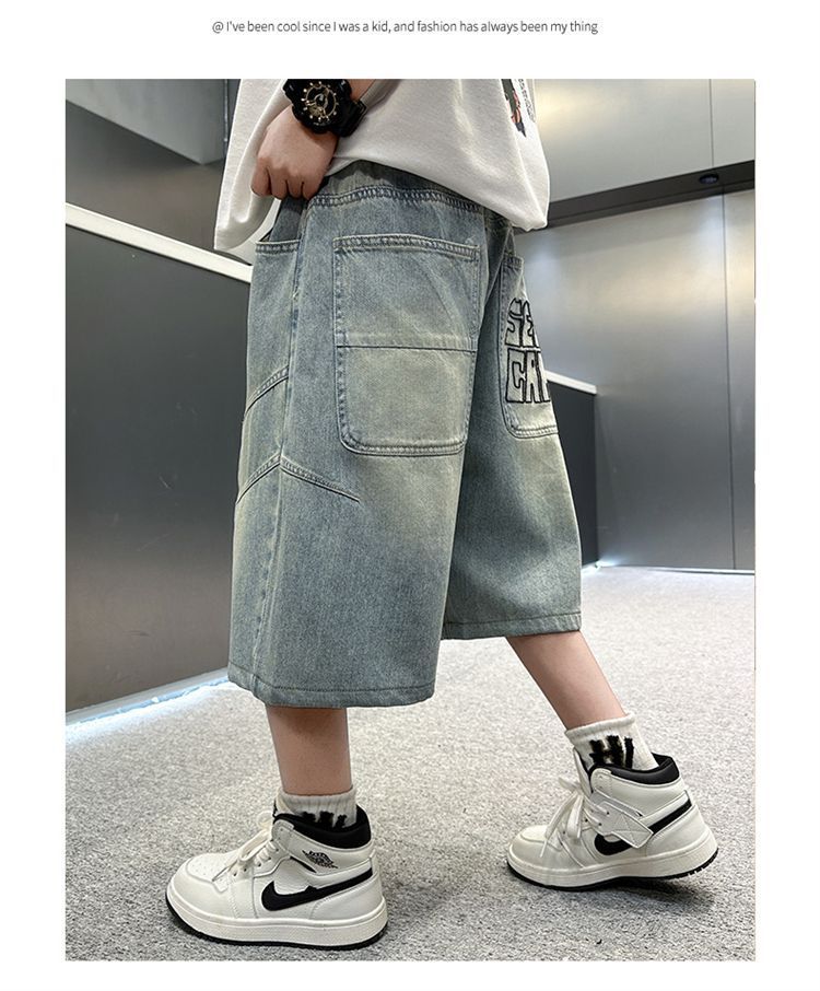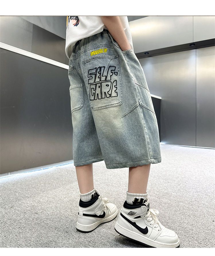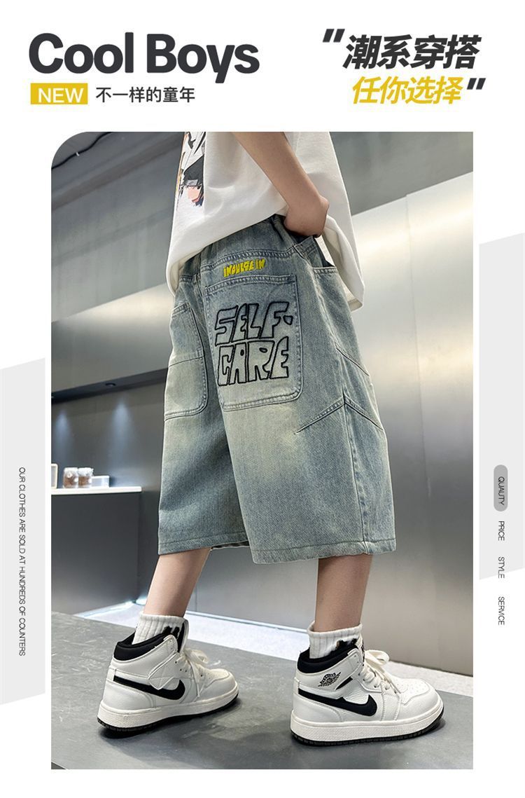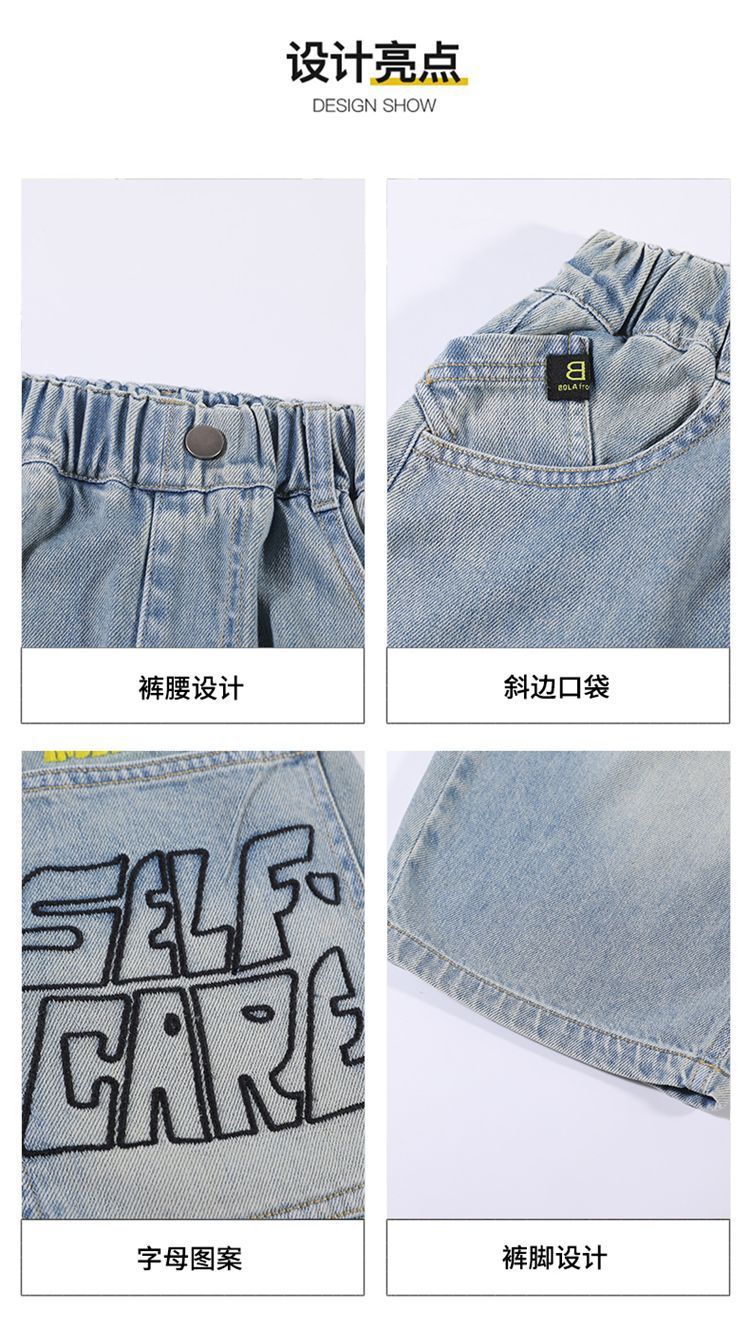 남아용 청바지 여름 얇은 새 스타일 중대형 아동용 문자 자수 5부 청바지 남아용 여름 반바지 유행스토어 가기