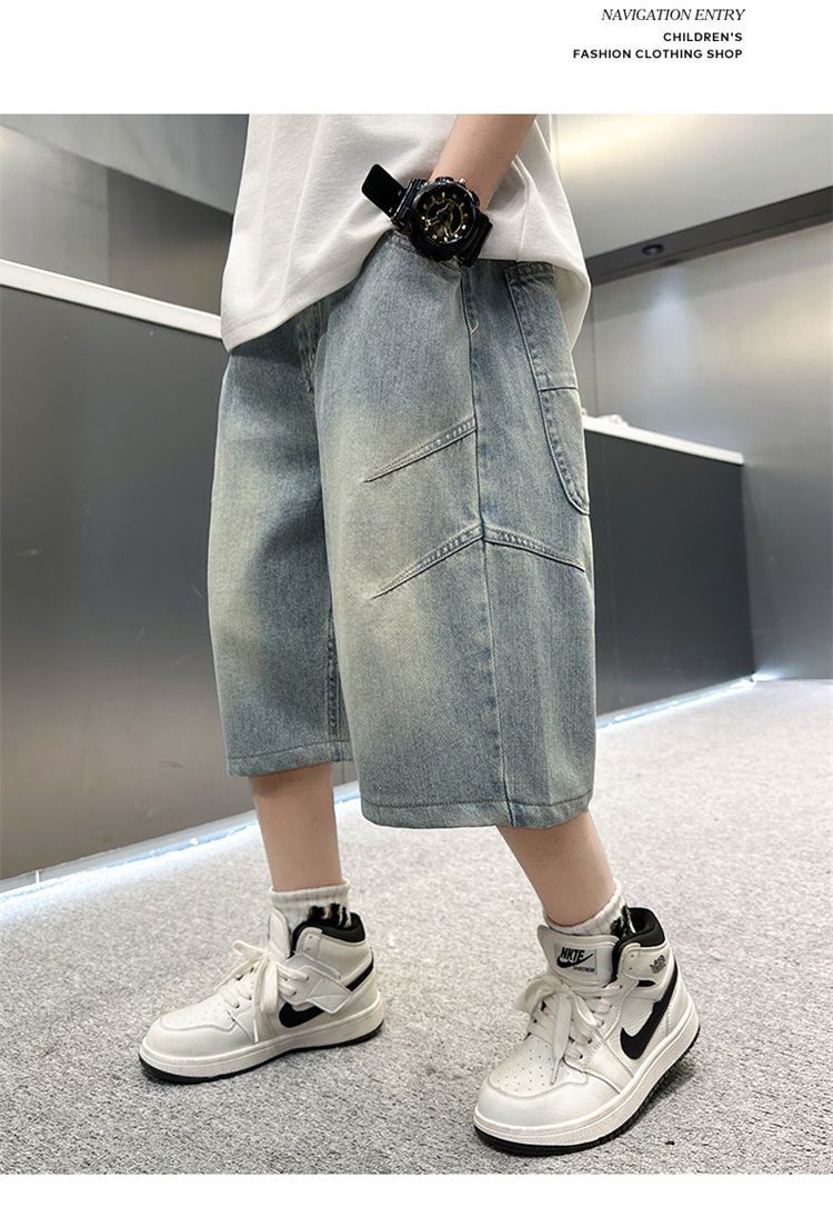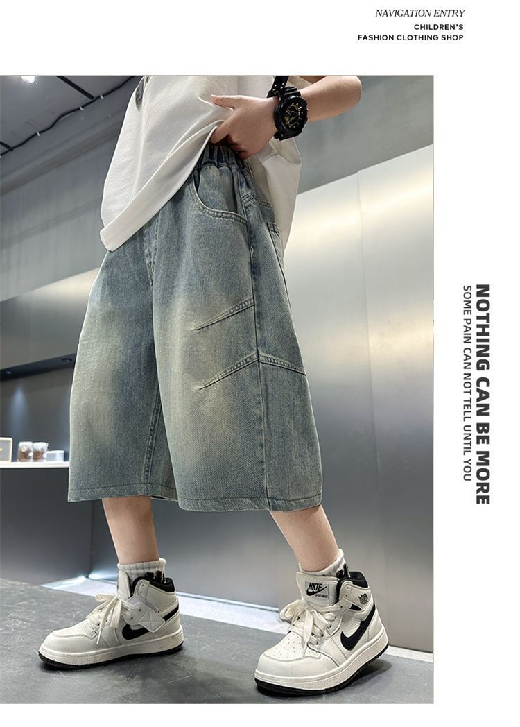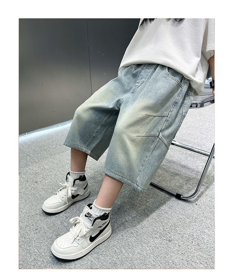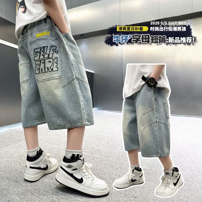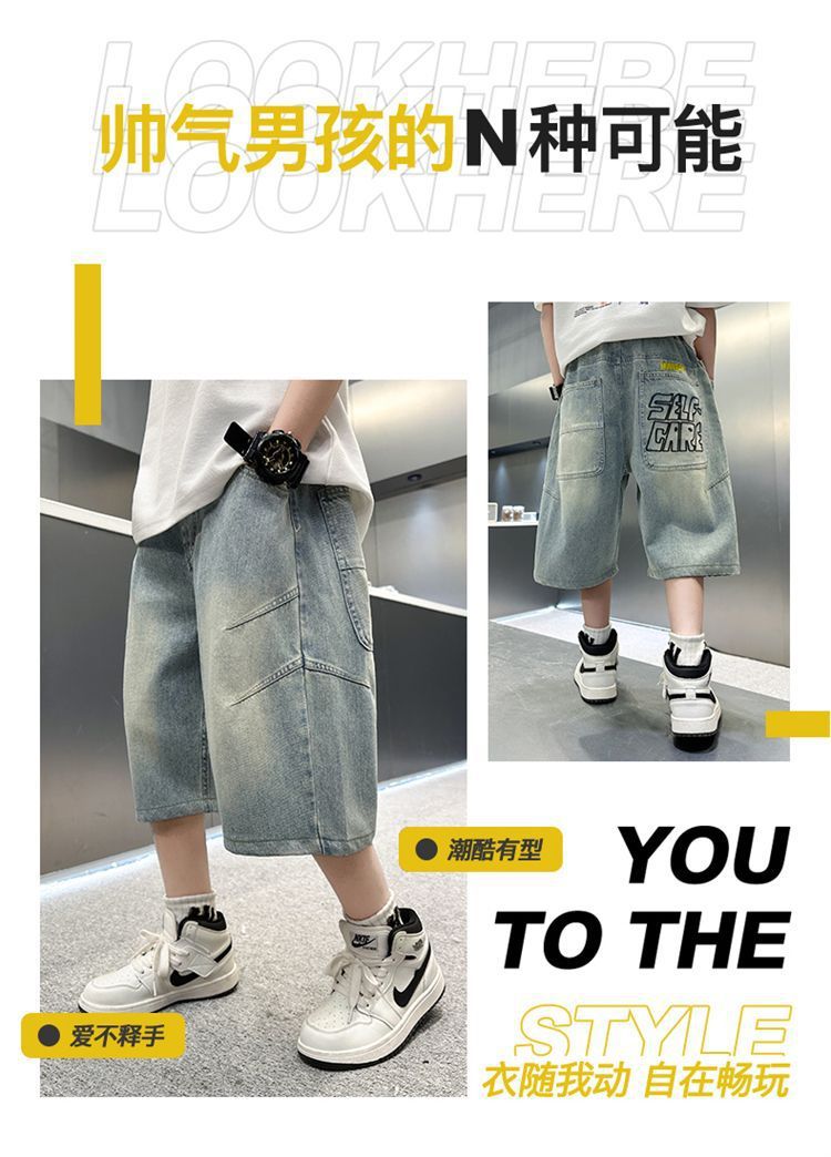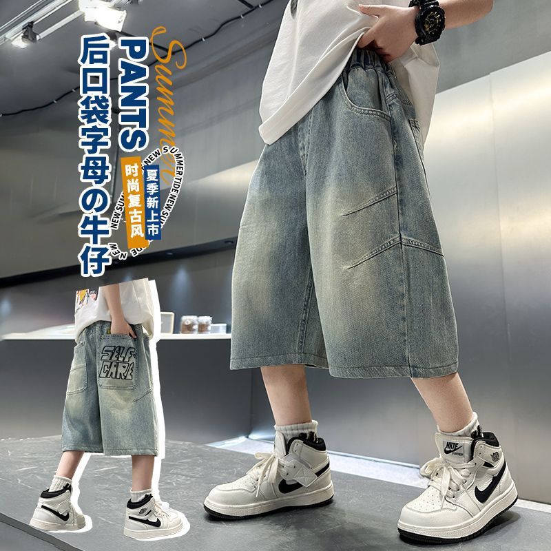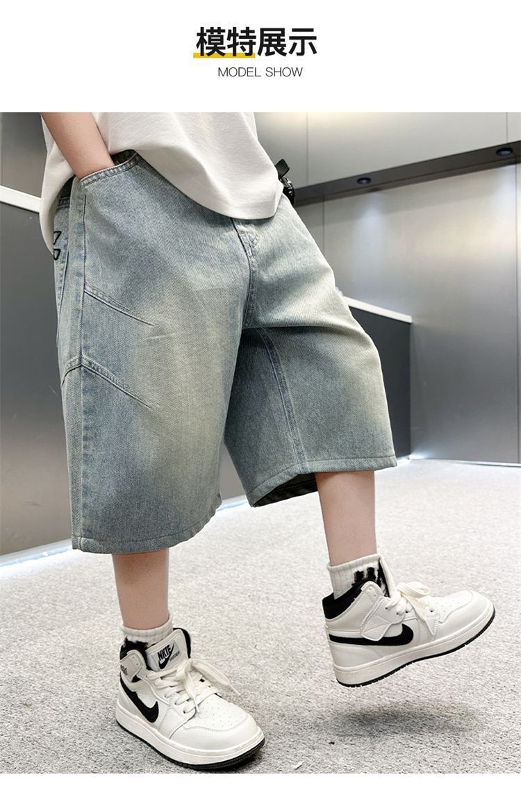 남아용 청바지 여름 얇은 새 스타일 중대형 아동용 문자 자수 5부 청바지 남아용 여름 반바지 유행스토어 가기