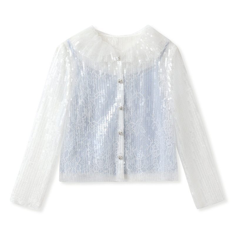 가을 우아한 작은 프랑스 스타일 레이스 디자인 스커트 고급 인형 칼라 탑 세트 여성용 ZX 모델 N6086