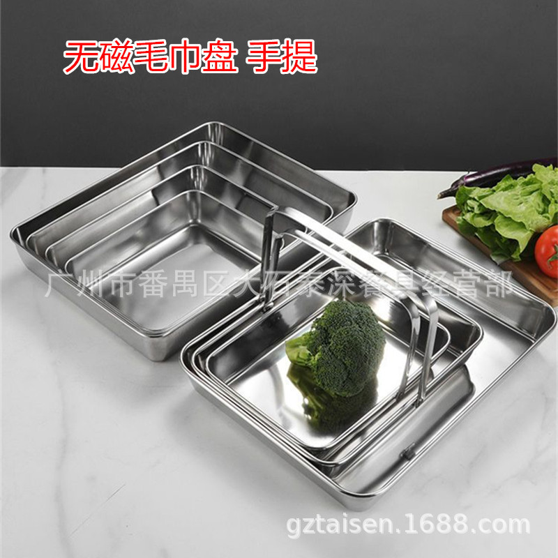 스테인레스 스틸 비자성 수건 트레이, 손잡이가 있는 비자성 다목적 직사각형 트레이, 사각형 트레이, 플랫 트레이, 휴대용스토어 가기