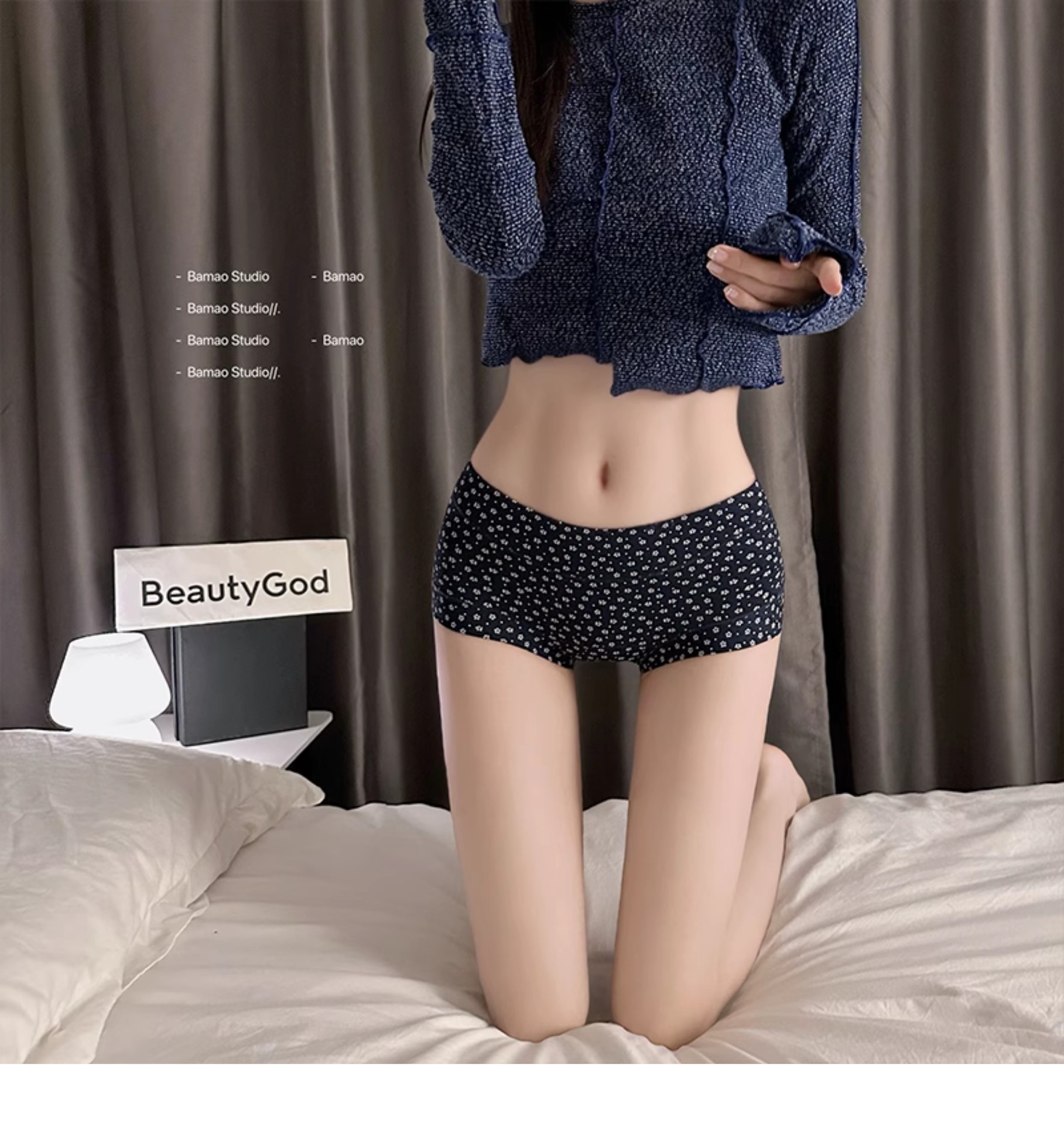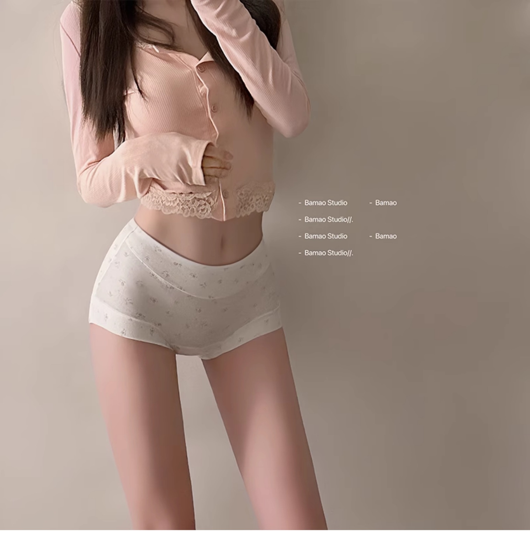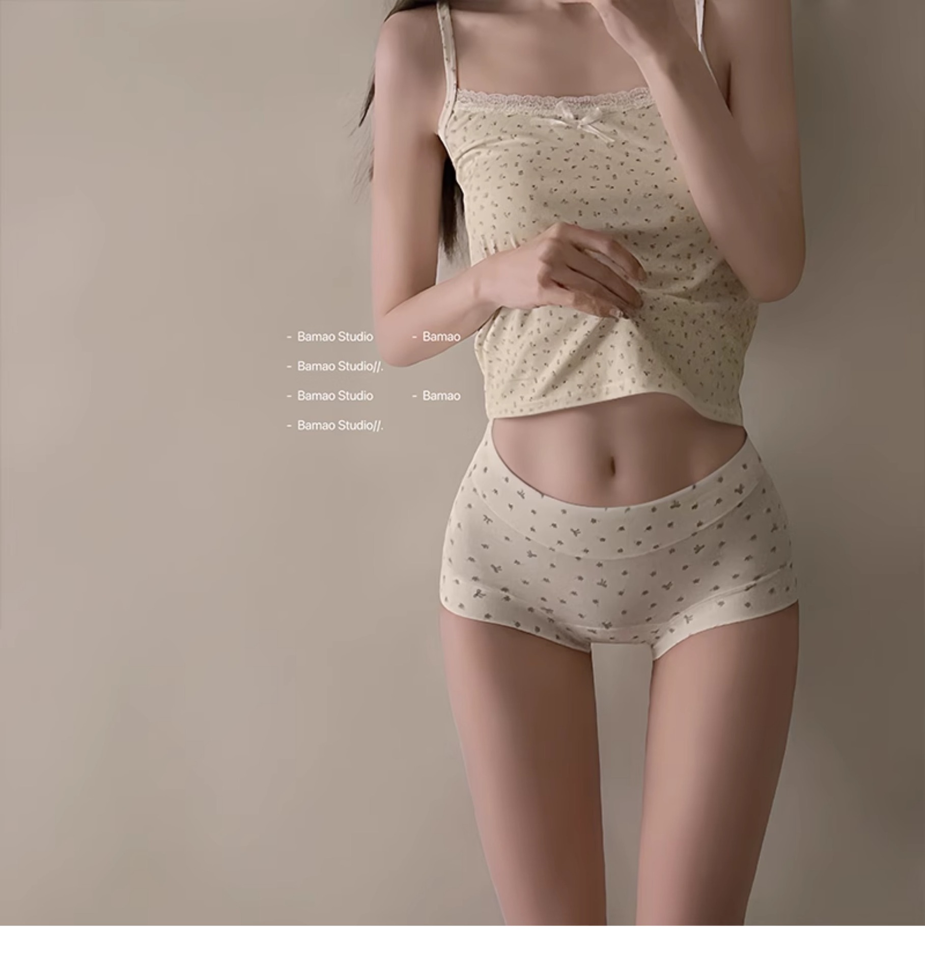 여성용 꽃무늬 복서 팬티 순면 10A 항균 가랑이 여름 얇은 중간 높이 허리 배 컨트롤 엉덩이 커버 복서 반바지스토어 가기