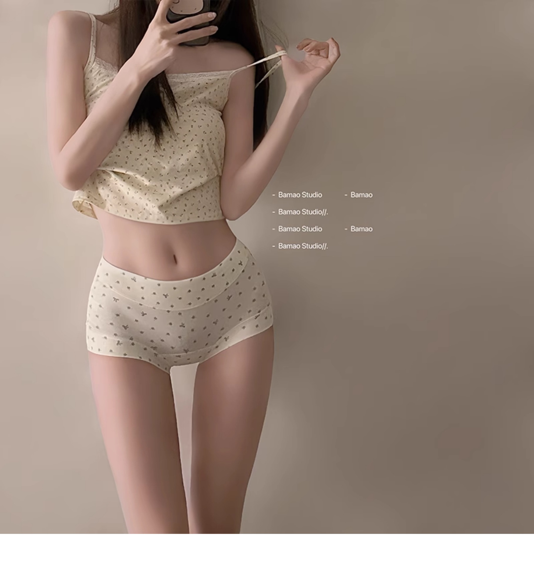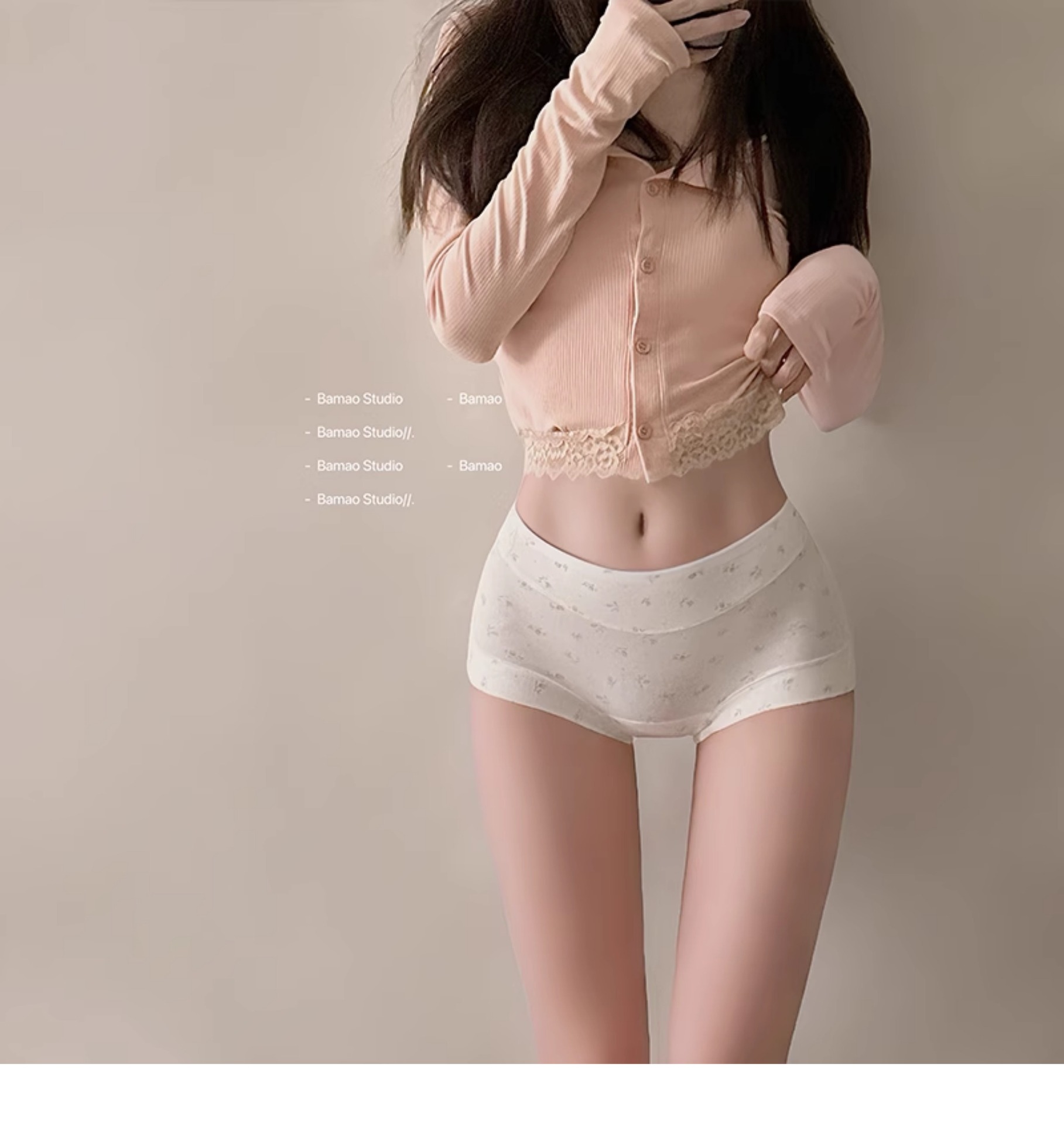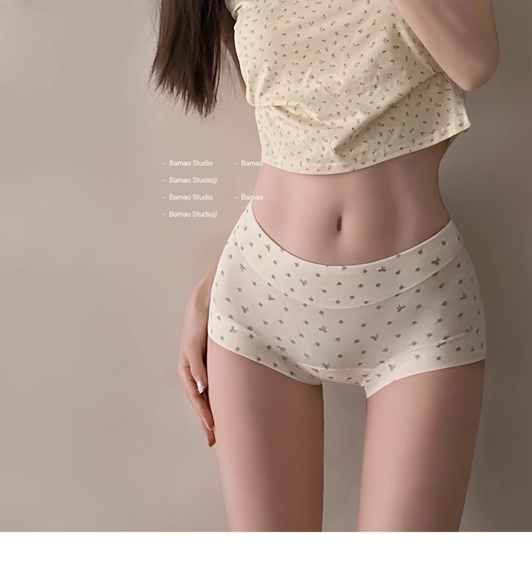 여성용 꽃무늬 복서 팬티 순면 10A 항균 가랑이 여름 얇은 중간 높이 허리 배 컨트롤 엉덩이 커버 복서 반바지스토어 가기