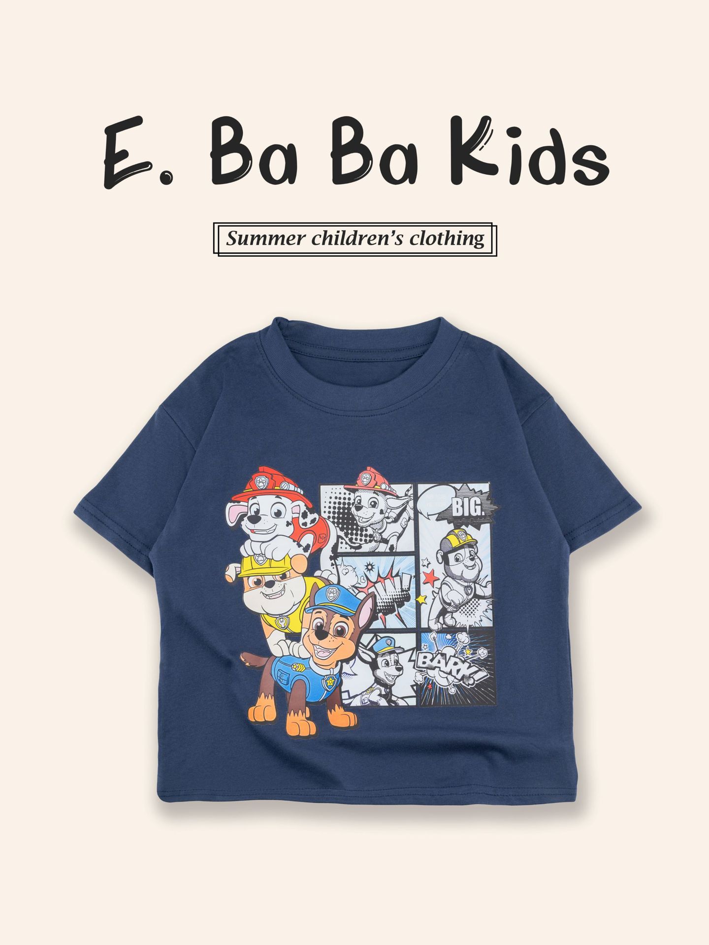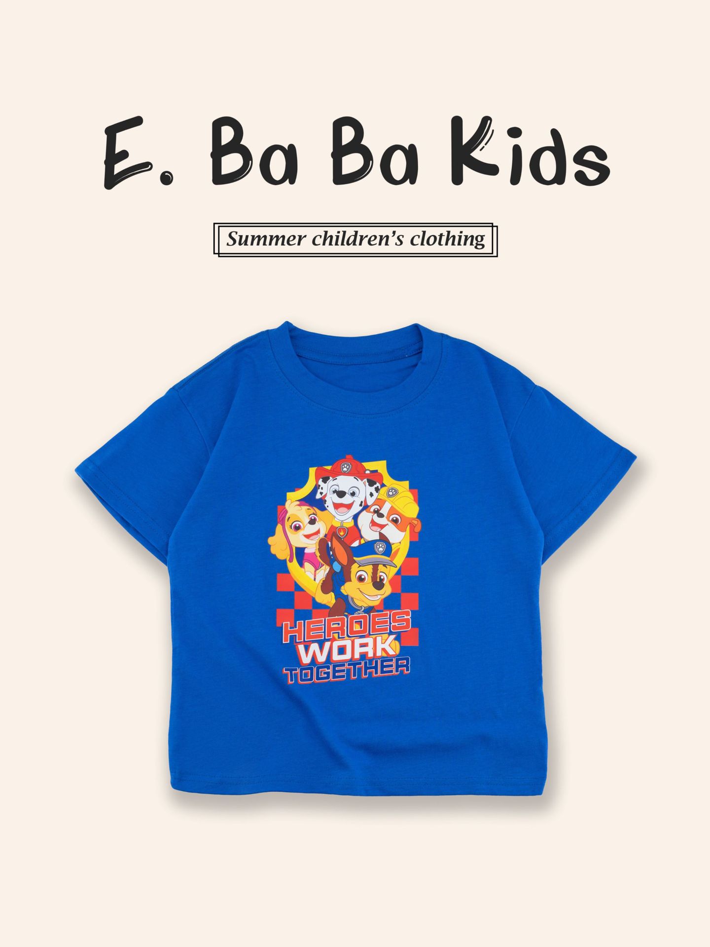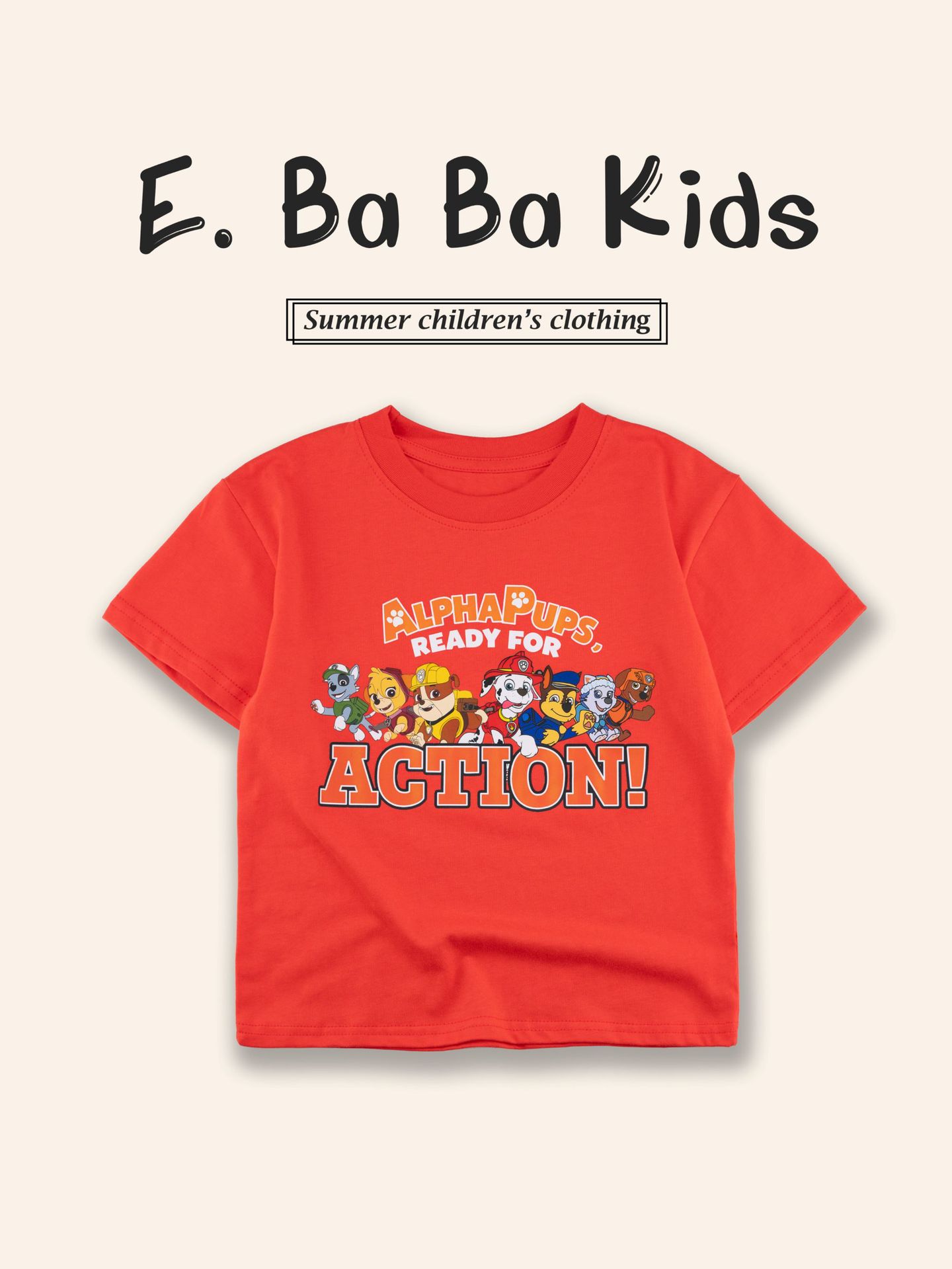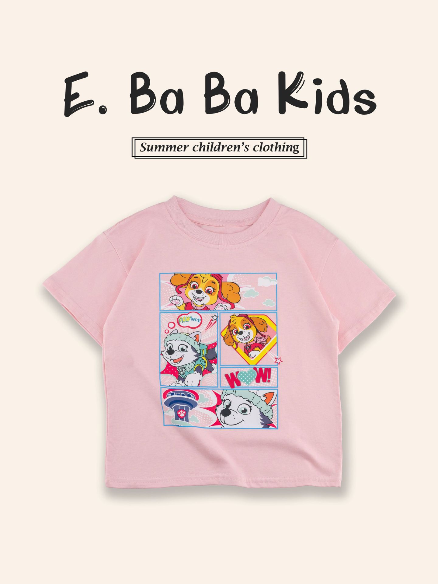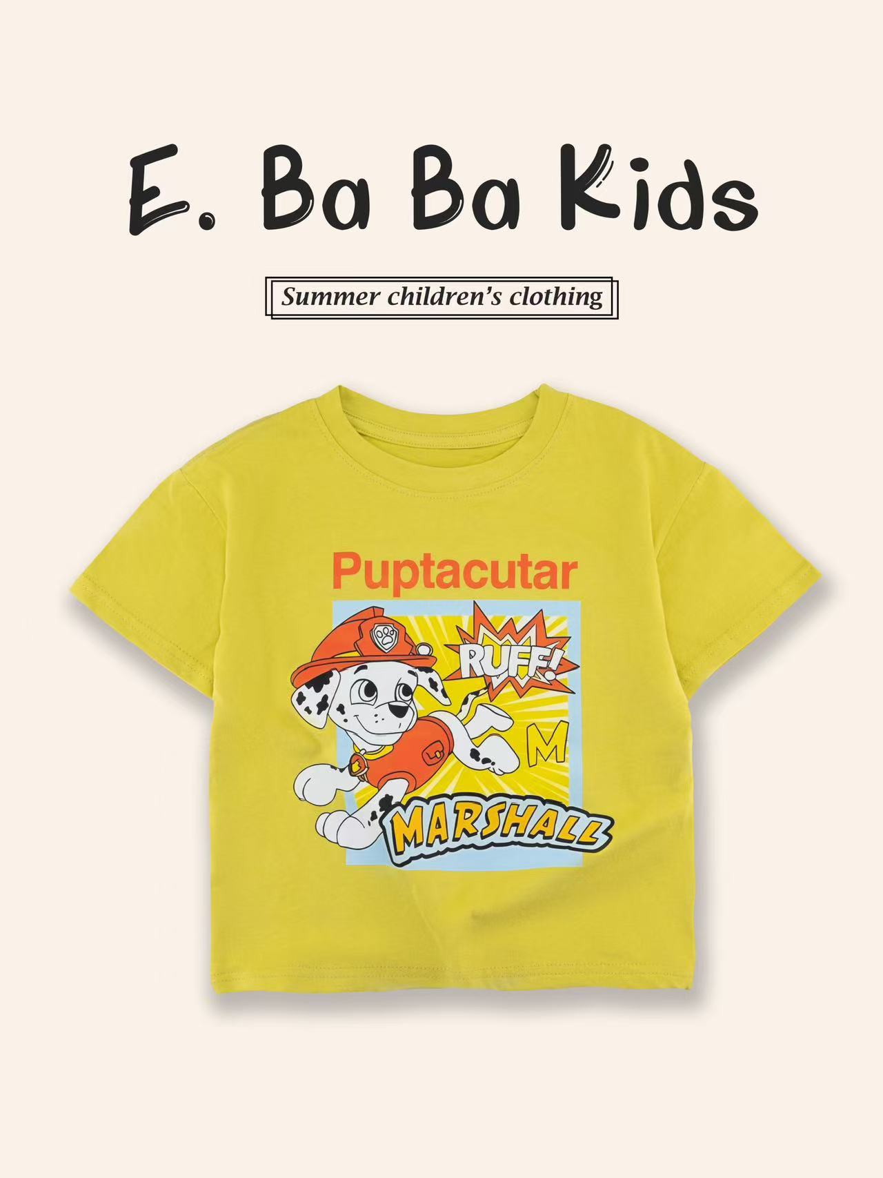Paw Patrol 어린이 반팔 티셔츠 소년과 소녀를위한 프린트 티셔츠 만화 애니메이션 패턴 순수 코튼 여름 어린이상의스토어 가기