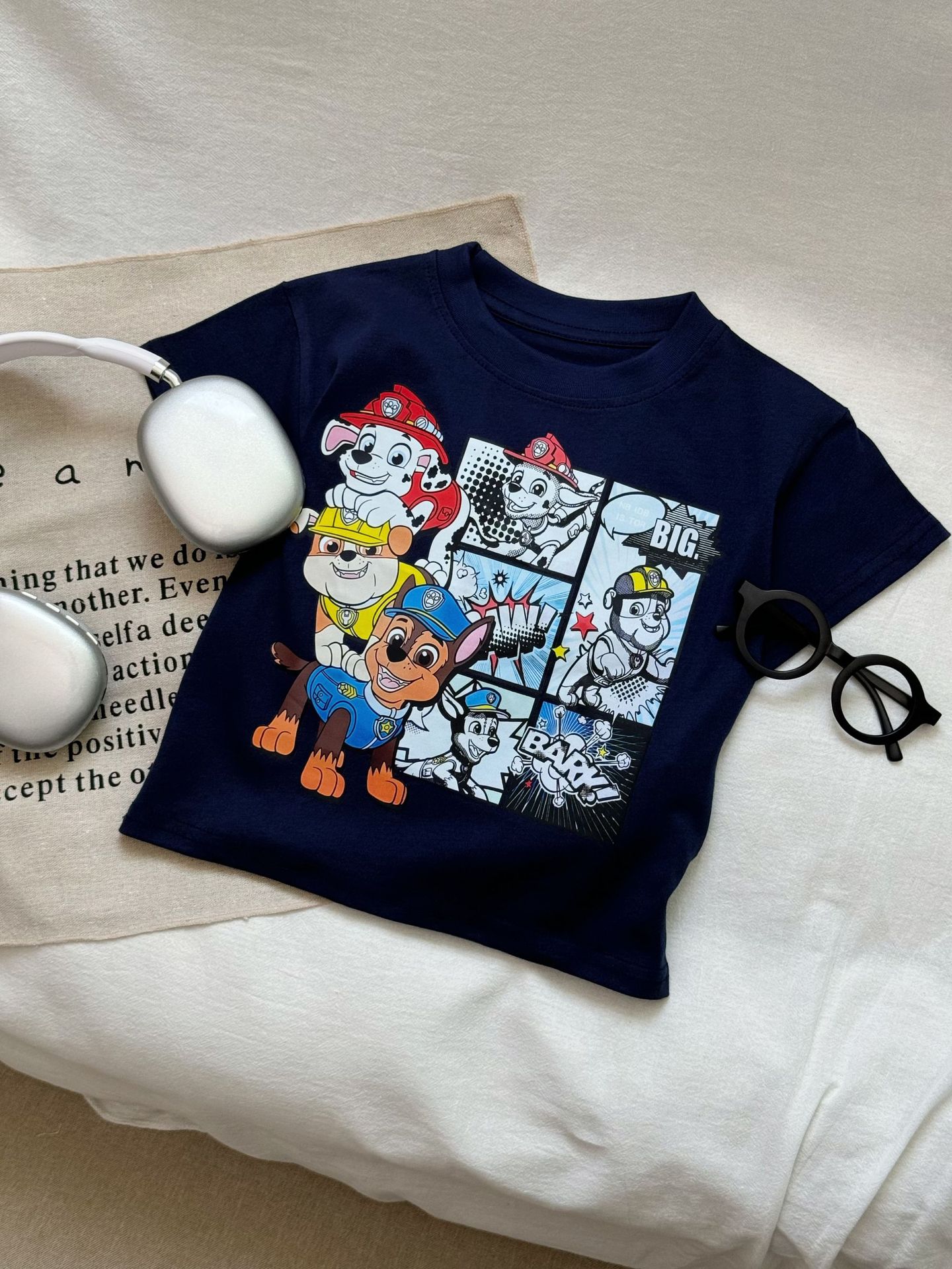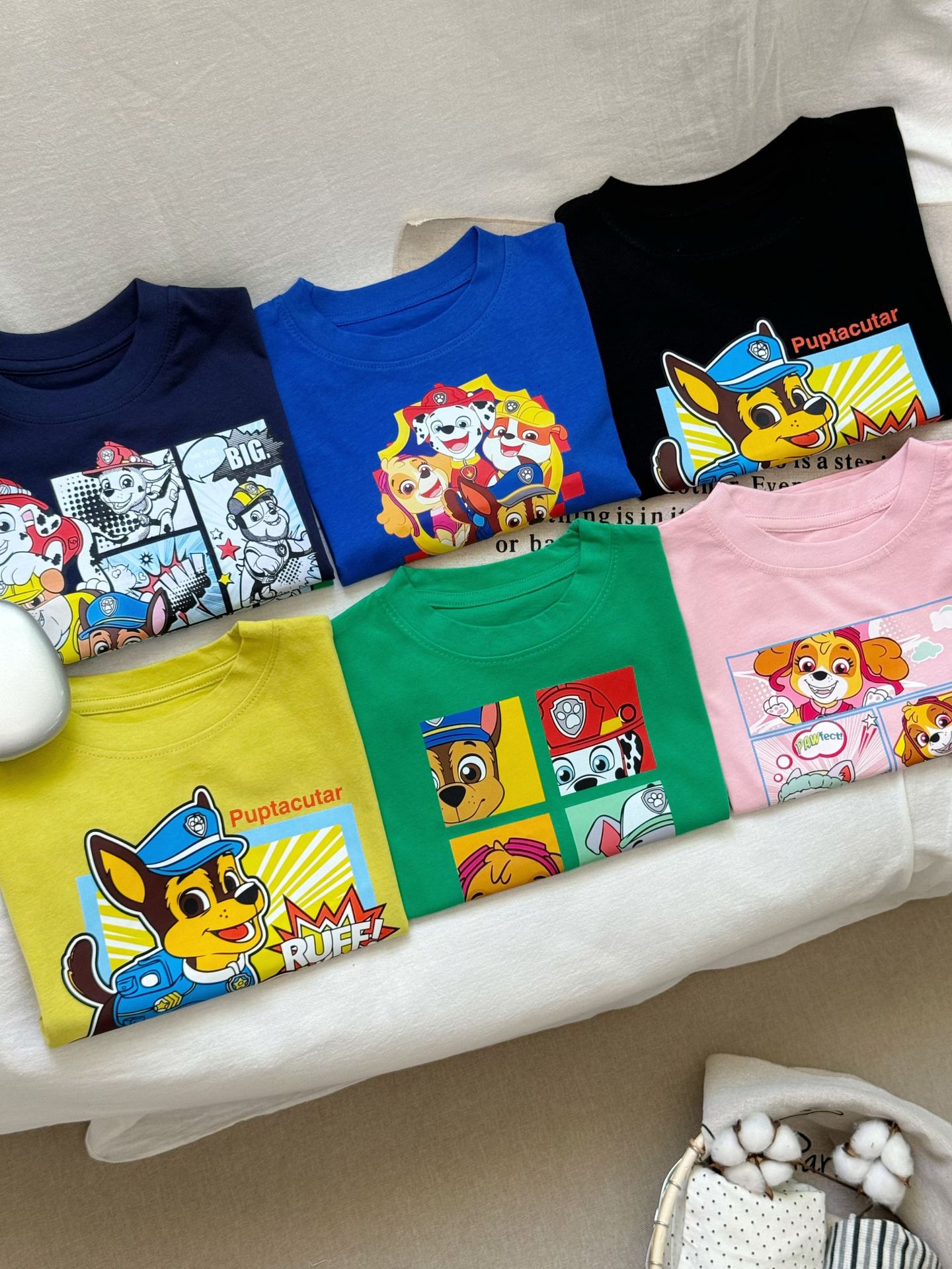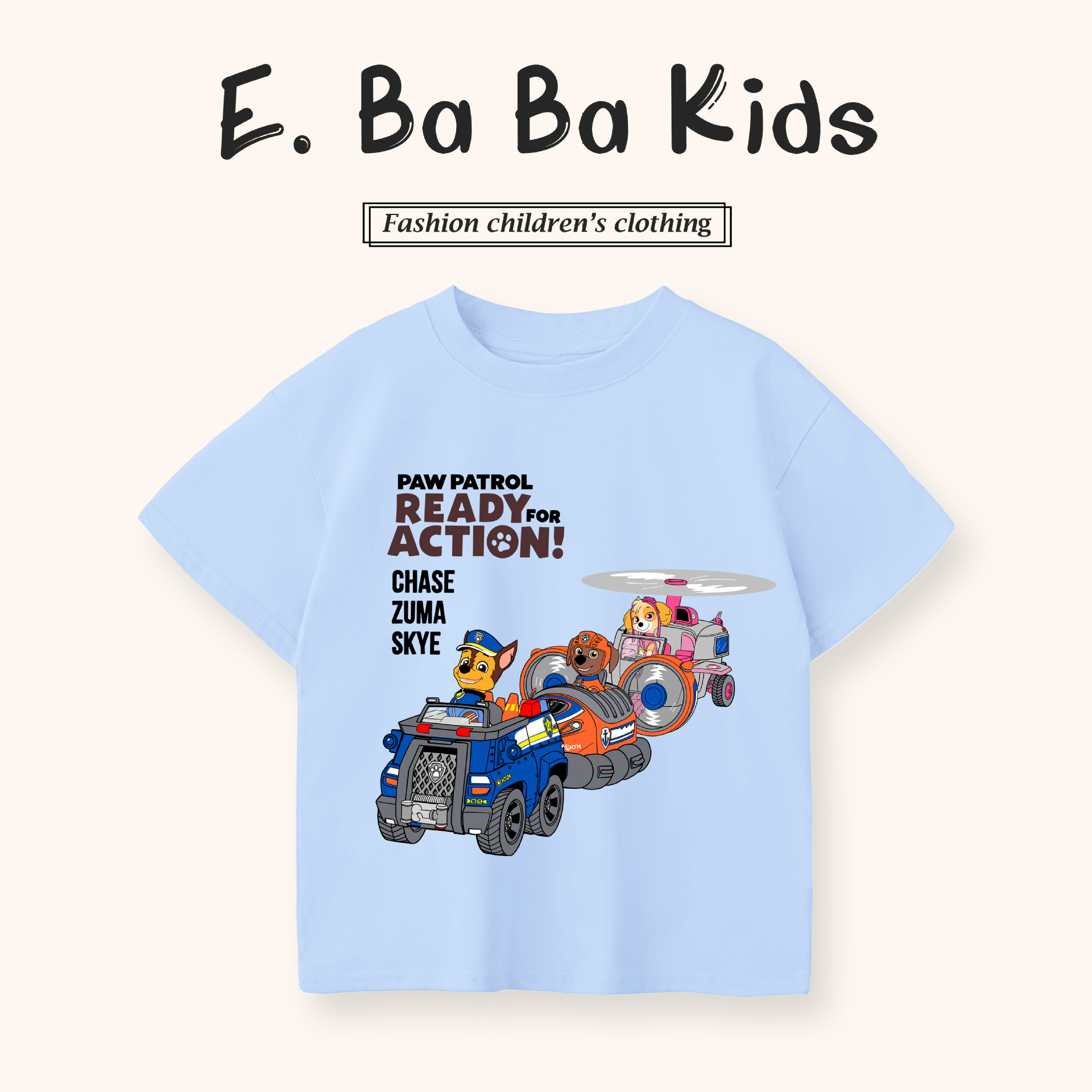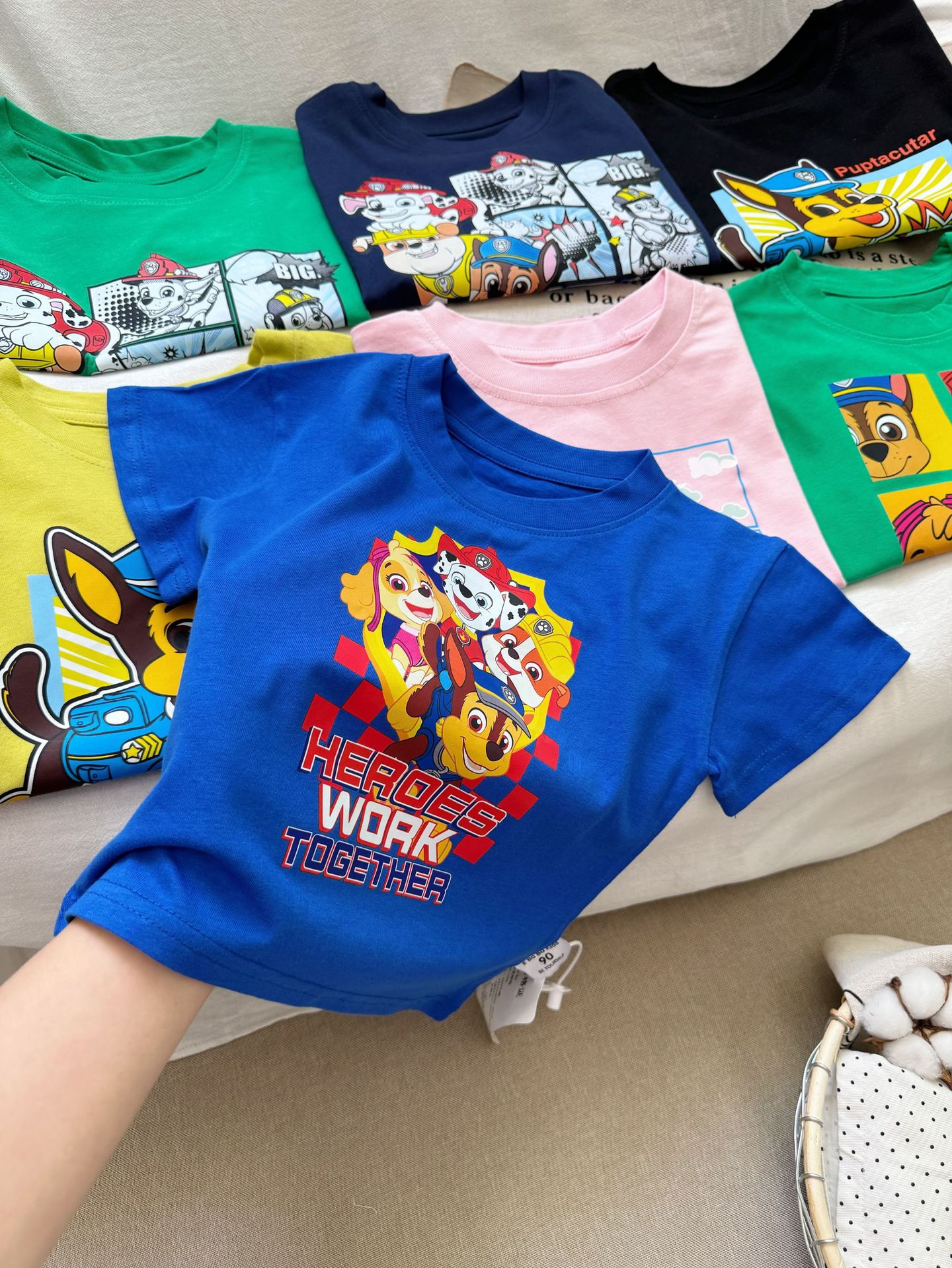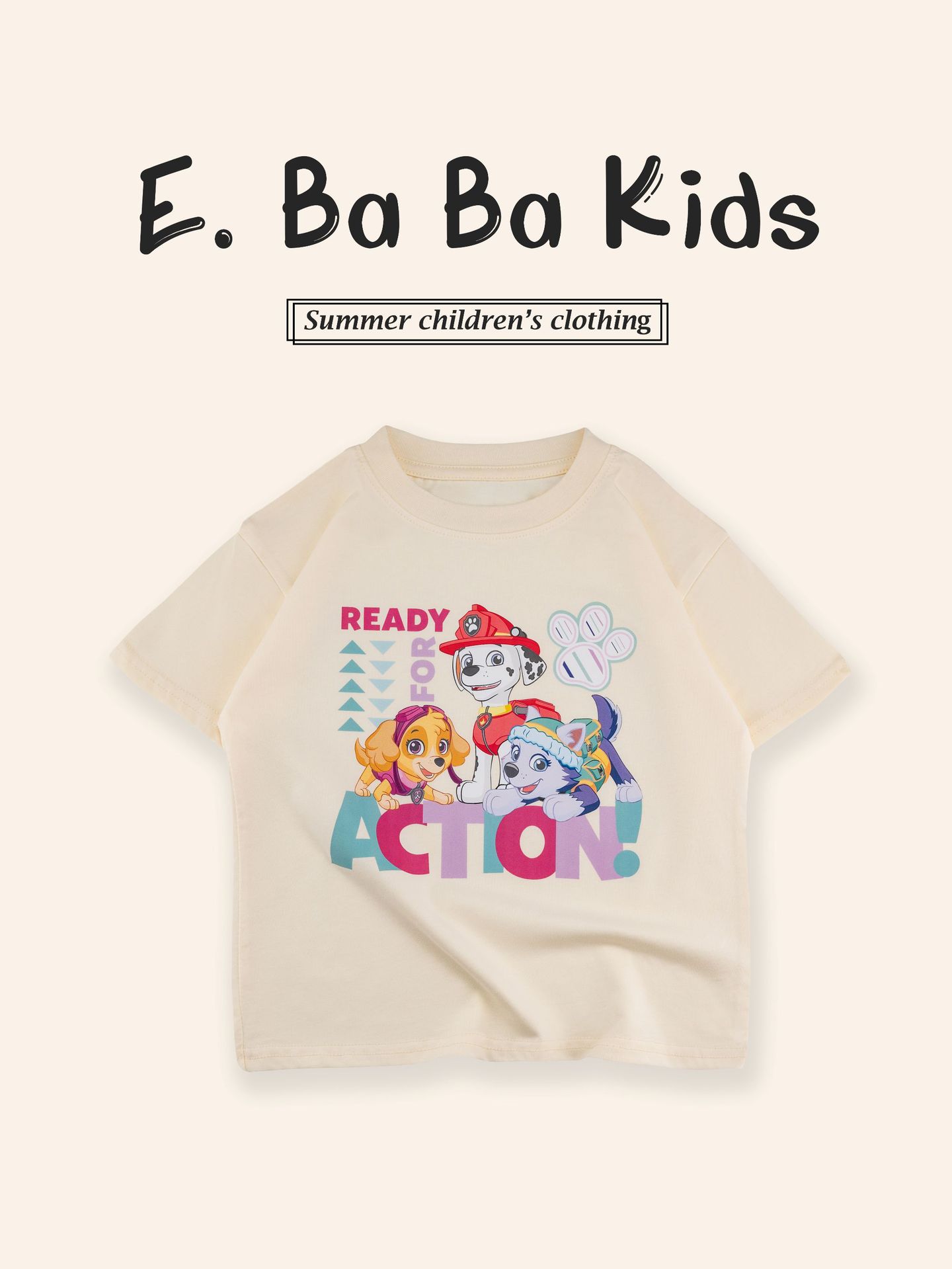 Paw Patrol 어린이 반팔 티셔츠 소년과 소녀를위한 프린트 티셔츠 만화 애니메이션 패턴 순수 코튼 여름 어린이상의스토어 가기