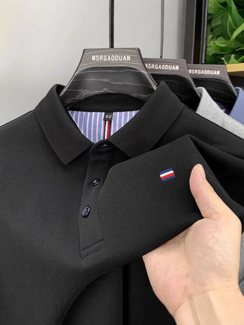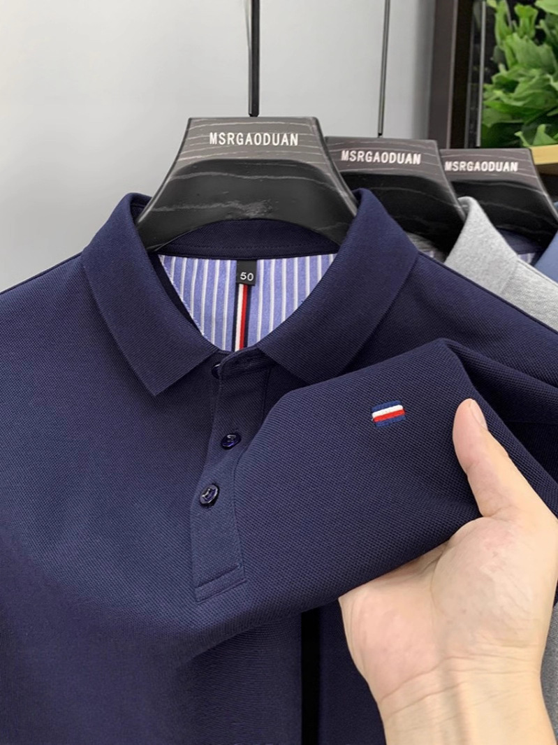 2026년 여름 자수 남성 티셔츠, 반팔 폴로셔츠, 고급 헤비웨이트 상의, 남성 청년 및 중년층을 위한 베이직 레이어드웨어, 해외 직배송스토어 가기