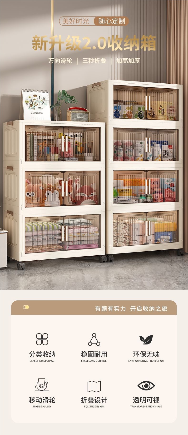 두꺼운 보관 상자 접이식 보관 캐비닛 거실 스낵 장난감 다층 보관 랙 침실 아기 옷장 보관 캐비닛