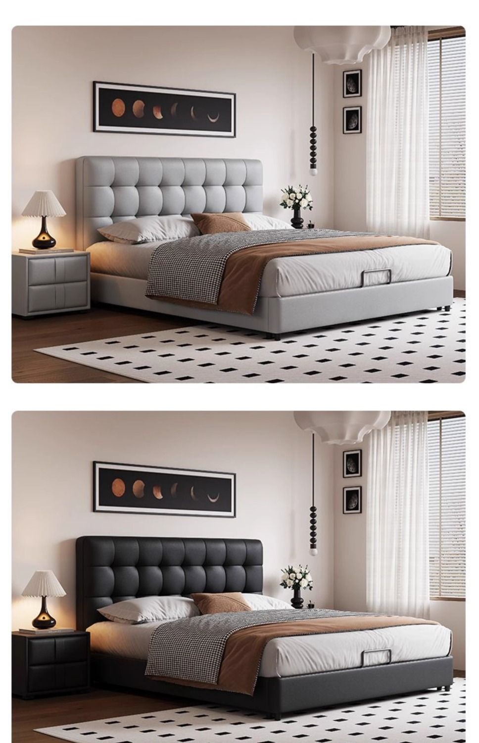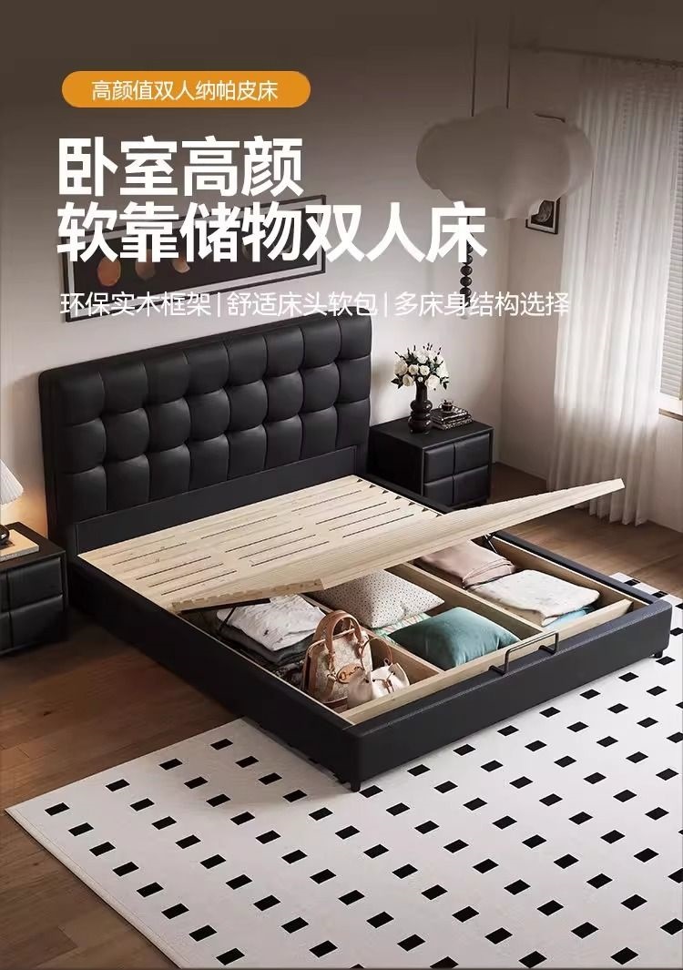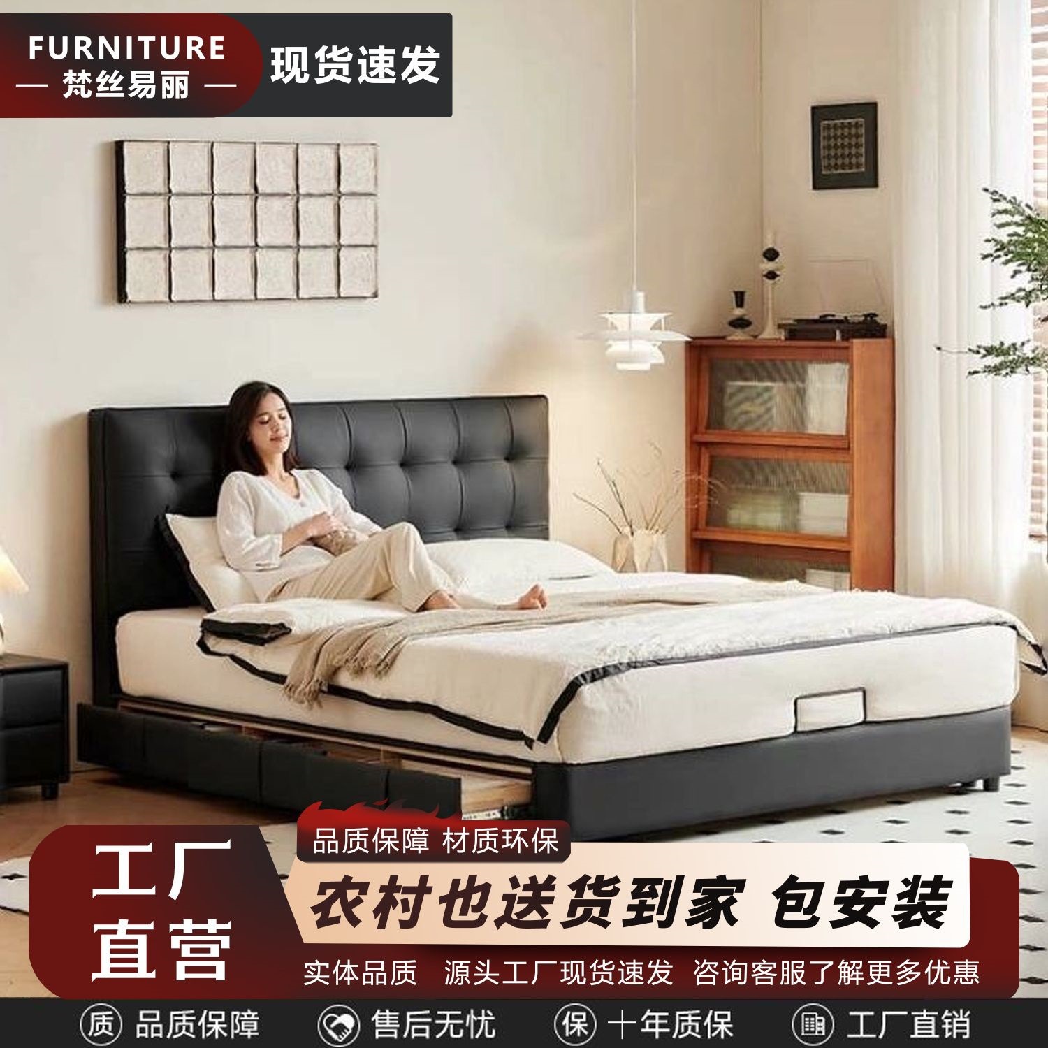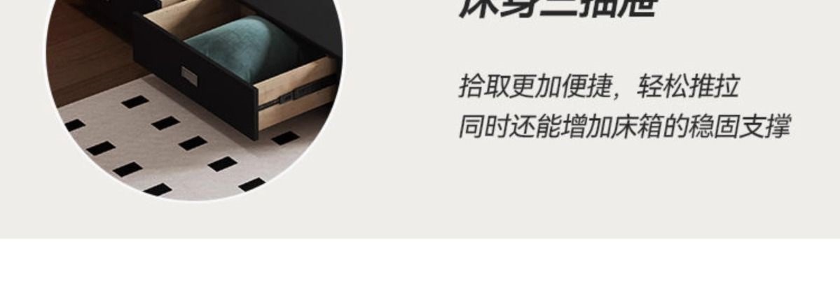 1층 침대, 현대적이고 심플한 수납, 마스터 침실, 소형 블랙 침대, 미니멀리스트 빅 트리 아일랜드 홈 와플 침대스토어 가기