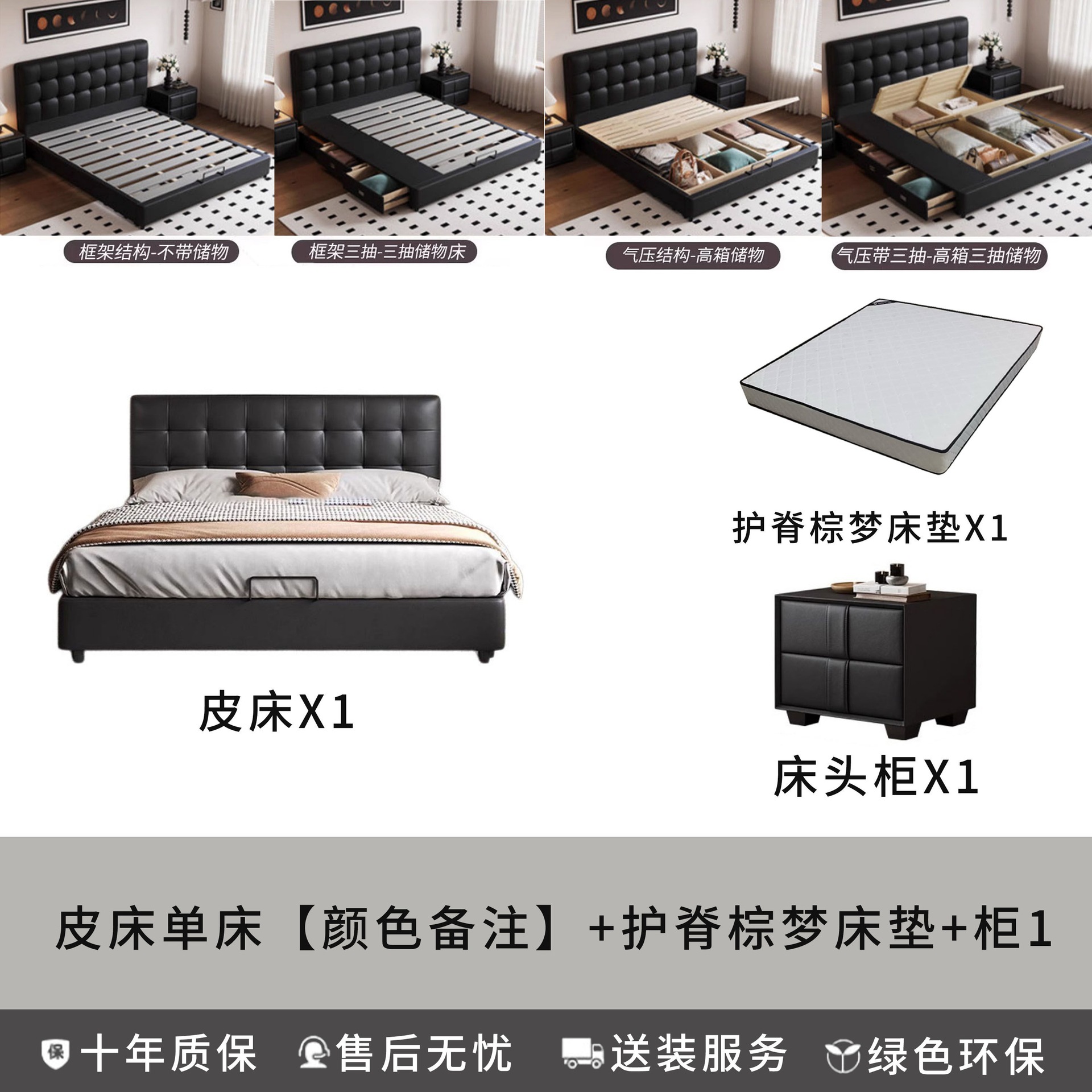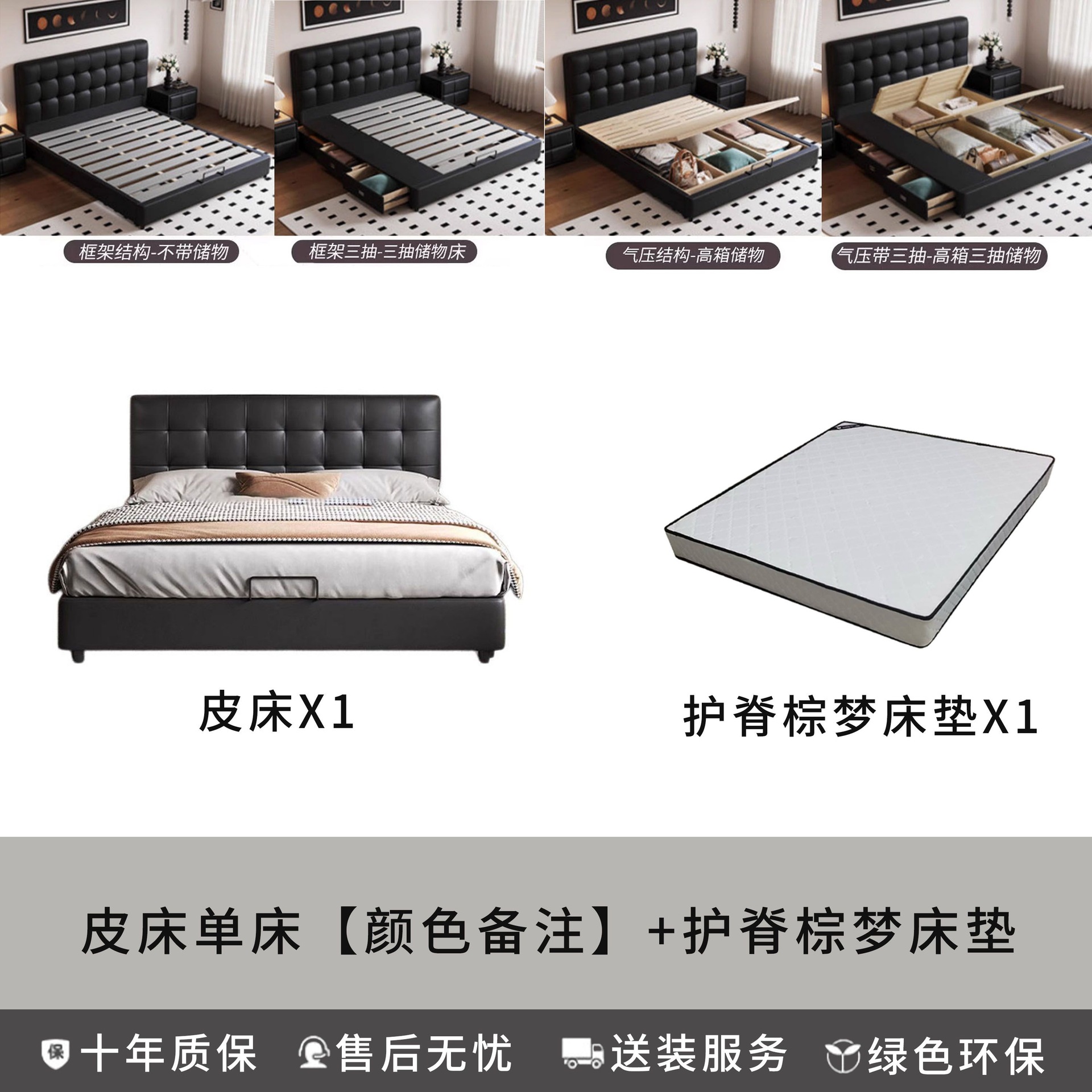 • 와플 시리즈/침대 + 척추 보호 브라운 드림 매트리스 [하드] + 캐비닛 1개
