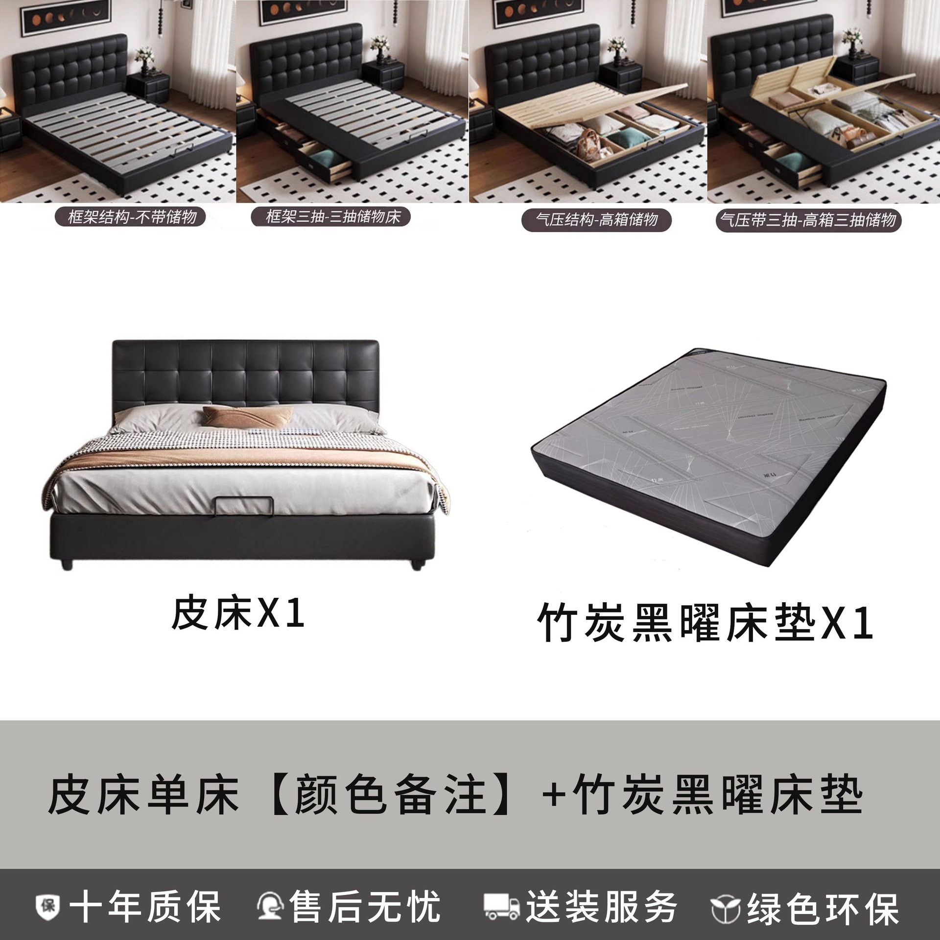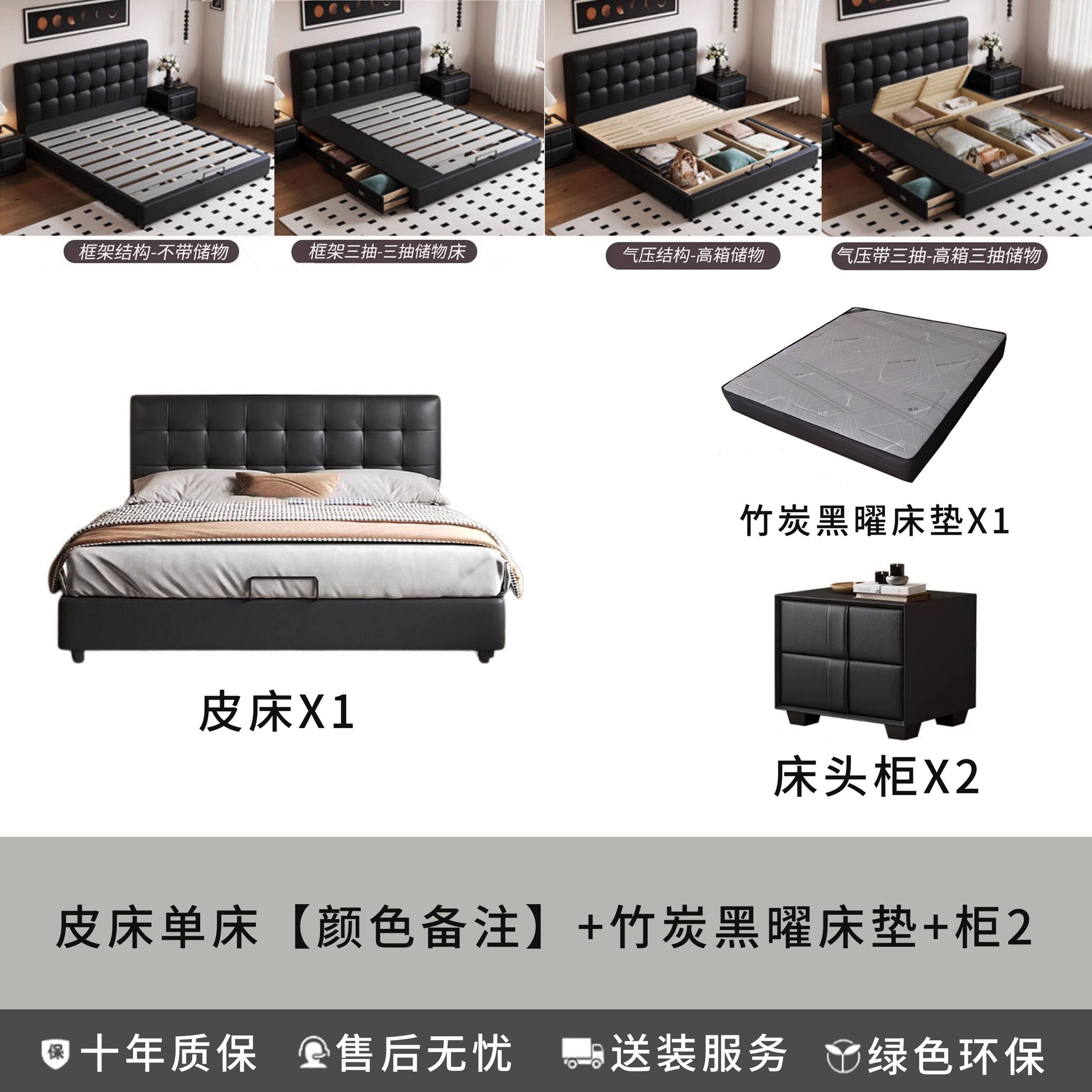 1층 침대, 현대적이고 심플한 수납, 마스터 침실, 소형 블랙 침대, 미니멀리스트 빅 트리 아일랜드 홈 와플 침대