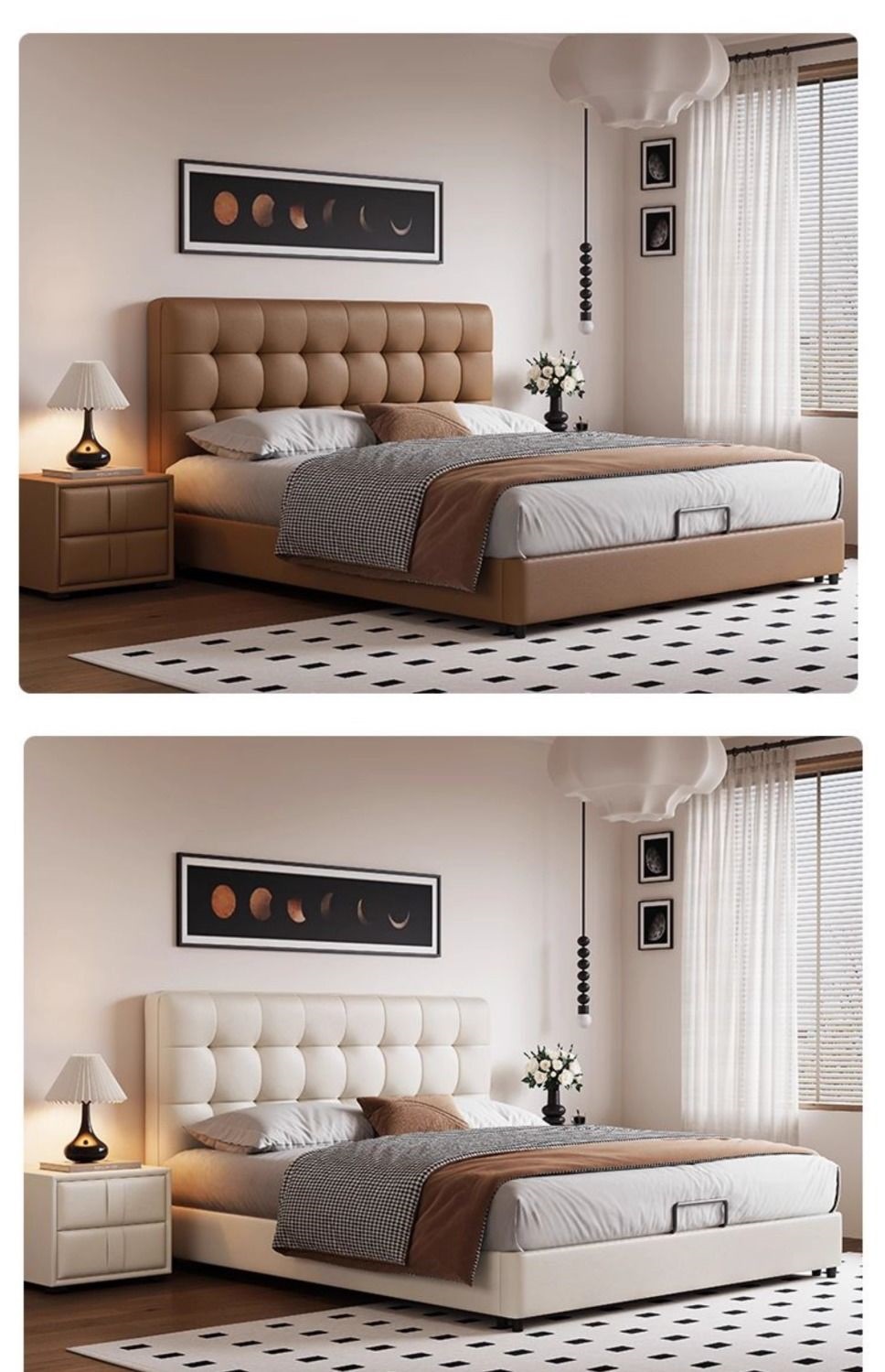 • 와플 시리즈/침대 + 척추 보호 브라운 드림 매트리스 [하드] + 캐비닛 2개