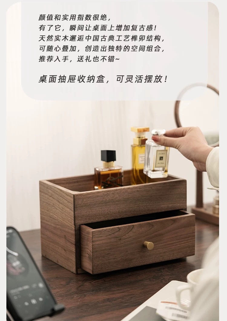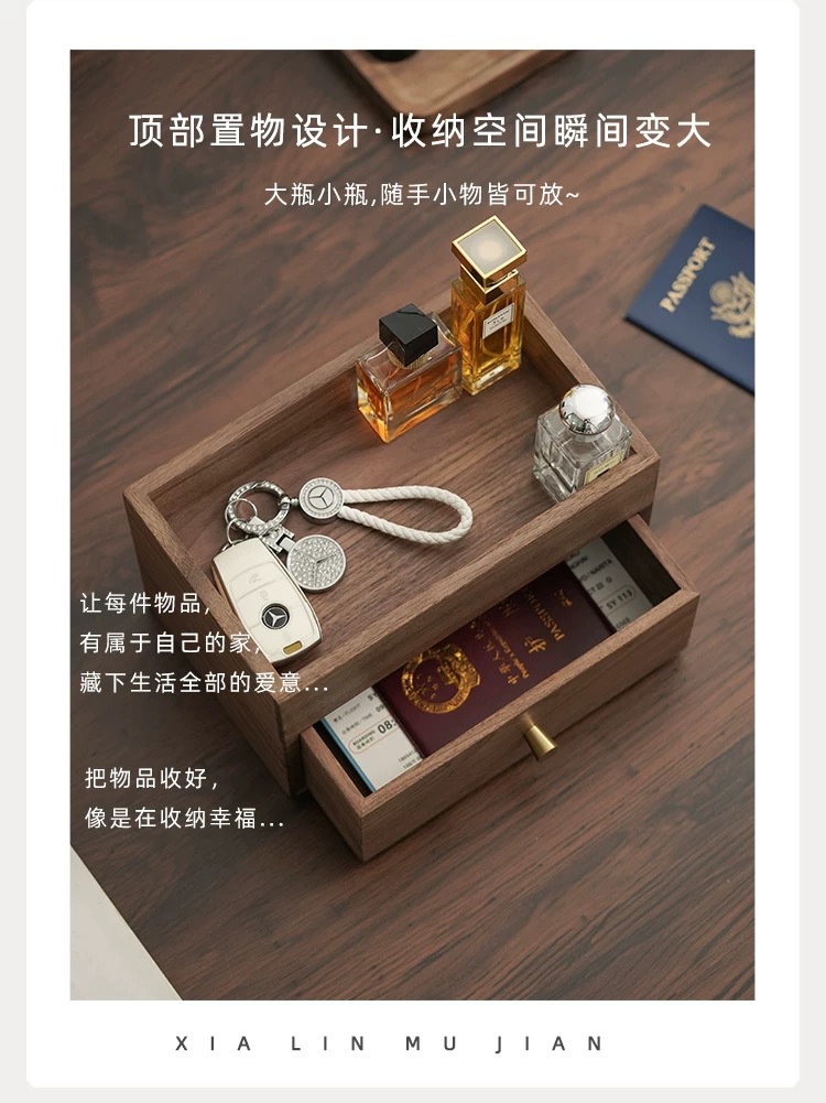 호두 서랍 보관함 단단한 나무 데스크탑 보관 캐비닛 정리 상자 사무실 침실 화장품 보관함