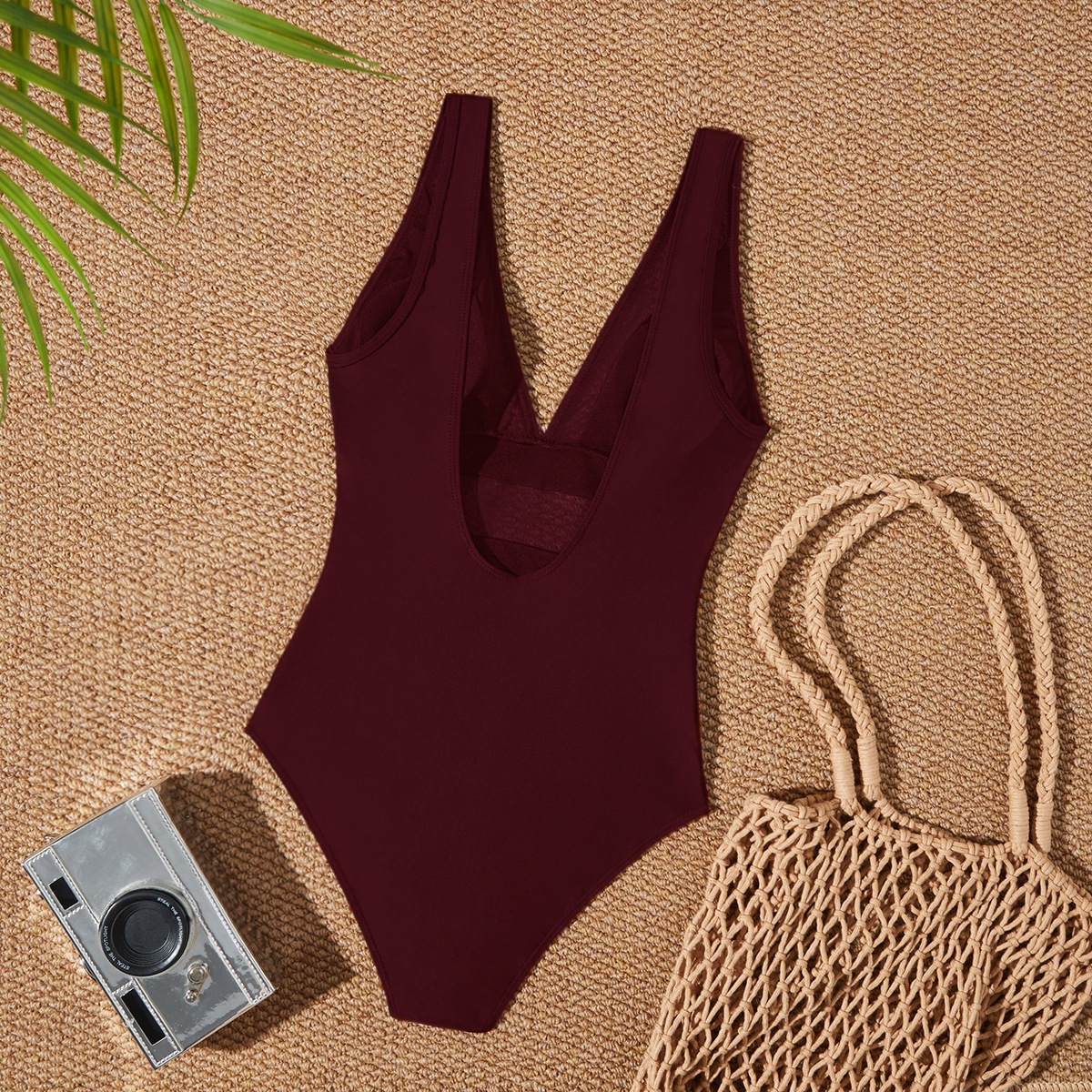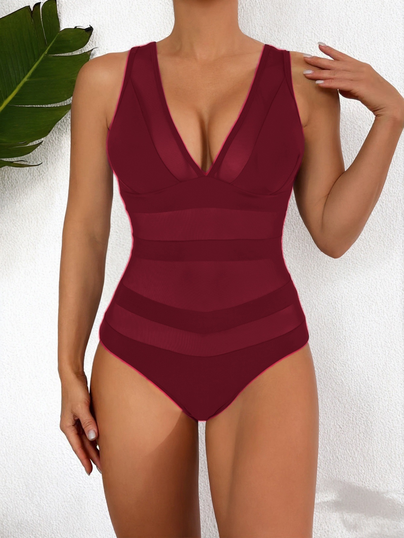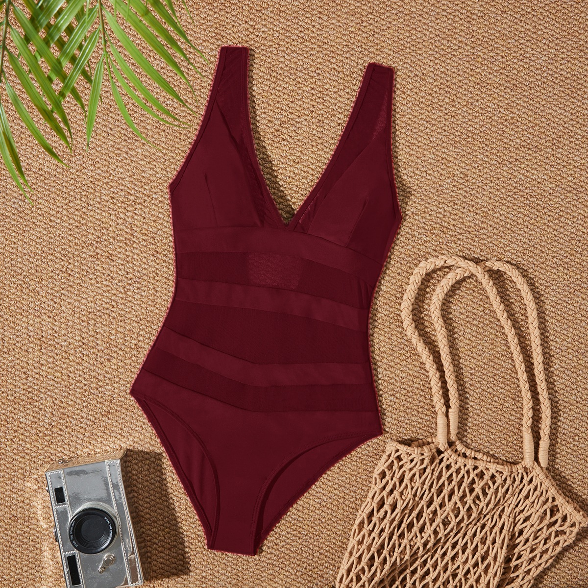 2025 유럽과 미국의 국경 간 핫 스타일 원피스 수영복 섹시한 중공 메쉬 딥 V 푸시 업 시스루 비키니 비키니