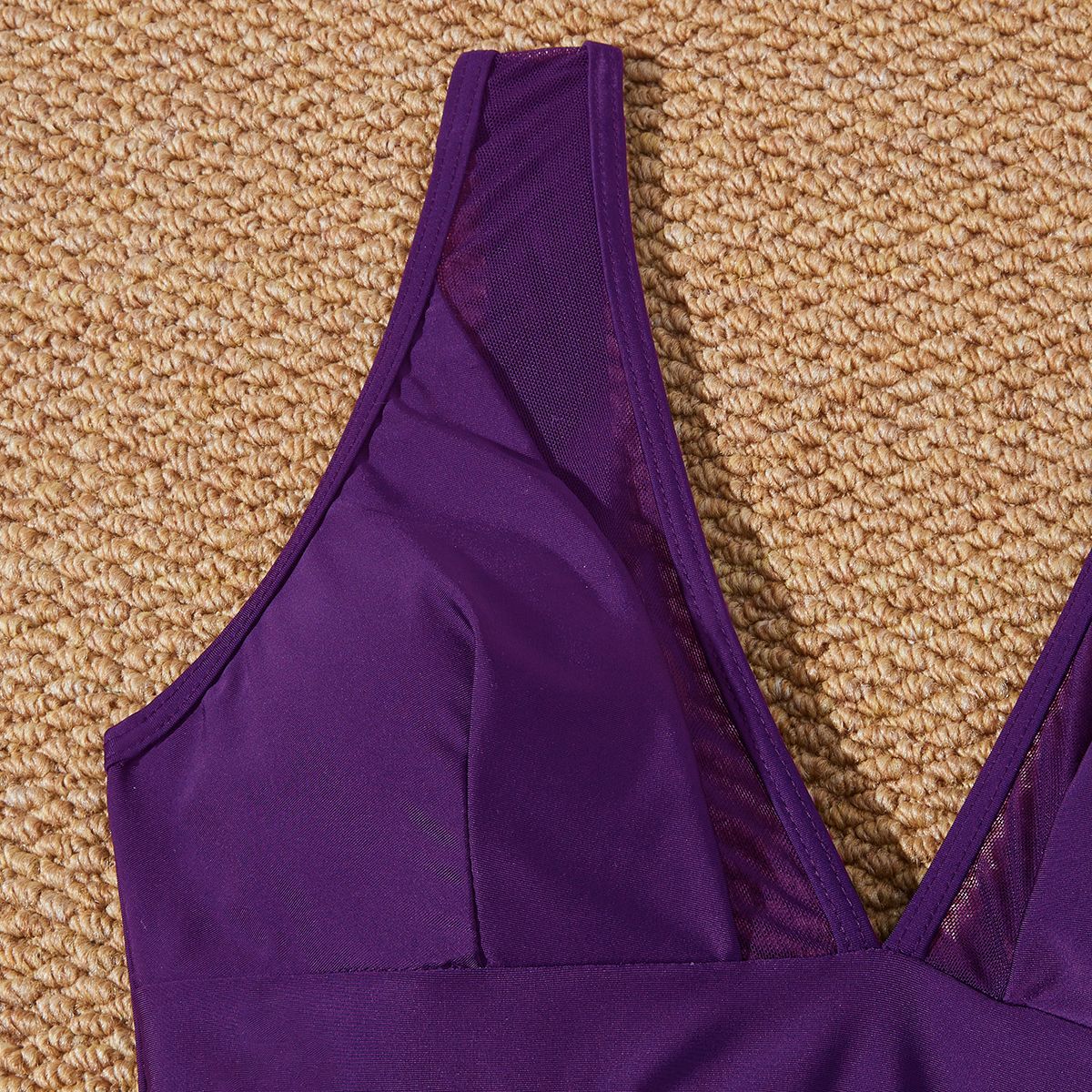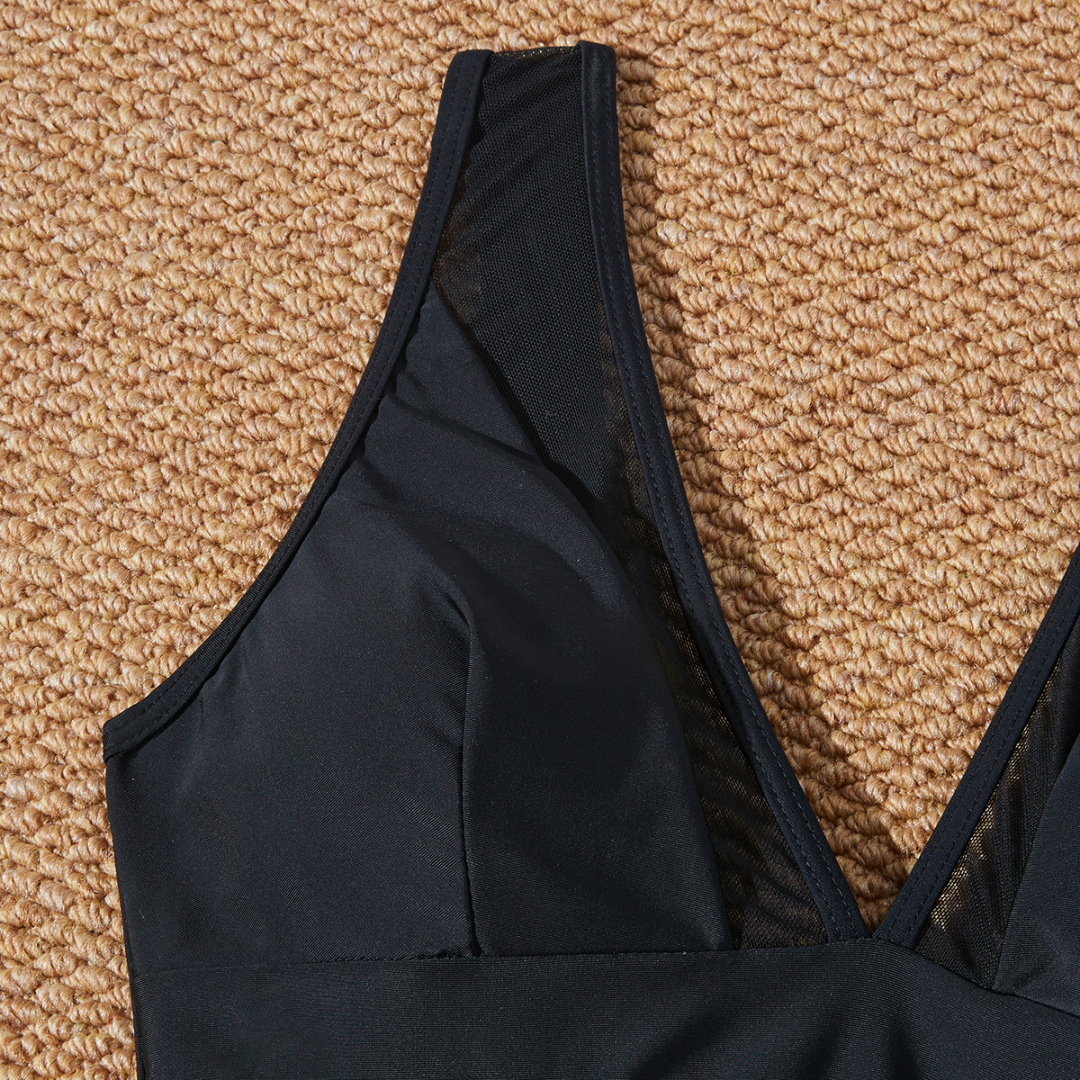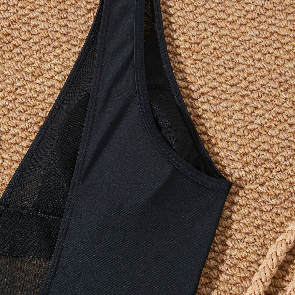 2025 유럽과 미국의 국경 간 핫 스타일 원피스 수영복 섹시한 중공 메쉬 딥 V 푸시 업 시스루 비키니 비키니