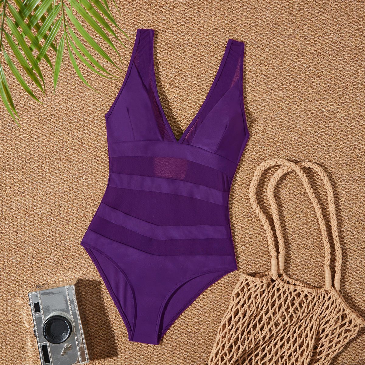 2025 유럽과 미국의 국경 간 핫 스타일 원피스 수영복 섹시한 중공 메쉬 딥 V 푸시 업 시스루 비키니 비키니스토어 가기