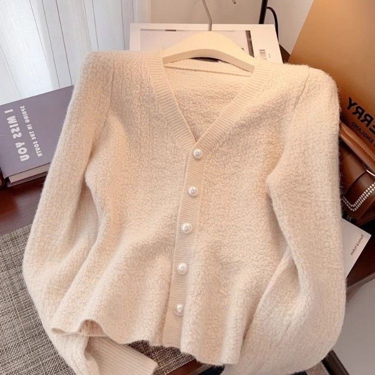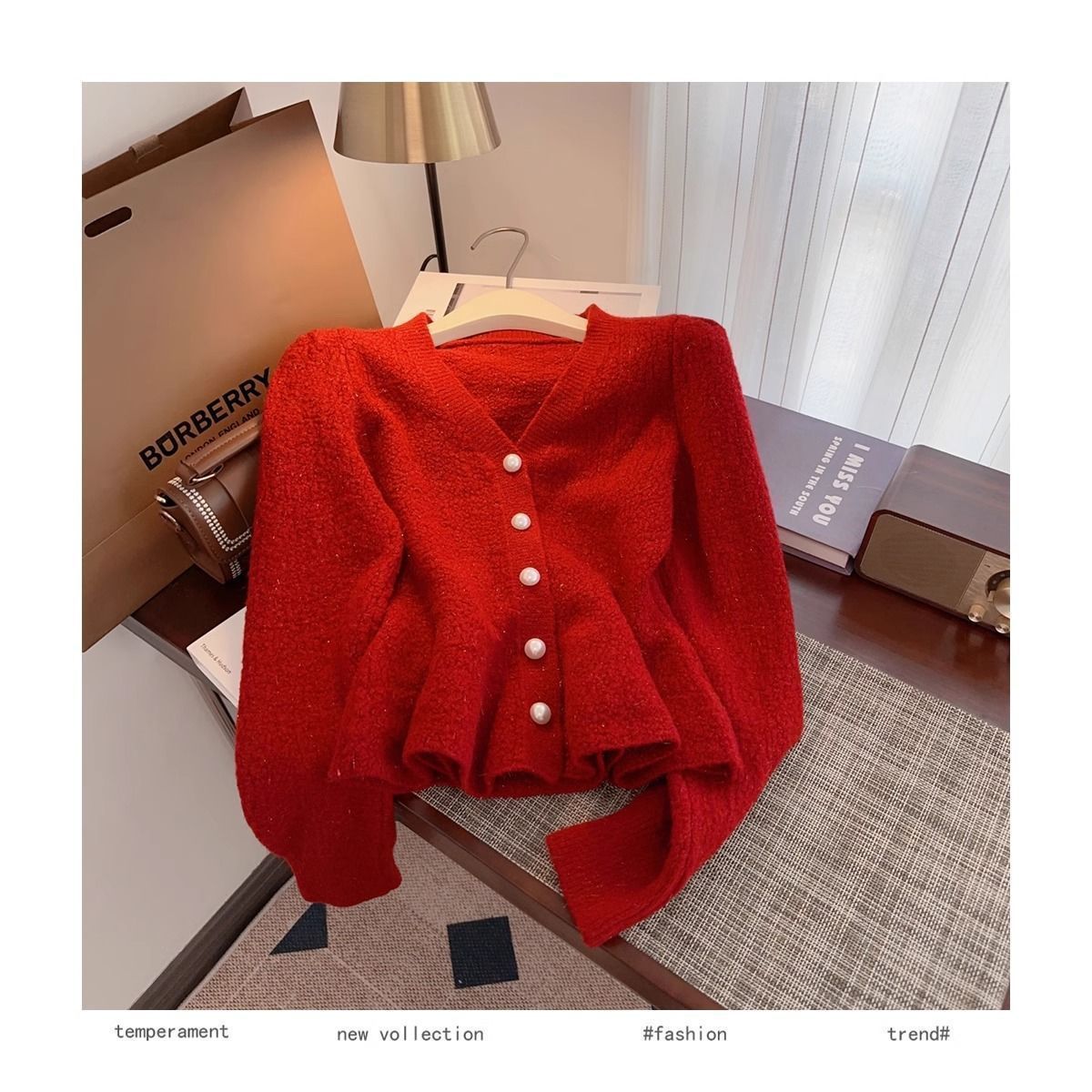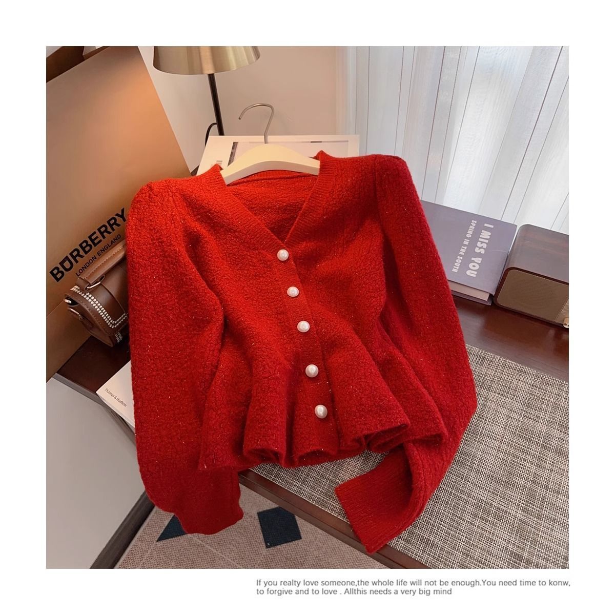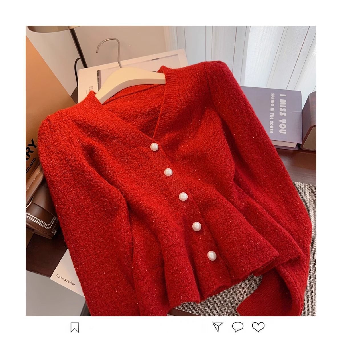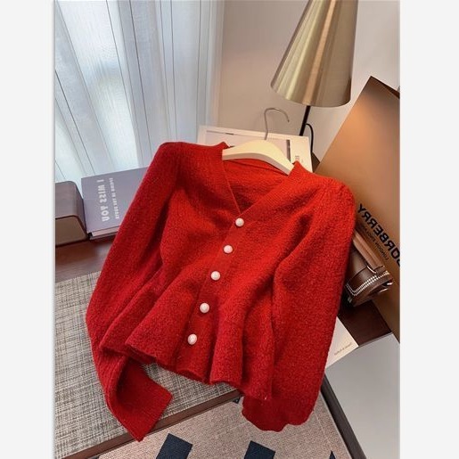 봄과 가을 새로운 스타일 프랑스 스타일 허리 짧은 니트 카디건 한국 스타일 작은 향기 레드 스웨터 재킷 여성 2025스토어 가기