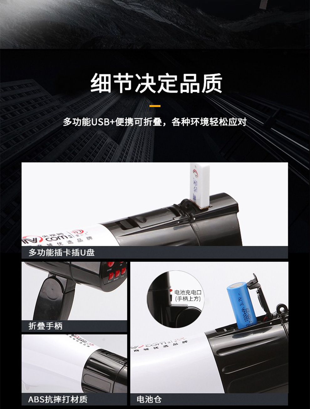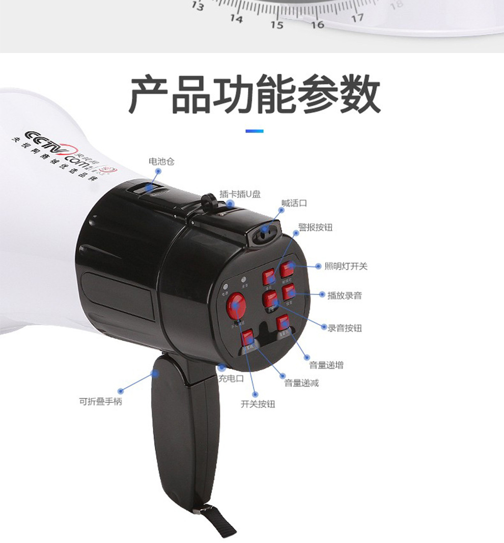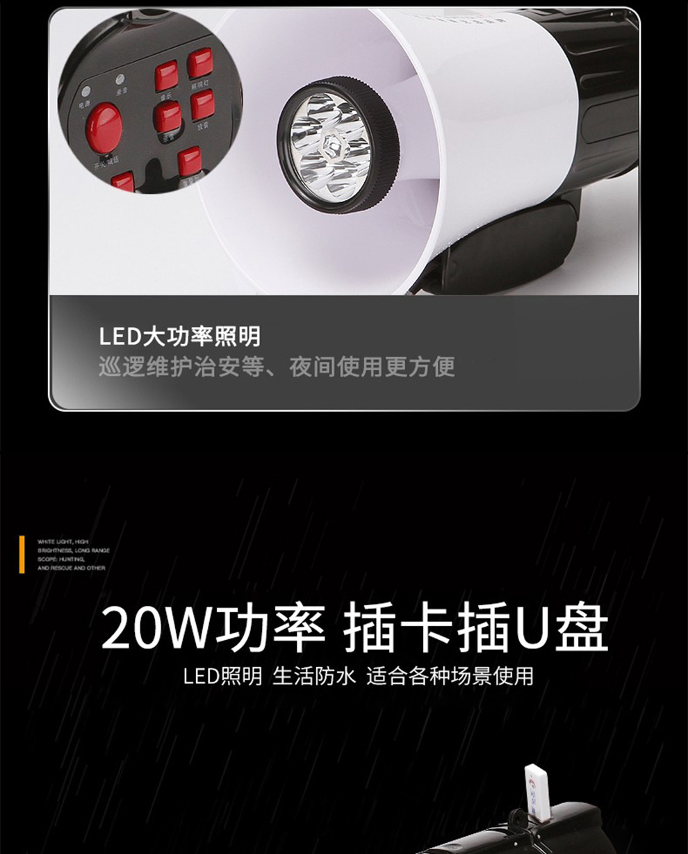 Thunder King CR-66 메가폰에는 LED 조명, 다기능 녹음 USB 카드, 판매용 확성기 스피커가 함께 제공됩니다.
