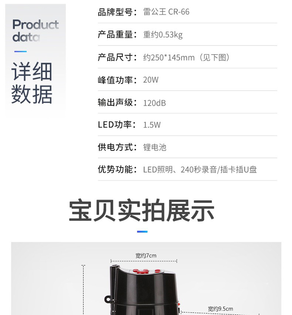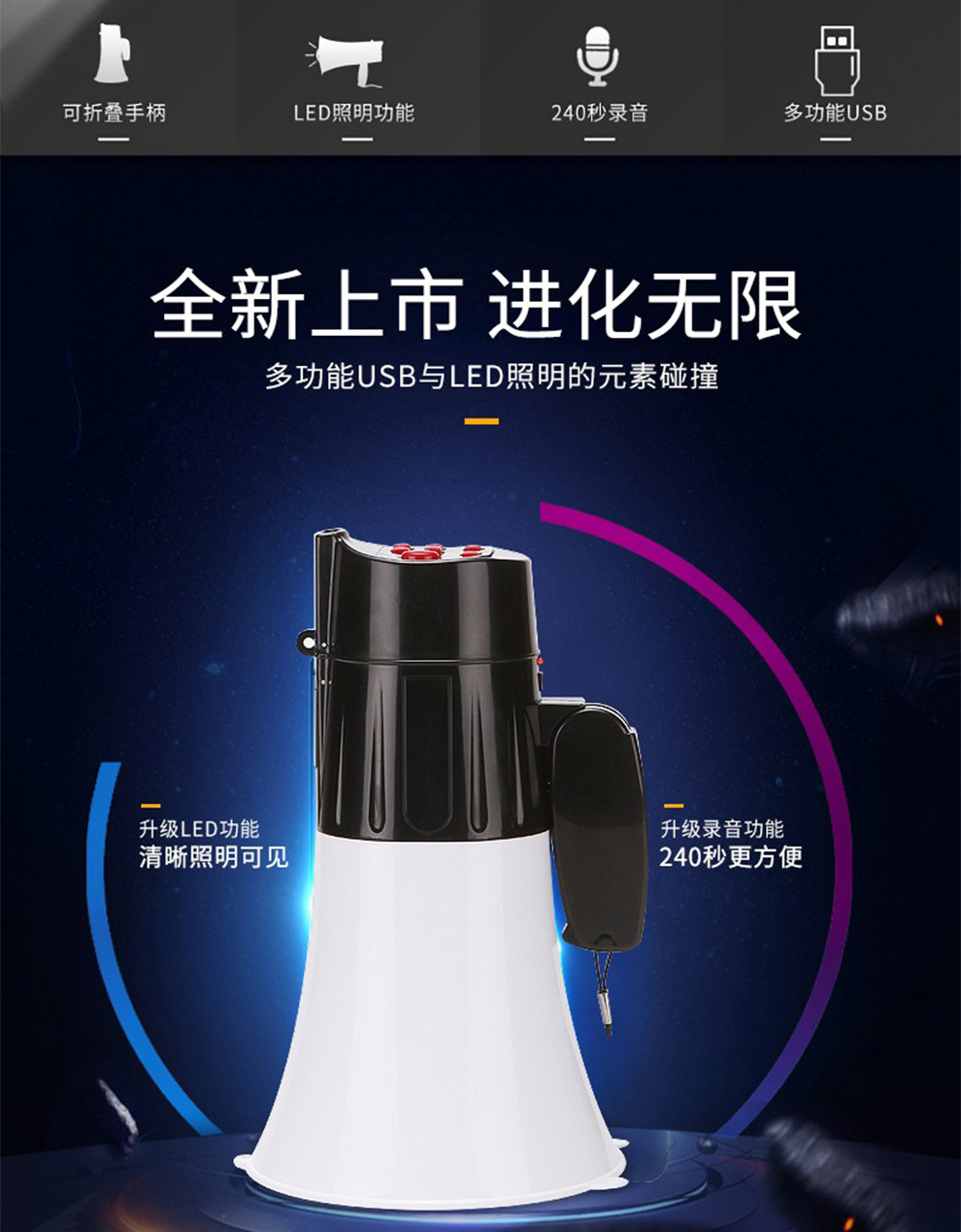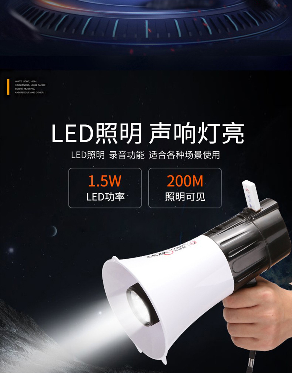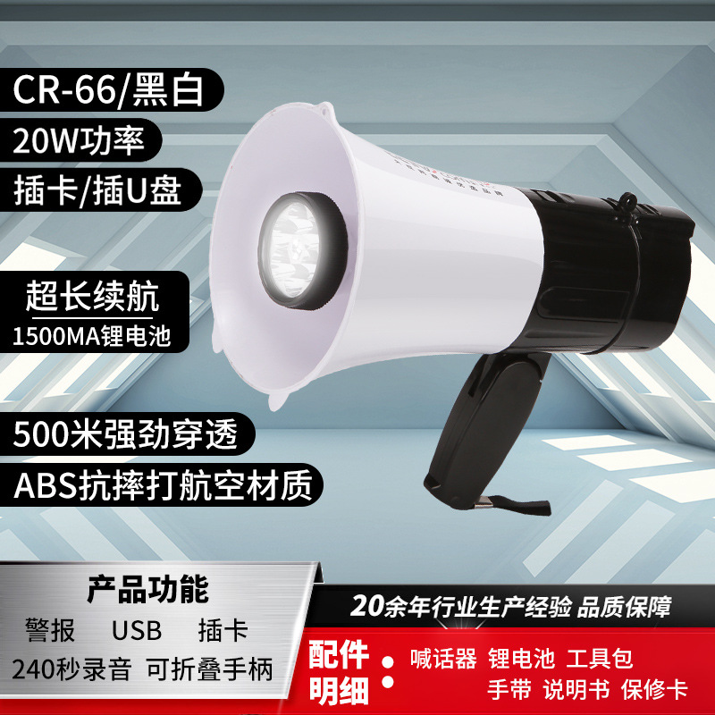 Thunder King CR-66 메가폰에는 LED 조명, 다기능 녹음 USB 카드, 판매용 확성기 스피커가 함께 제공됩니다.스토어 가기