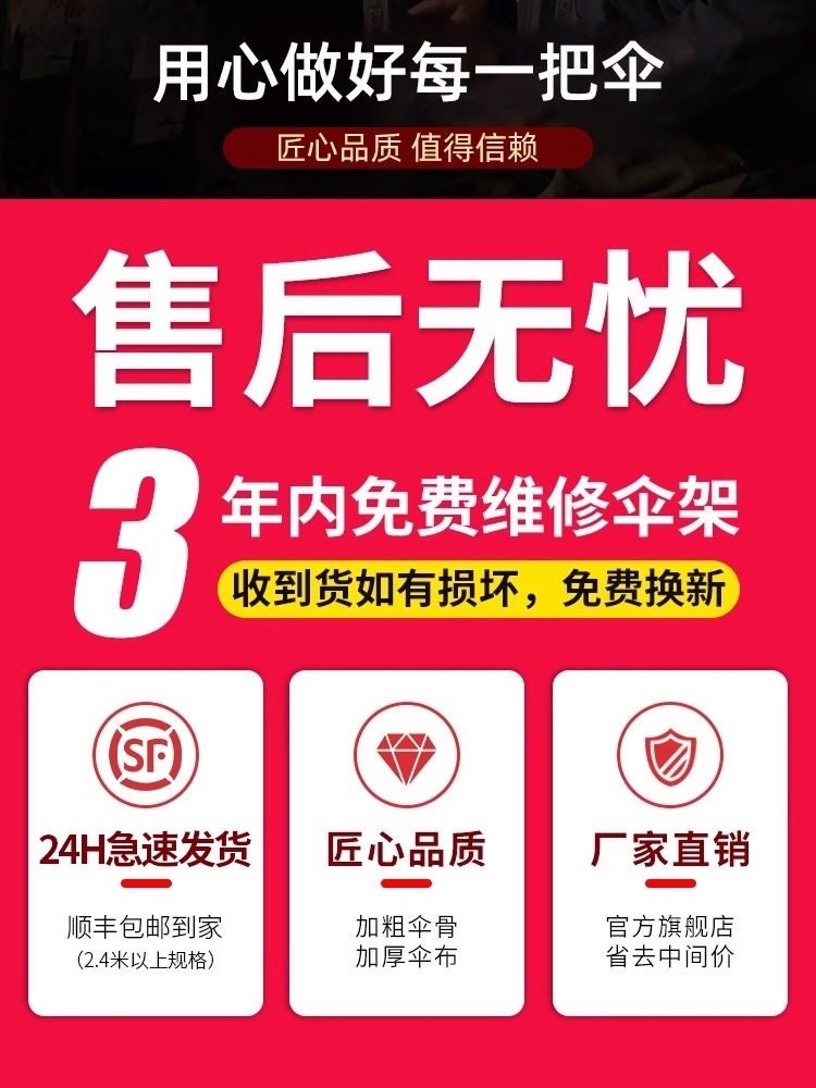• 점장은 내구성을 높이기 위해 더 두꺼운 우산 갈비뼈를 권장합니다.