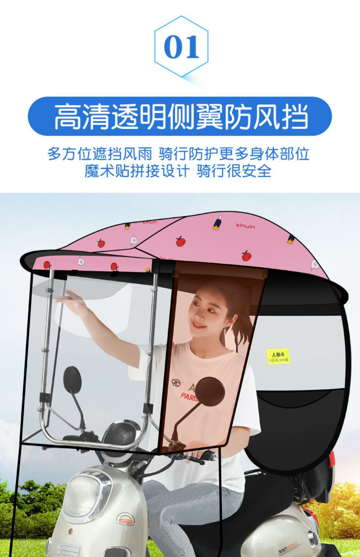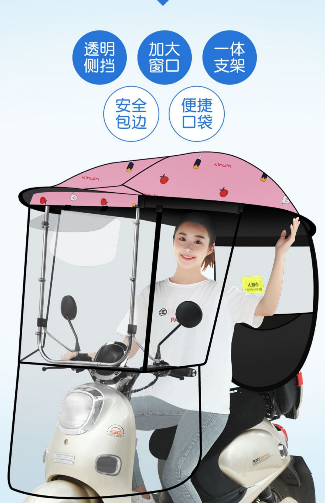 • [회전 이중창] [넓어진 지퍼 스타일] 핑크 아이스크림
