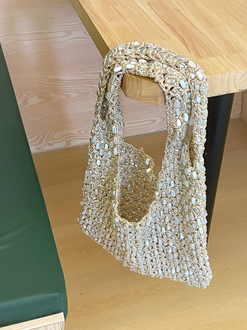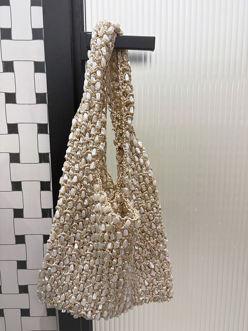 봄과 여름 한국 스타일 ins 수제 플러시 짠 어깨 핸드백 다목적 캐주얼 여행 중공 짠 가방스토어 가기