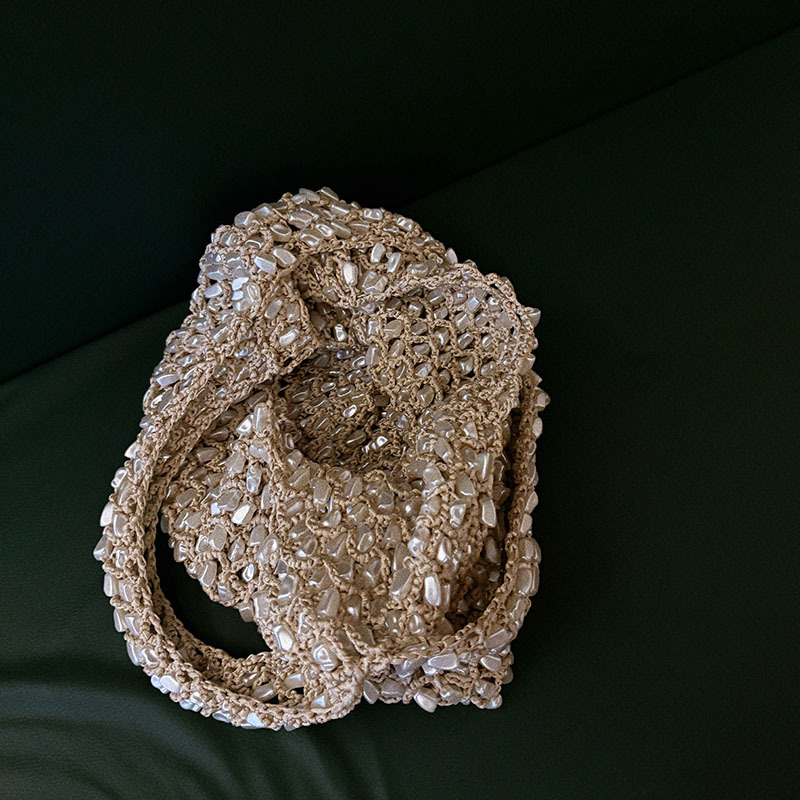 봄과 여름 한국 스타일 ins 수제 플러시 짠 어깨 핸드백 다목적 캐주얼 여행 중공 짠 가방